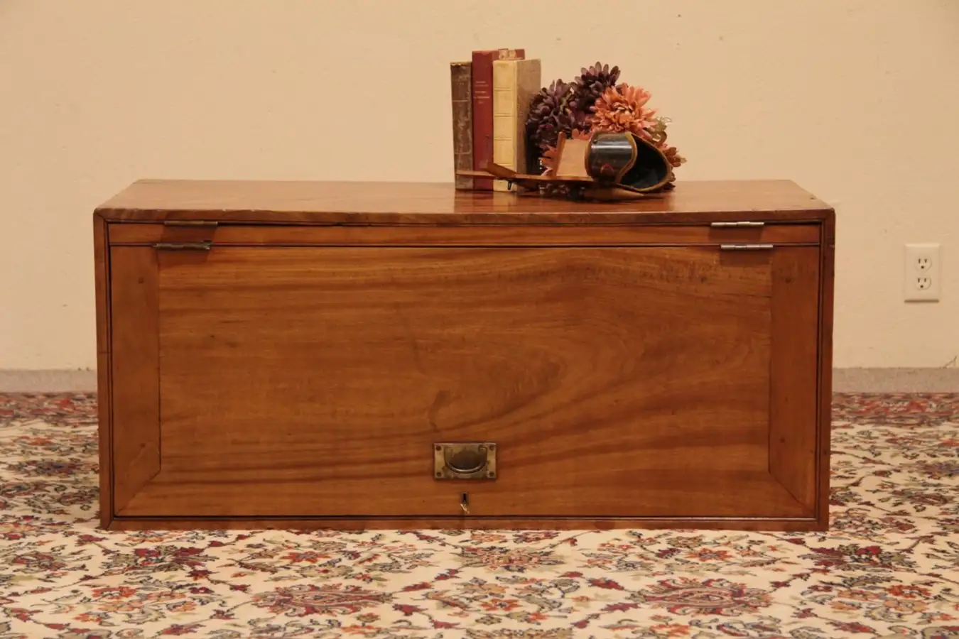 Drawers are dovetailed on this nostalgic British Empire furniture. The lock does work, the key should be removed before opening so as not to damage the top when flipped up.