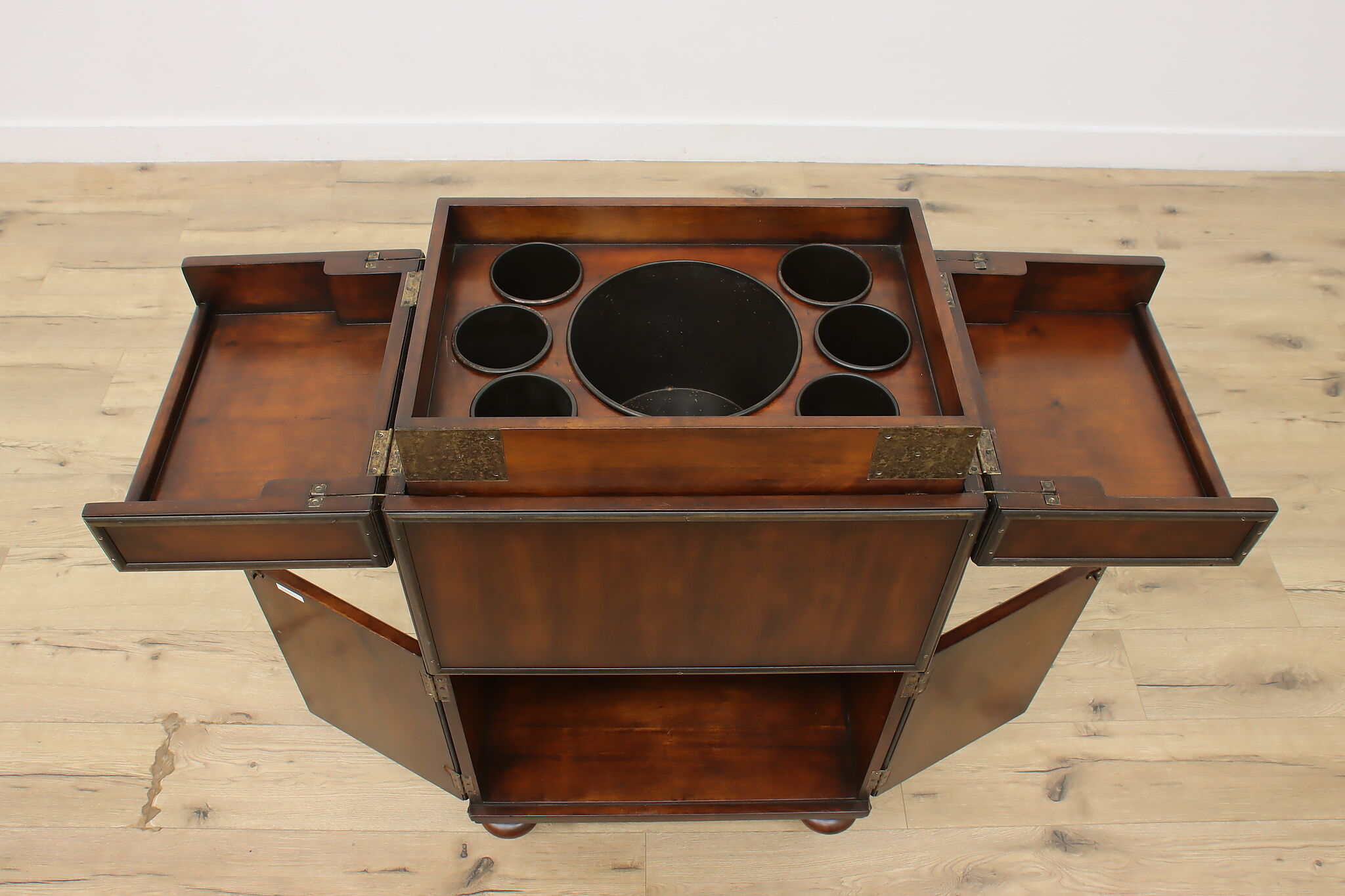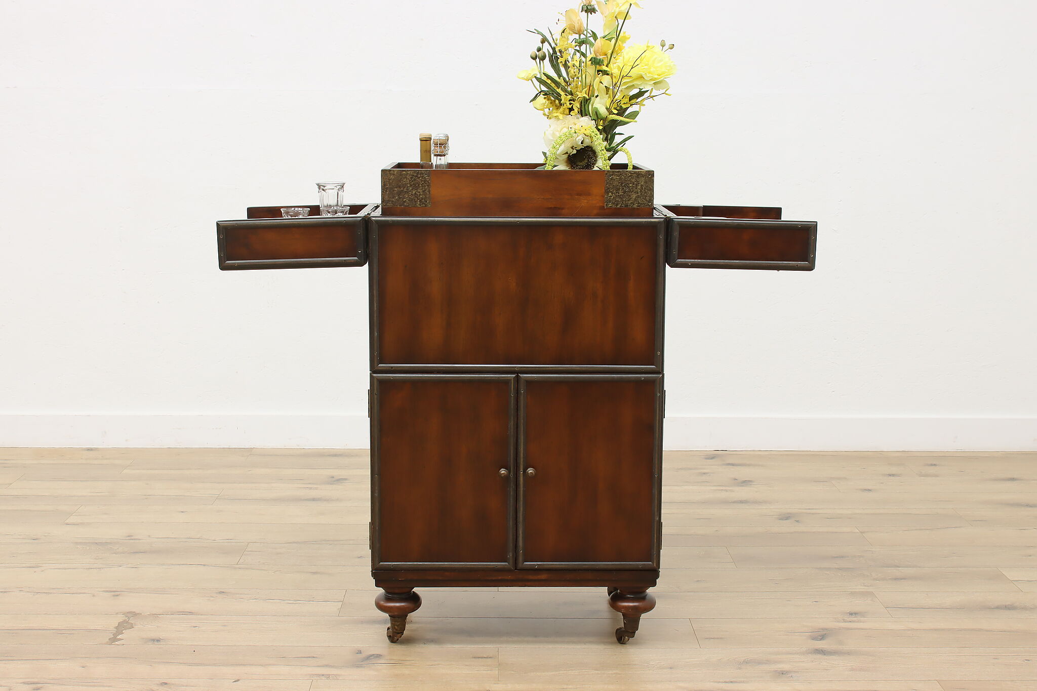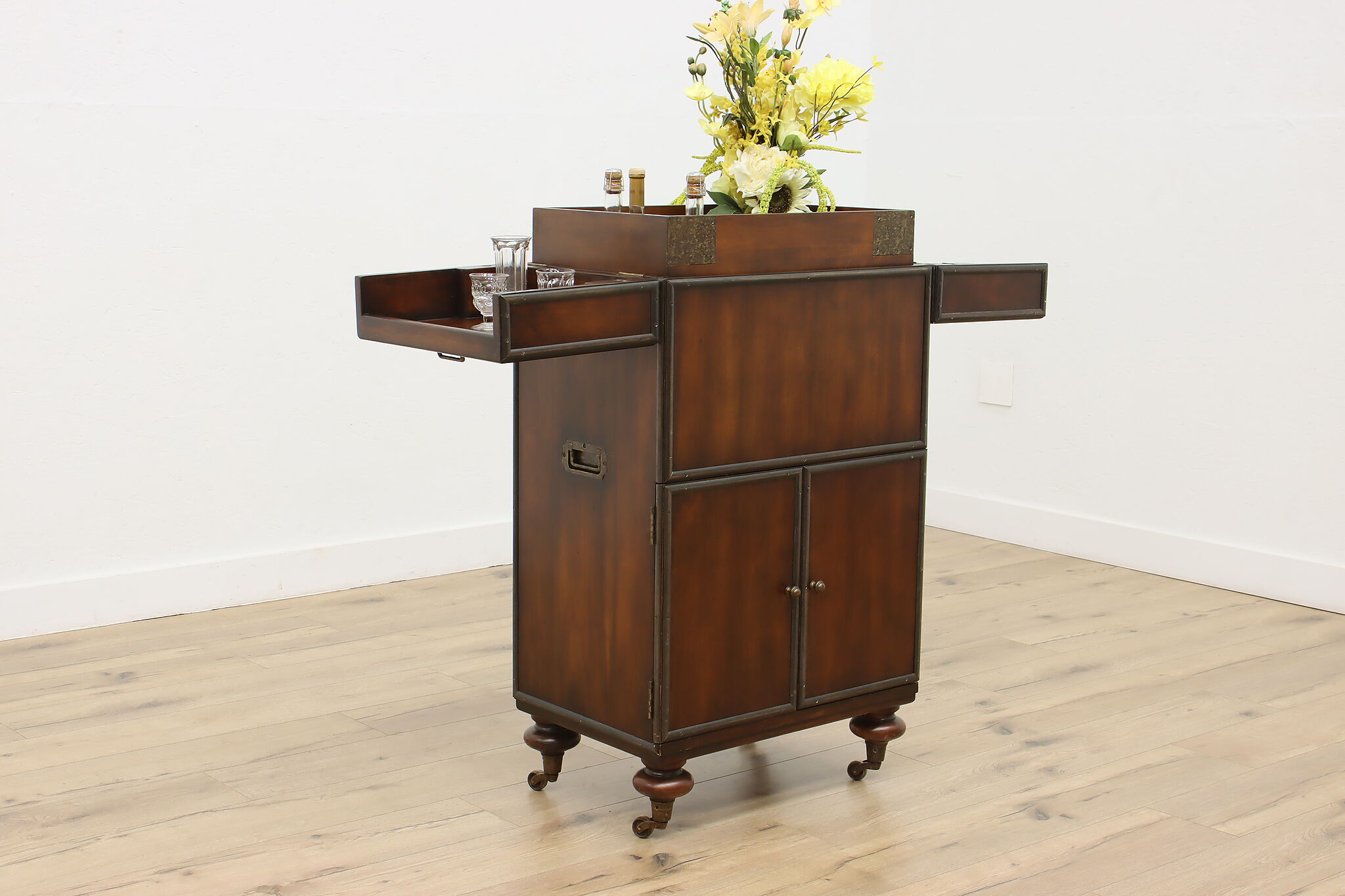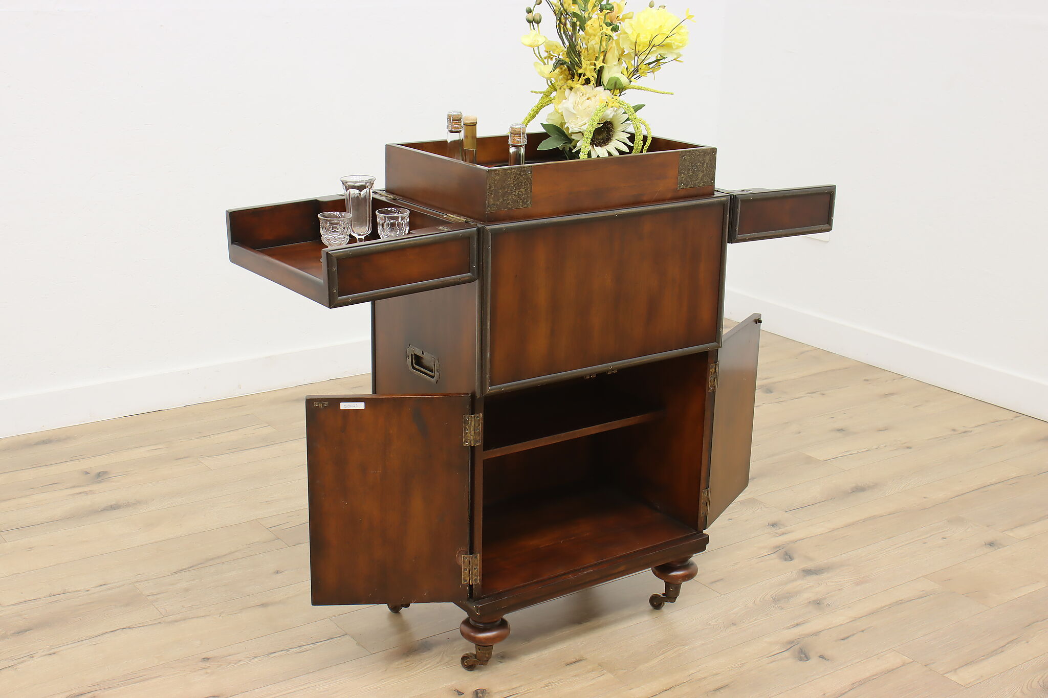 Campaign furniture is a well-loved furniture design for its ability to be moved quickly during military campaigns and long-distance travel. Take this rolling bar server or cabinet on a tour around your home as you serve guests with its "pop up" serving area.