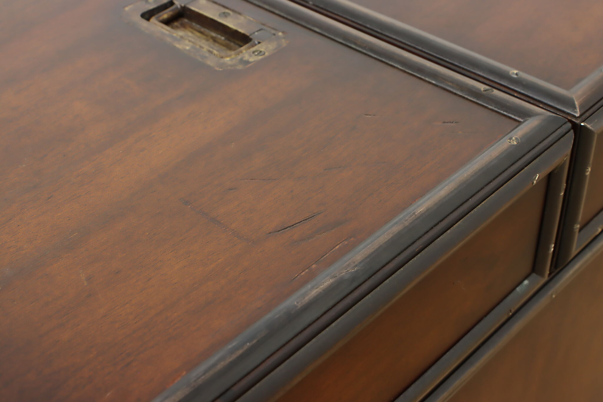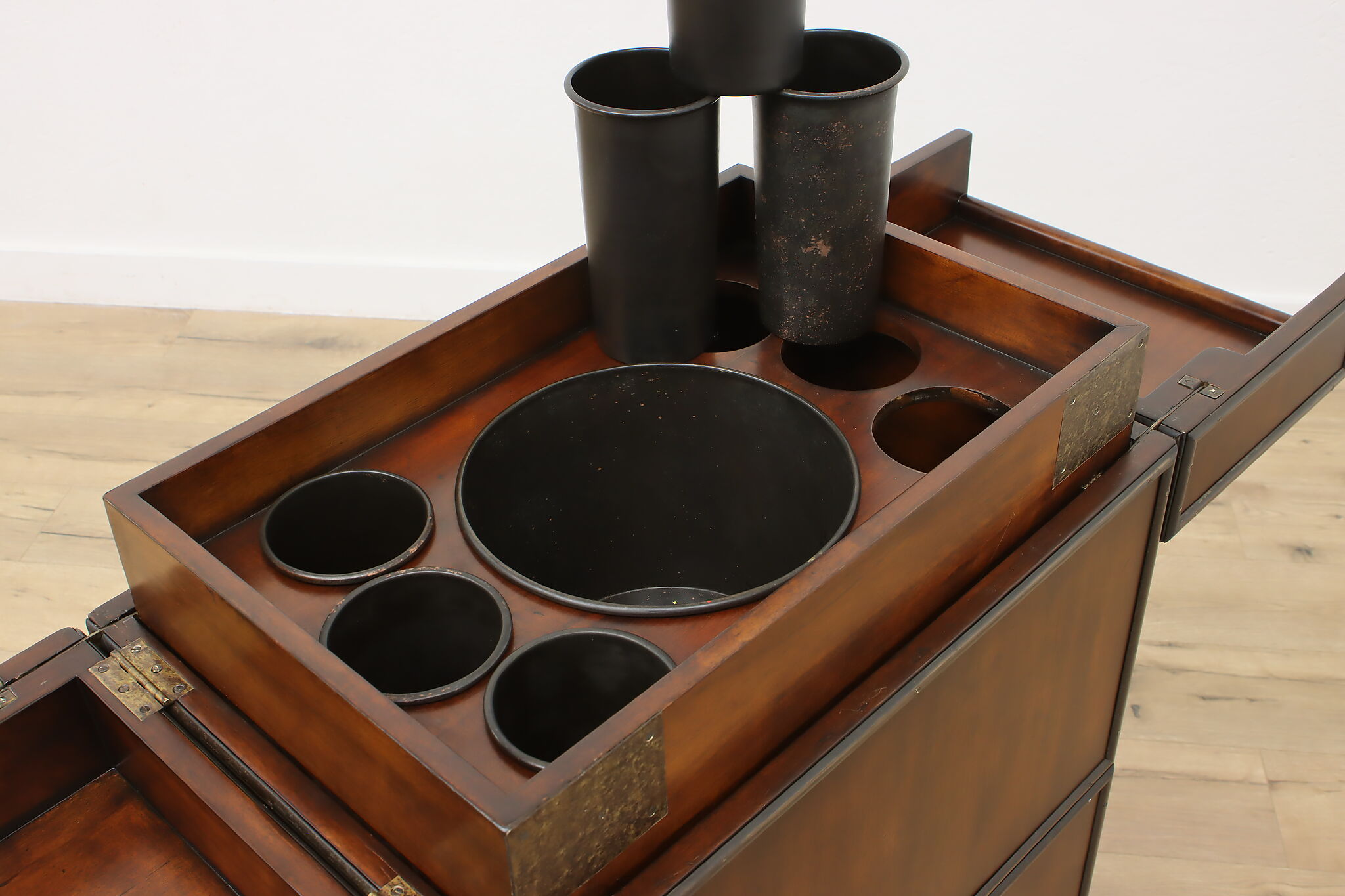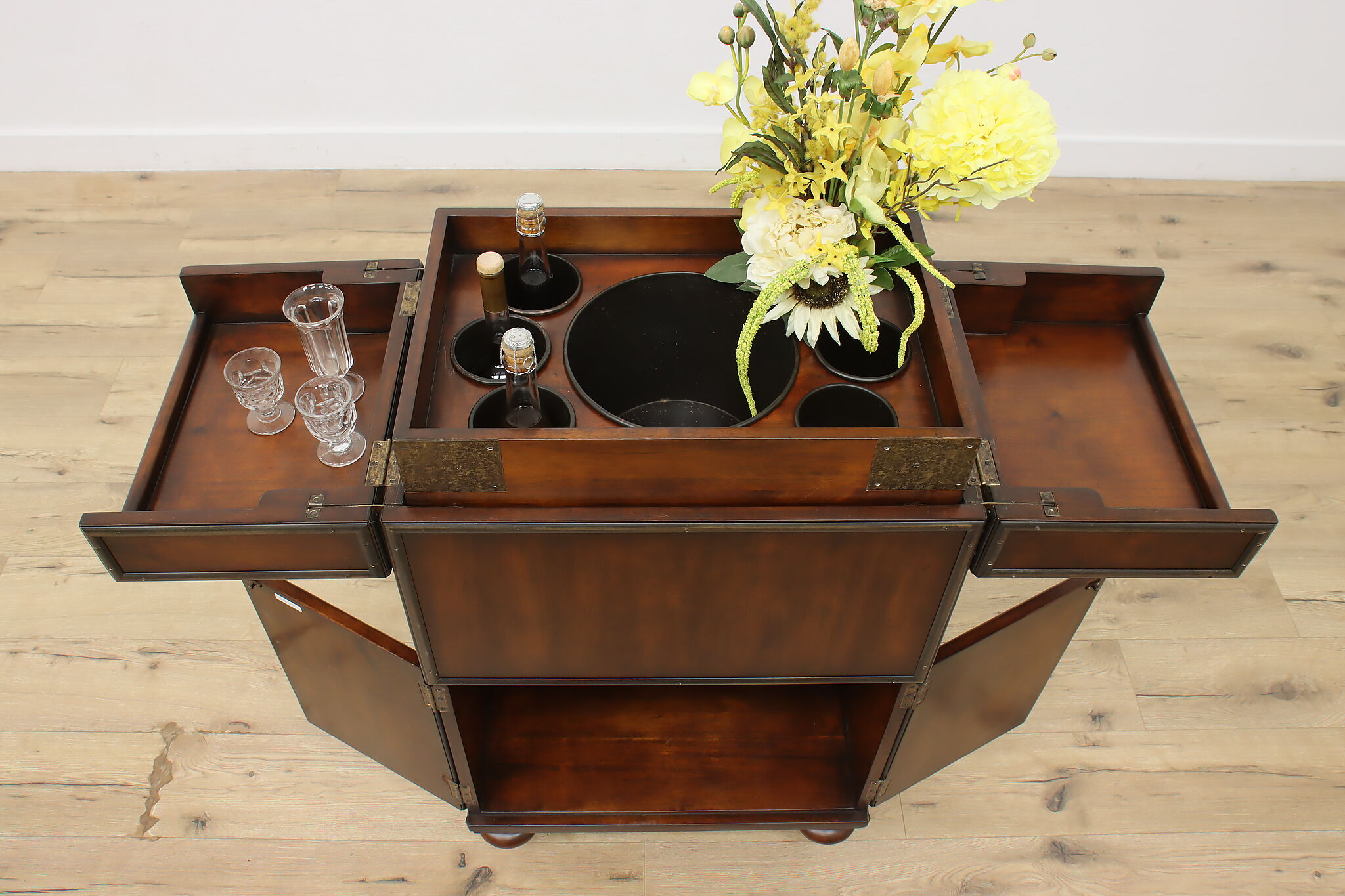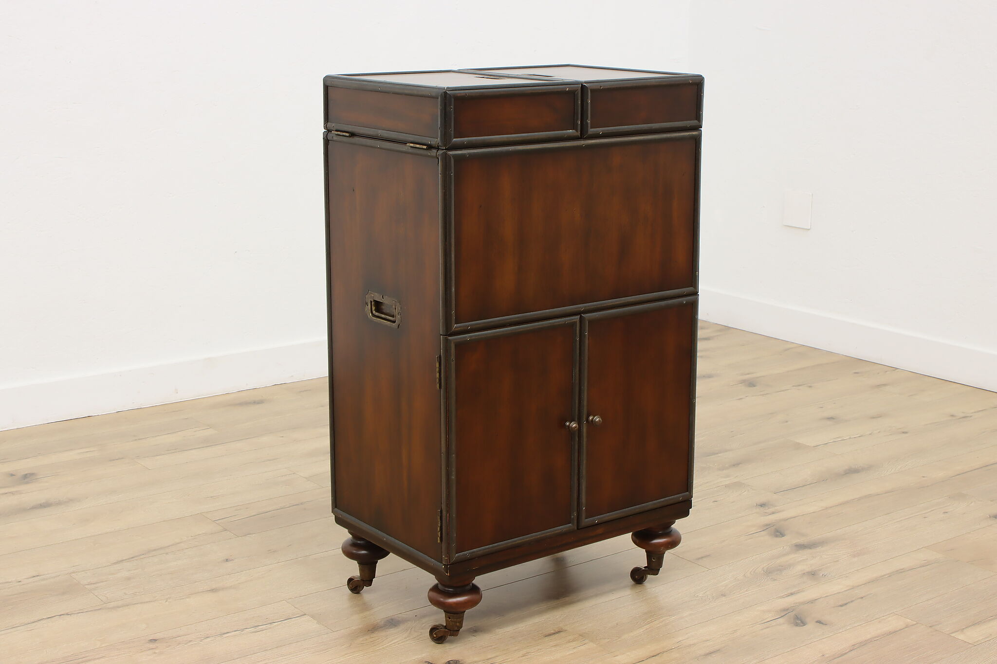 Campaign furniture is a well-loved furniture design for its ability to be moved quickly during military campaigns and long-distance travel. Take this rolling bar server or cabinet on a tour around your home as you serve guests with its "pop up" serving area.