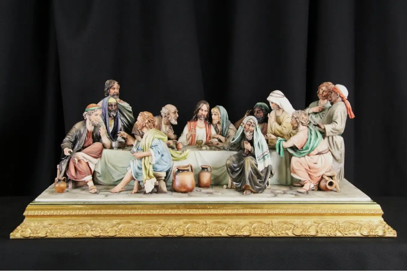 Signed by famed Italian sculptor, "Luciano Cazzola," this hand made and painted porcelain "Last Supper" work of art is dated "1994, Number 19 of 1500."