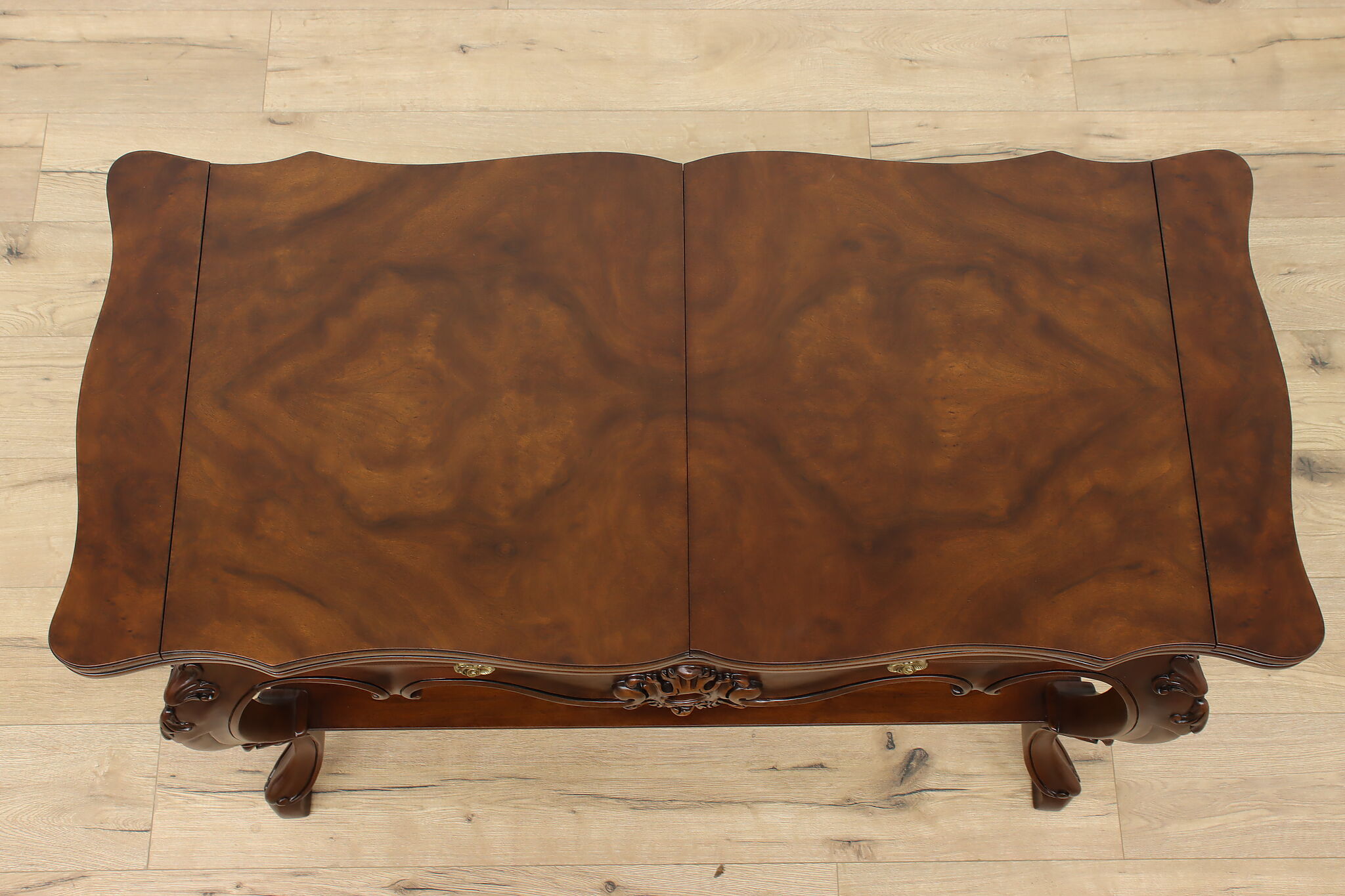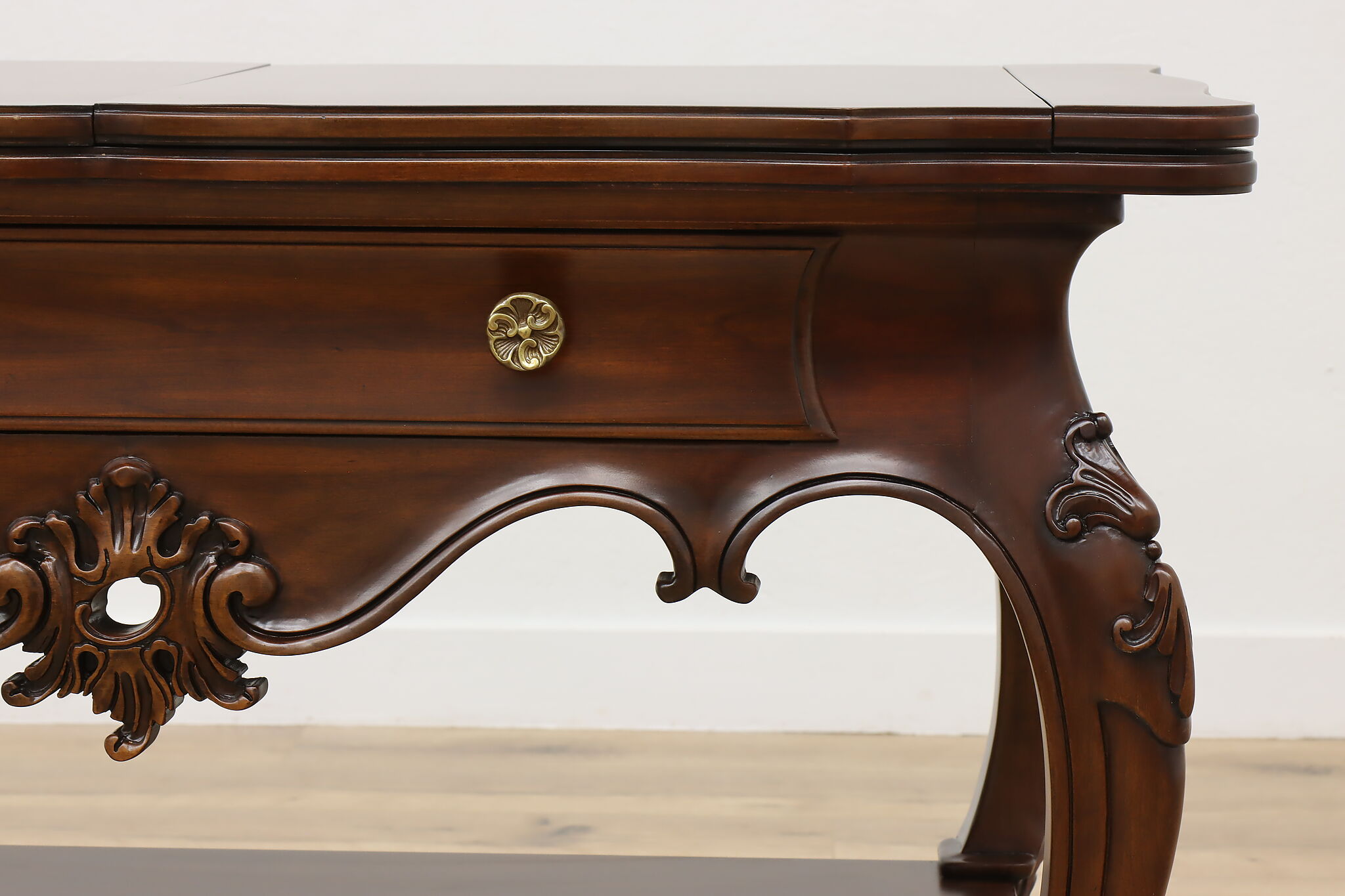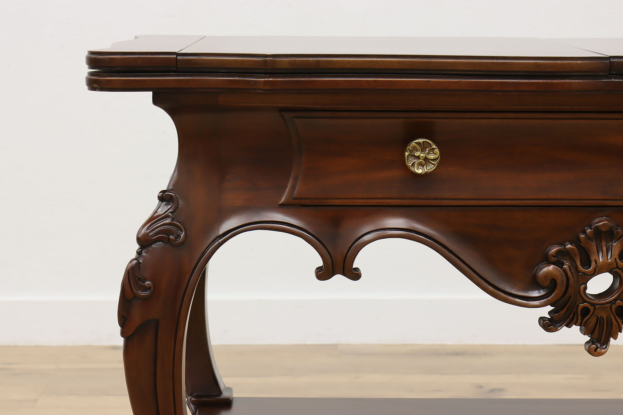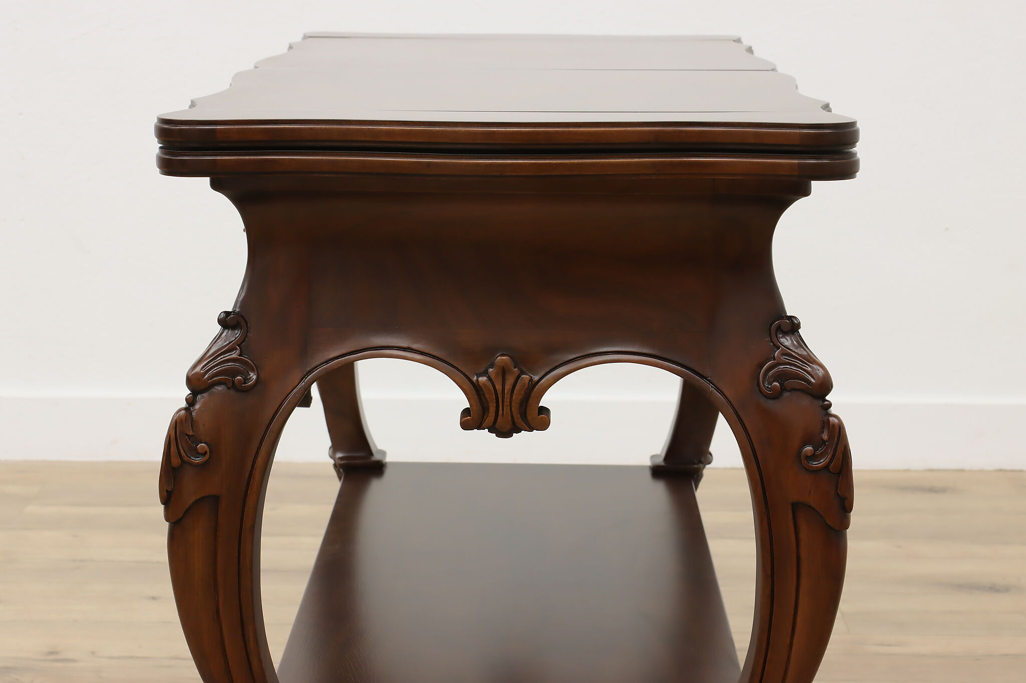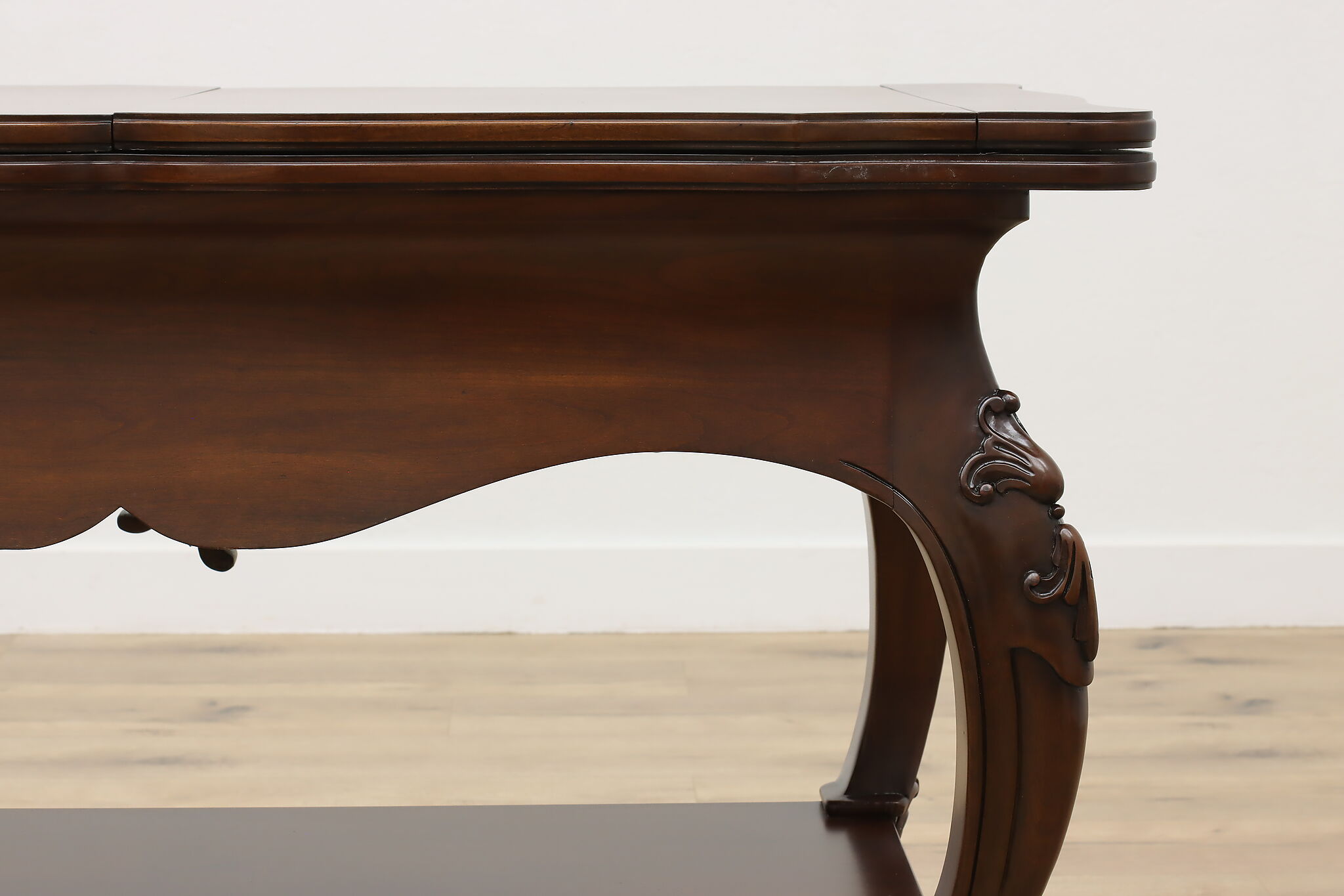 This gorgeous French design console has a flip top with a laminate surface to serve guests appetizers and drinks.