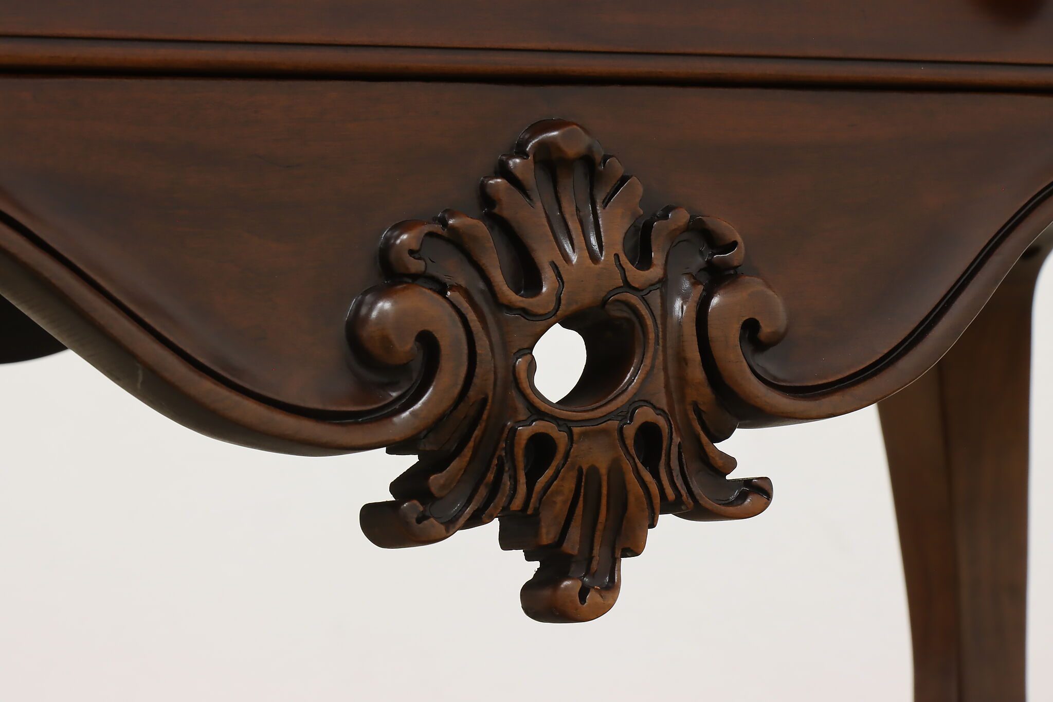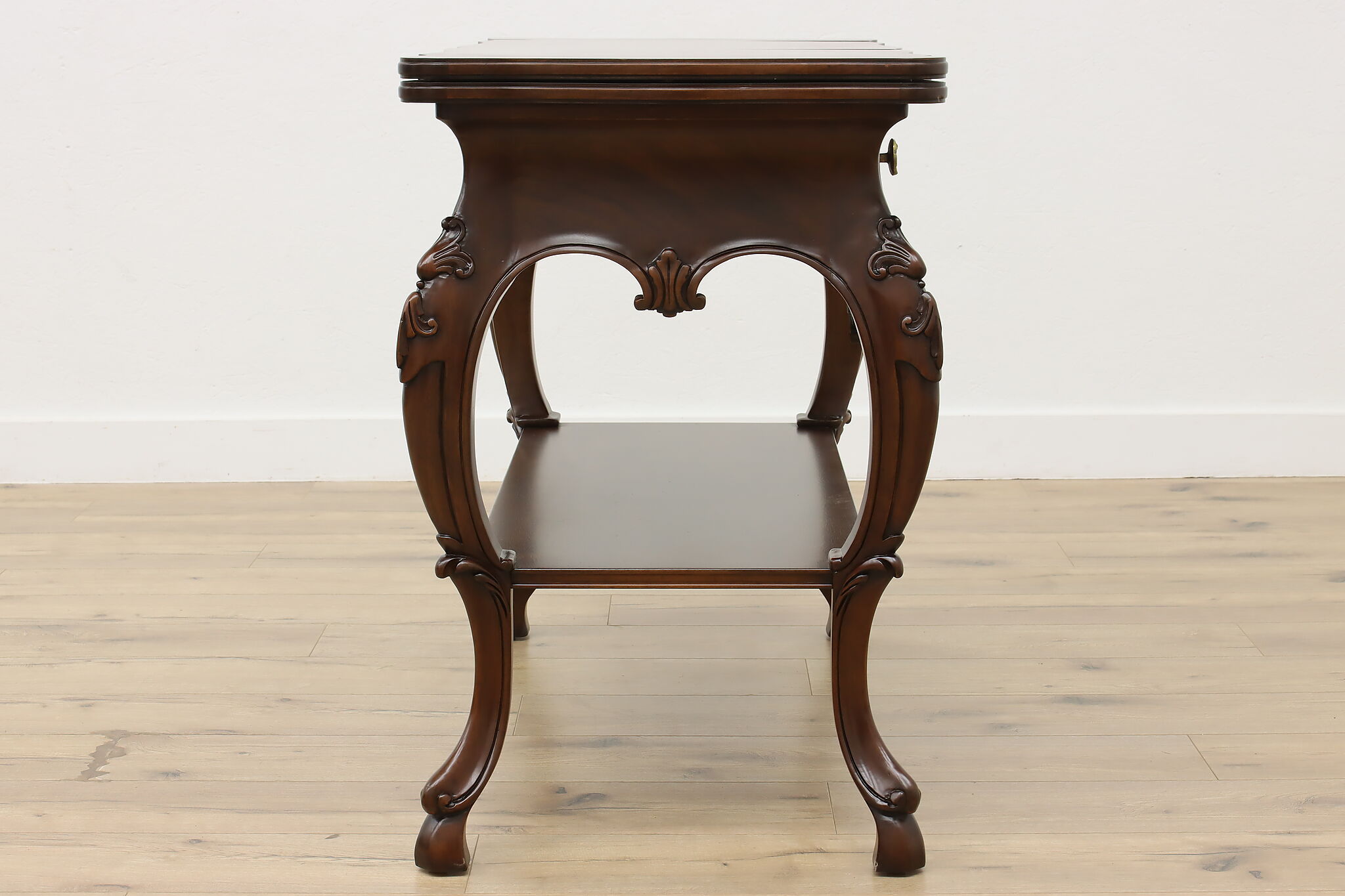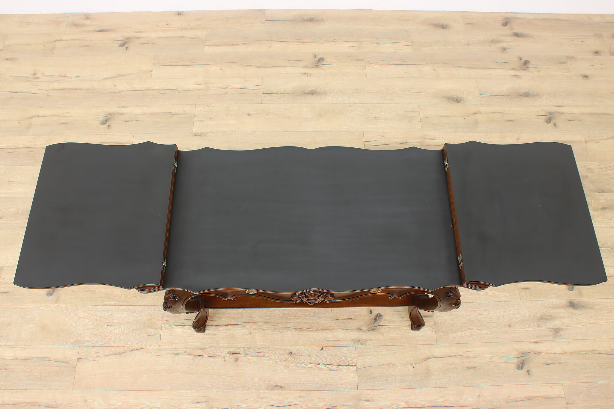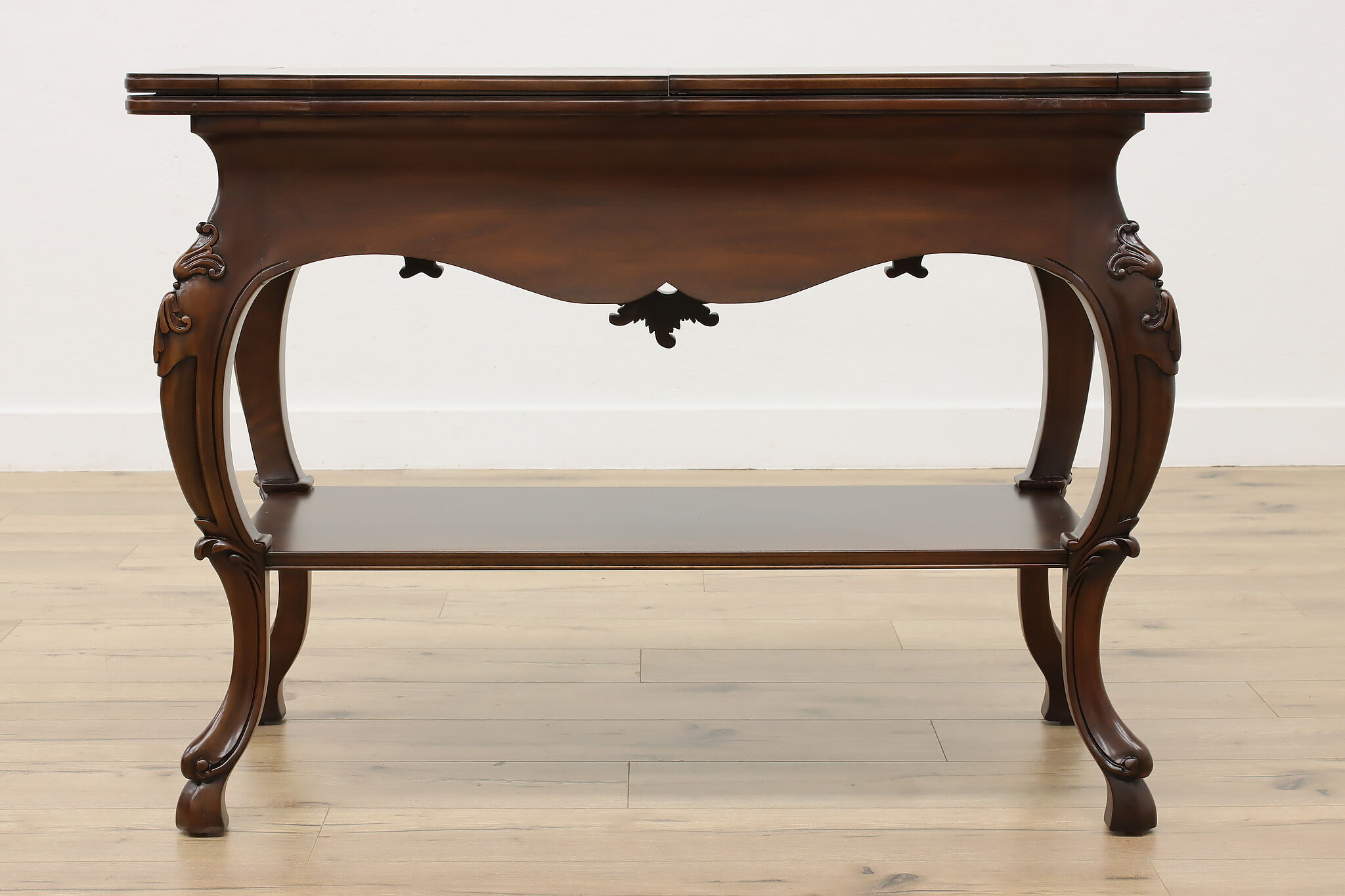 This gorgeous French design console has a flip top with a laminate surface to serve guests appetizers and drinks.