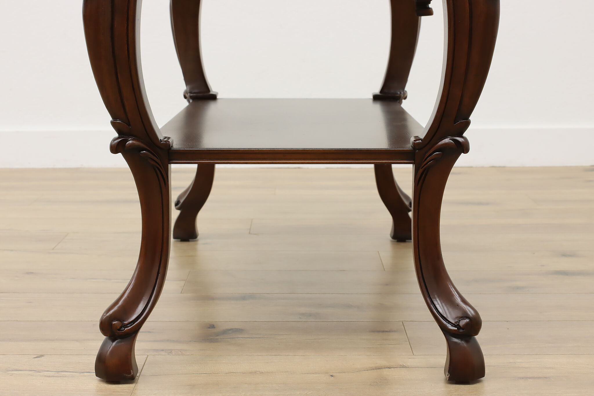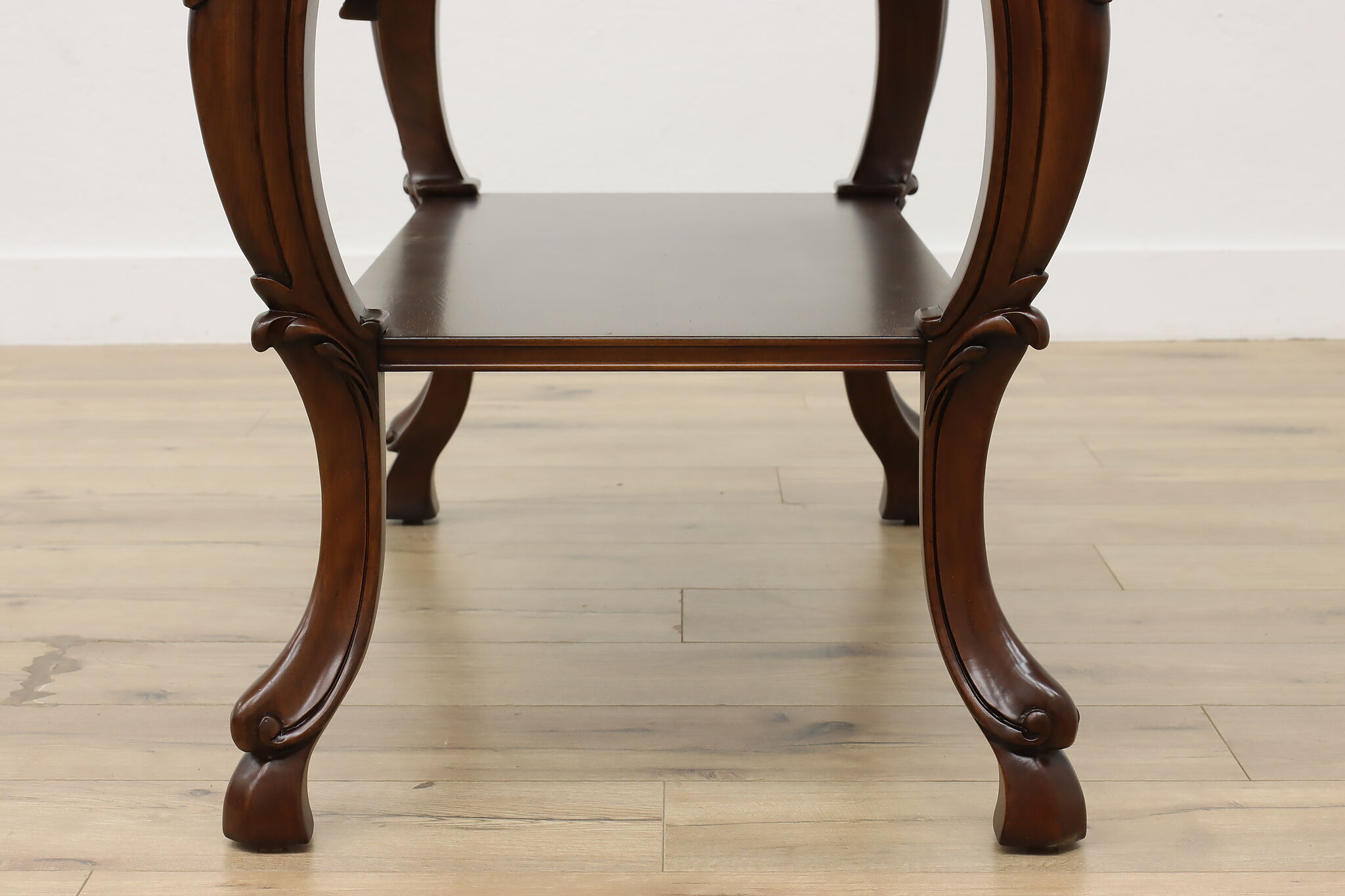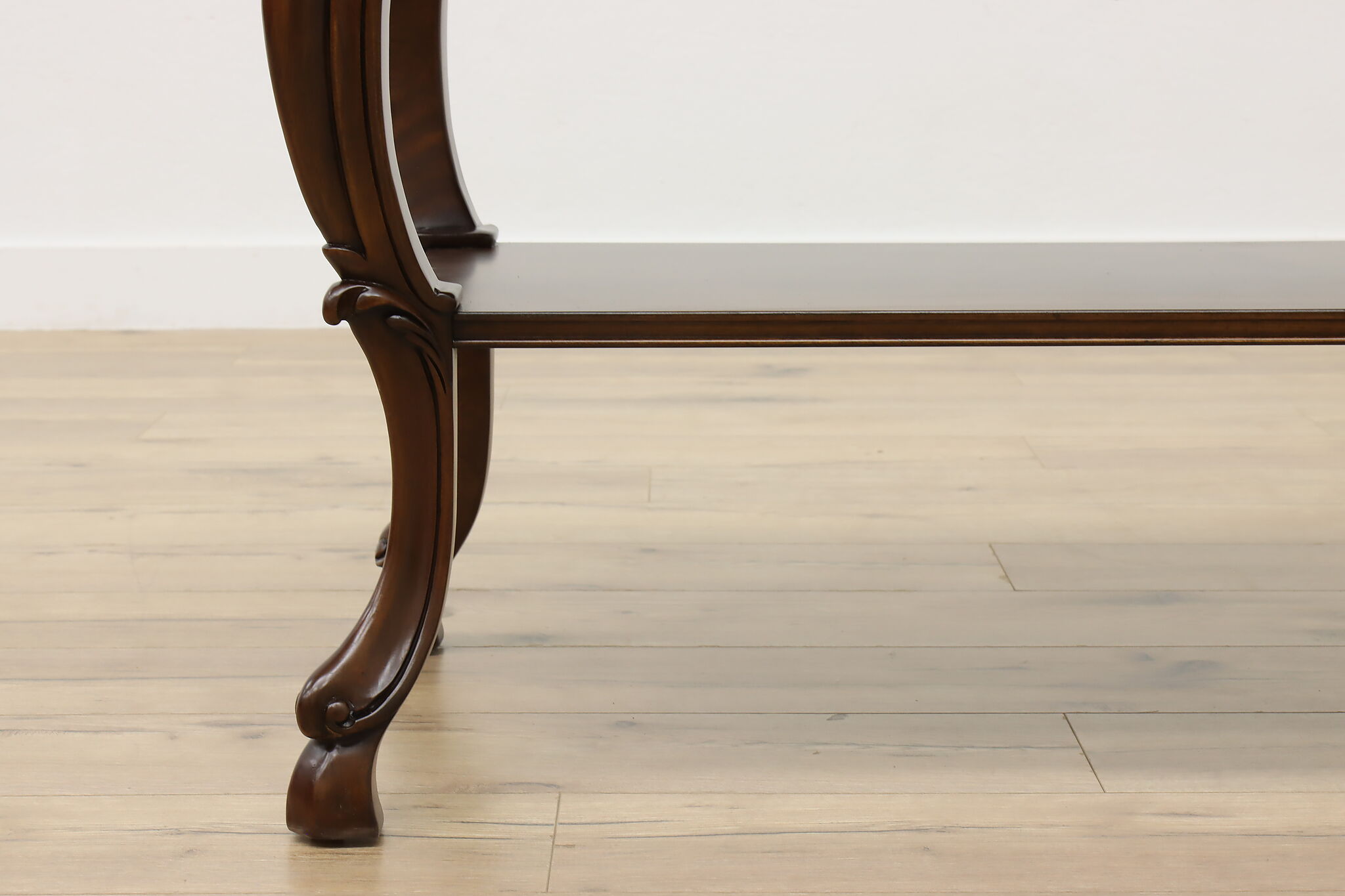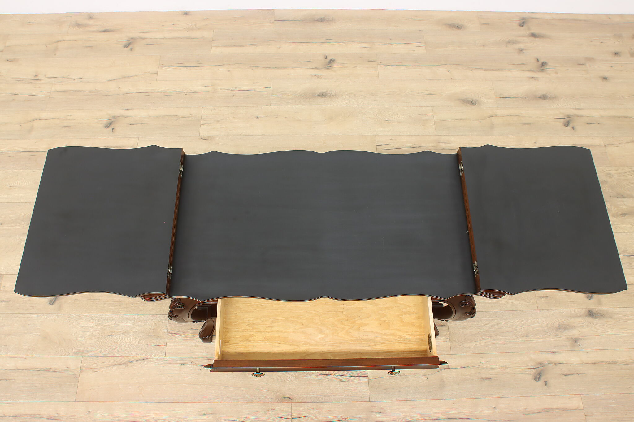 This gorgeous French design console has a flip top with a laminate surface to serve guests appetizers and drinks.