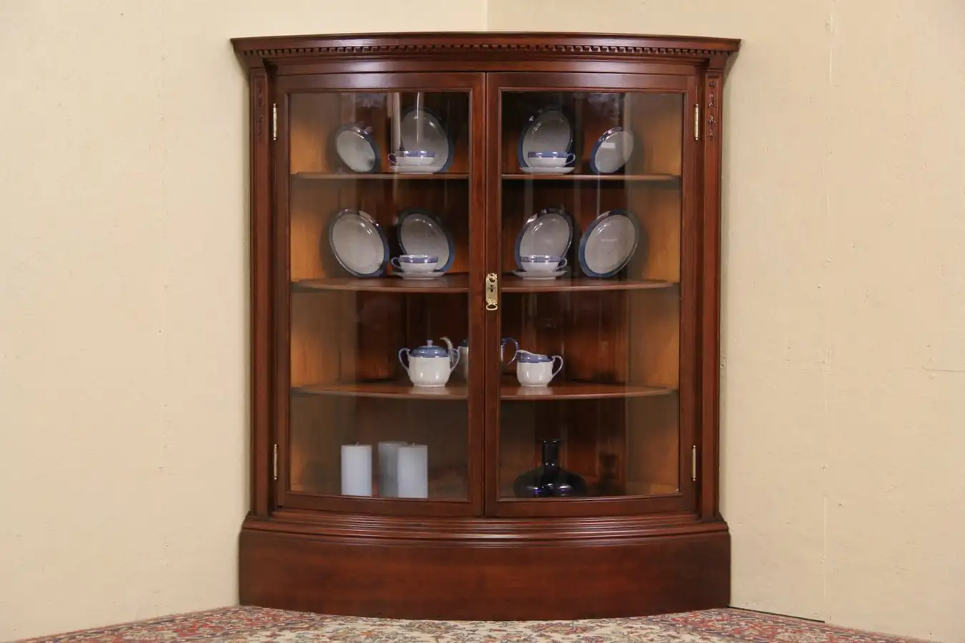 From the famed St. Paul, MN estate of railroad magnate, James J. Hill, this imposing corner china or curio display cabinet dates from around 1890.