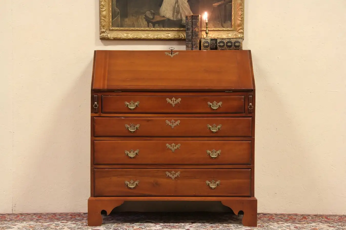 Clean lines are beautiful on this charming example of our American heritage. Size is 37" wide, 20" deep, 39" tall and the writing surface is 30" high.