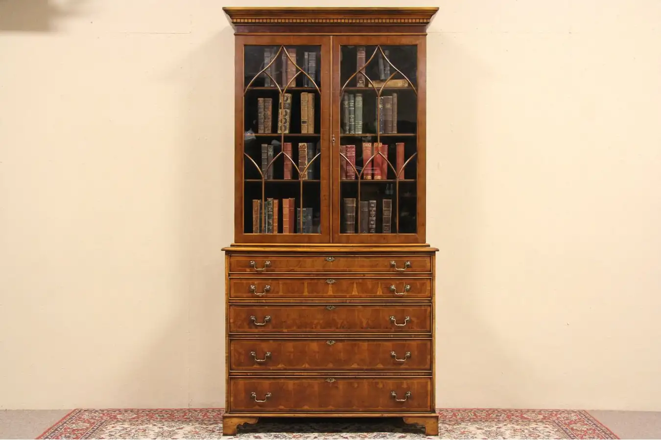 The upper bookcase is a separate piece for easier moving on this exquisite furniture.
