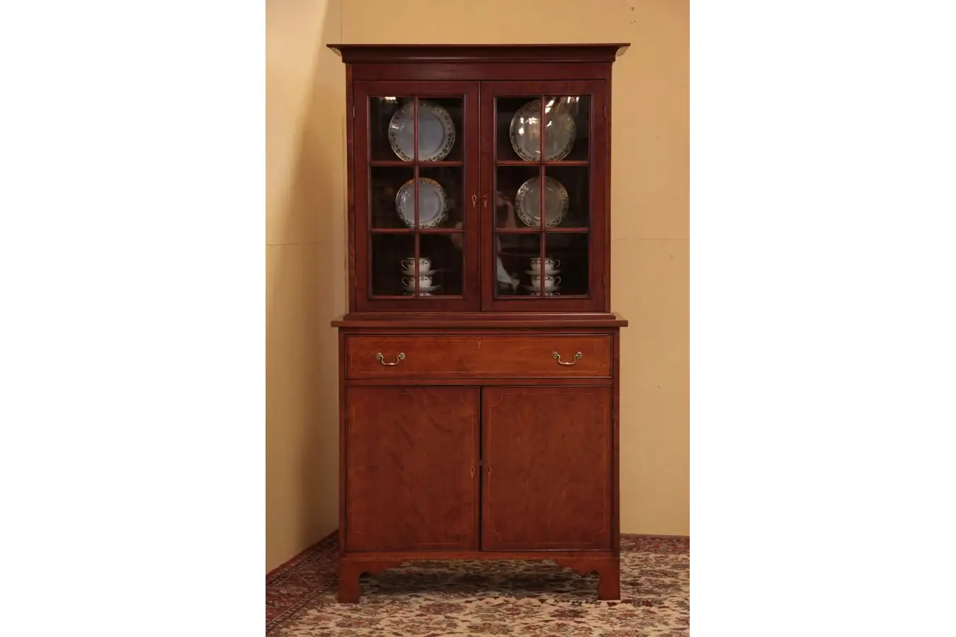 Whether used as a china cabinet or bookcase, this wonderfully hand-crafted cherry furniture is signed and dated 1946. A replica of a late 1700's Federal original, the workmanship is exquisite.