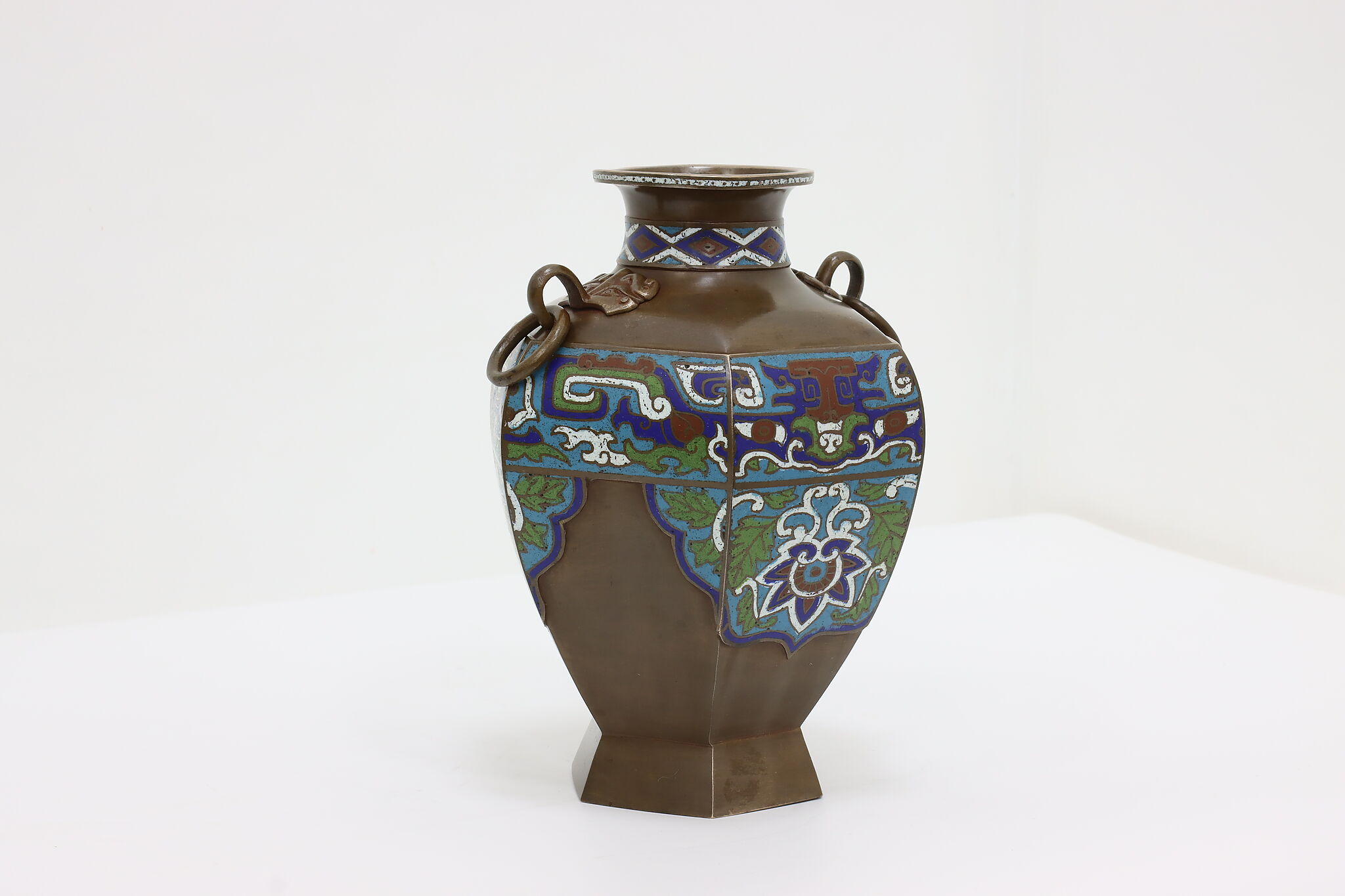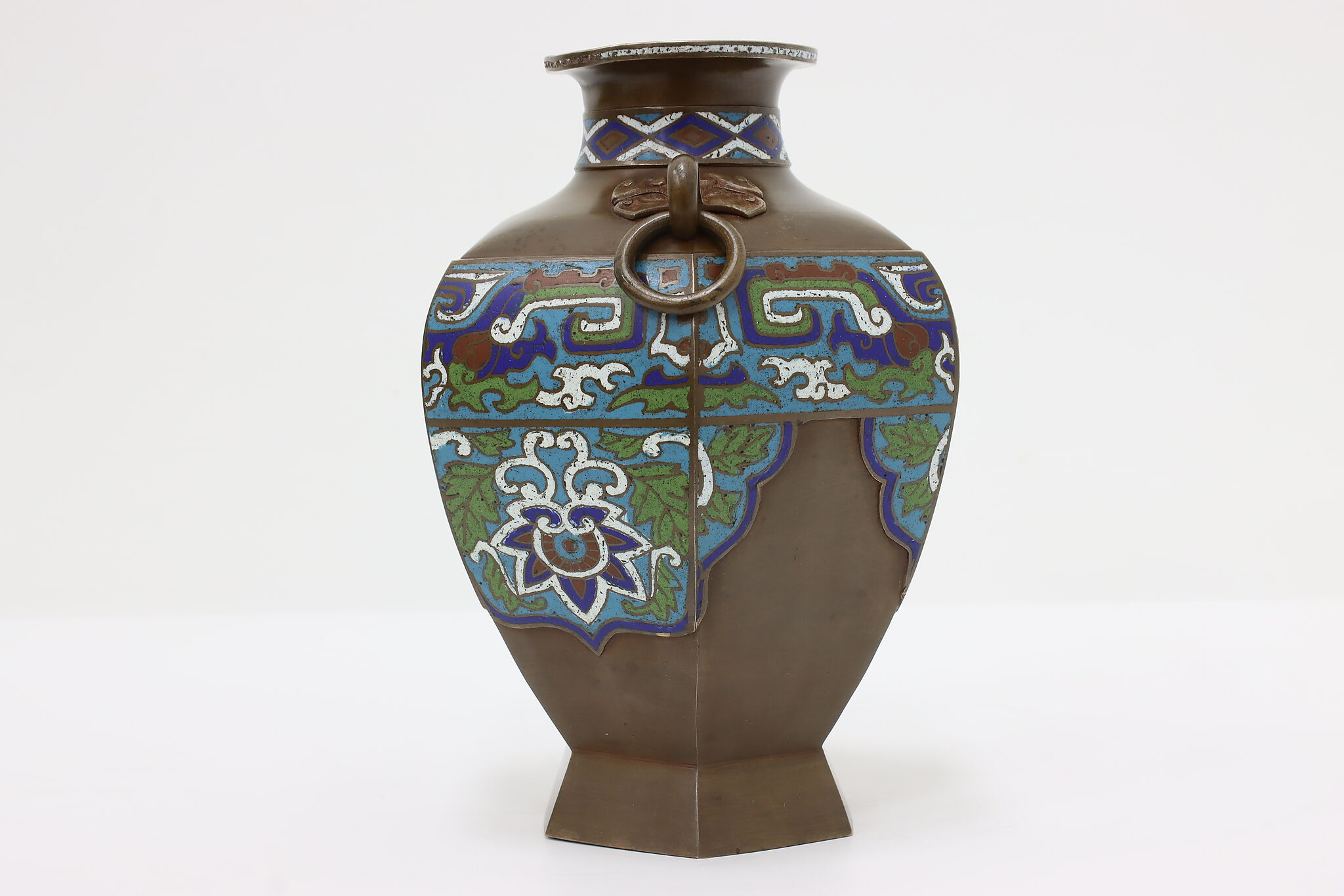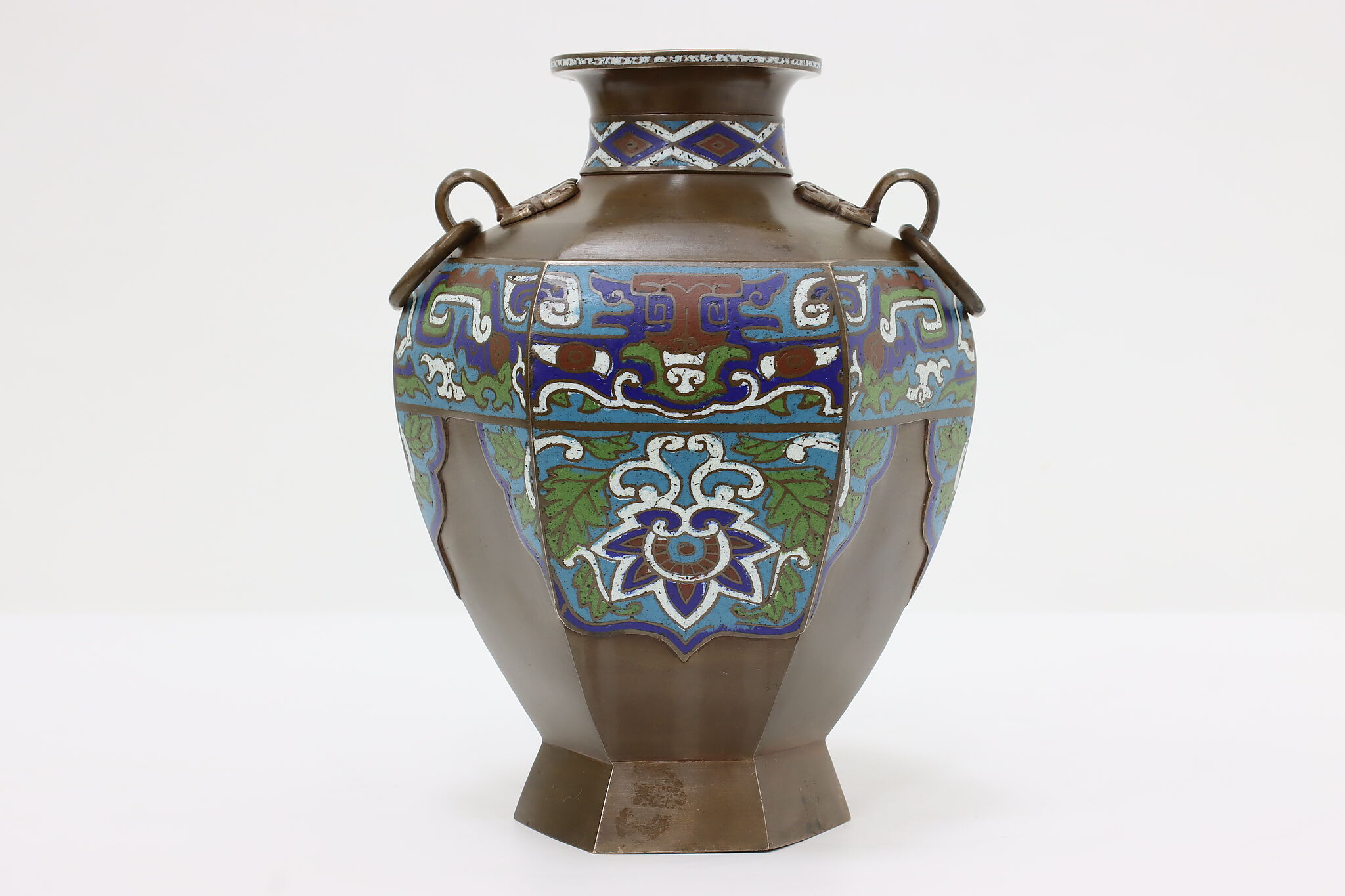 The beautiful craftsmanship of this vase or urn is called Champleve enamel work and dates back centuries in cultures around the world.