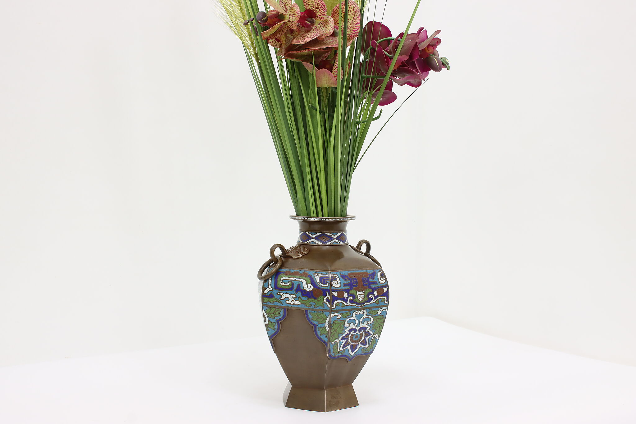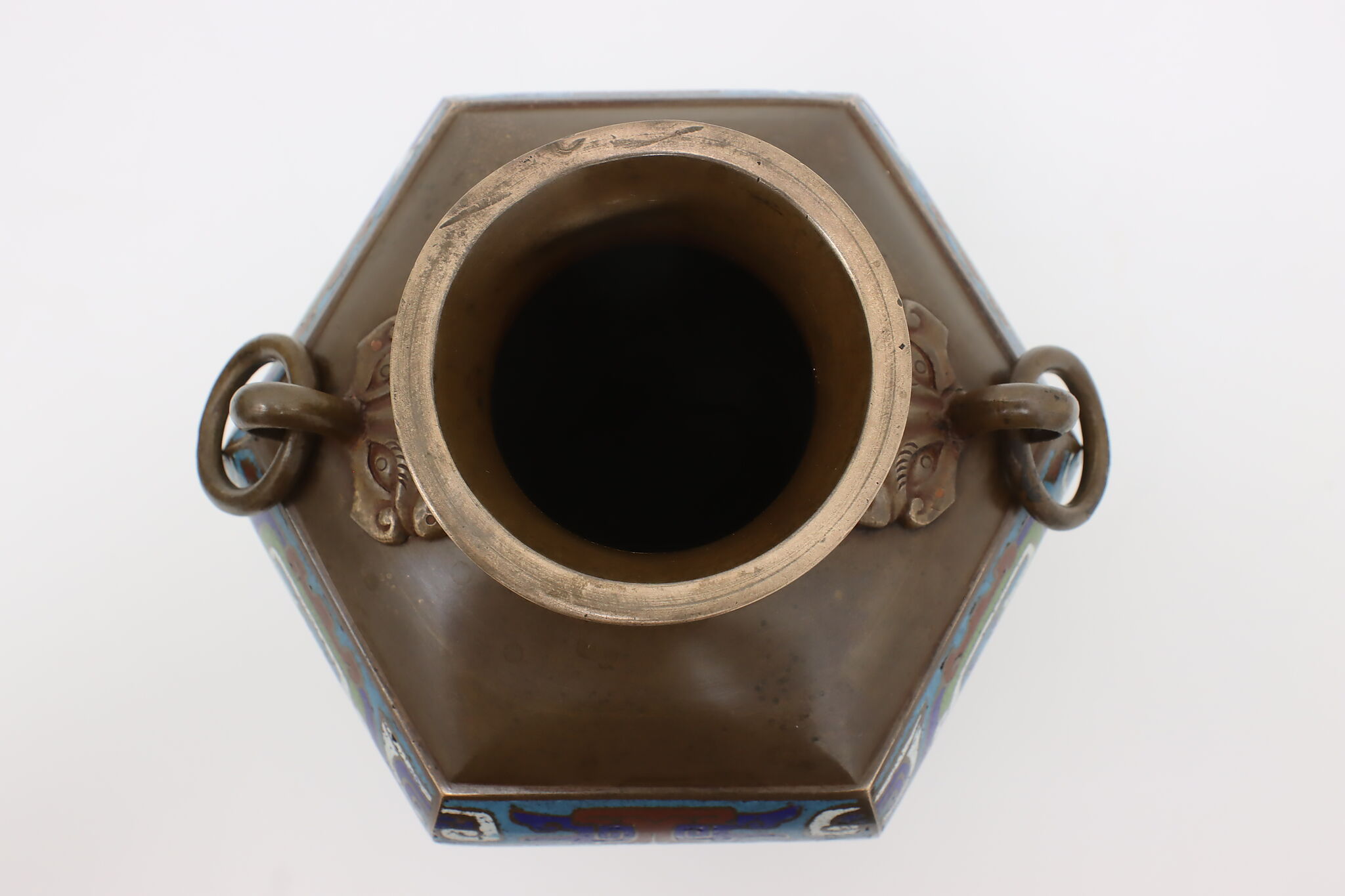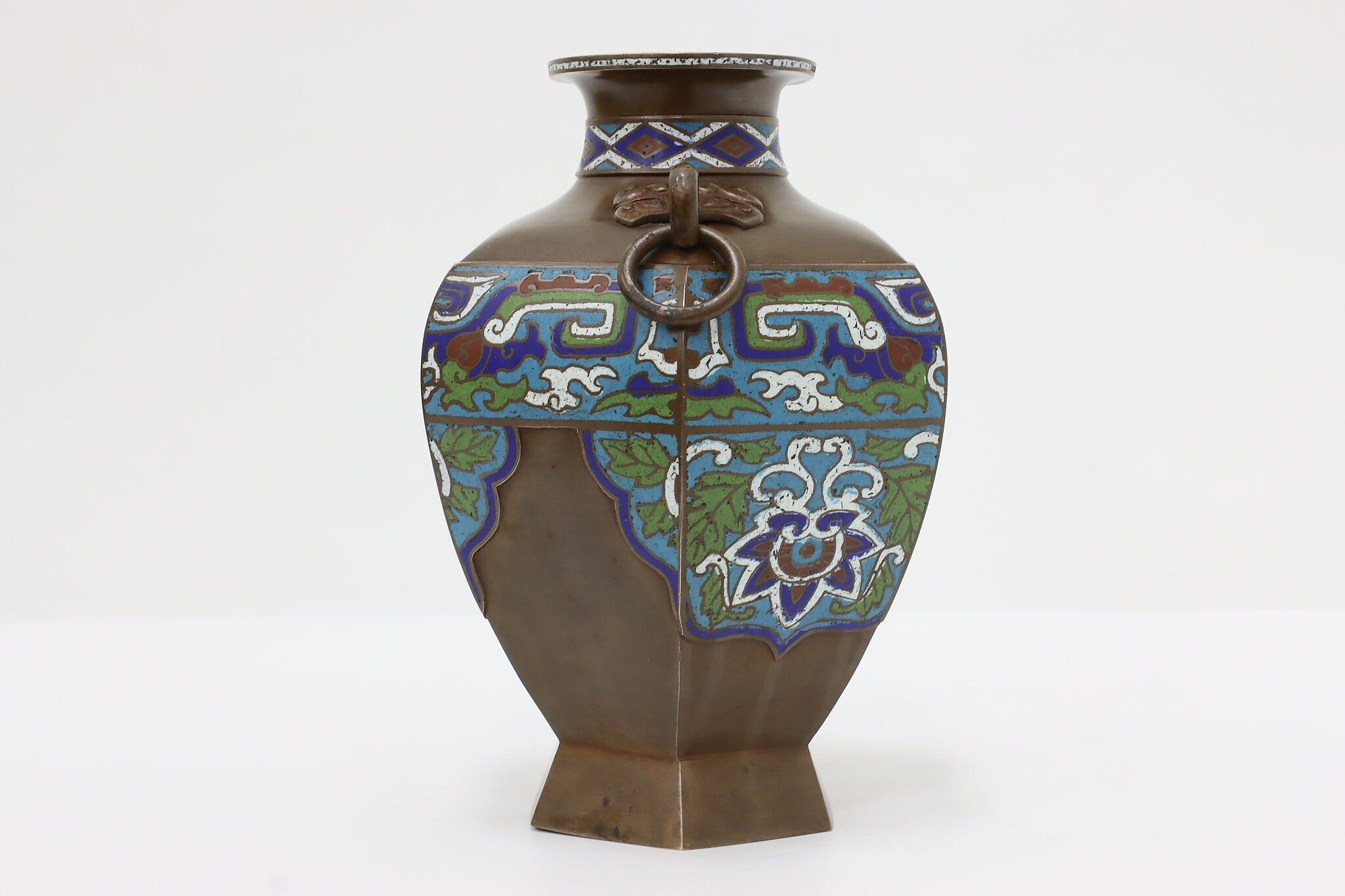 The beautiful craftsmanship of this vase or urn is called Champleve enamel work and dates back centuries in cultures around the world.