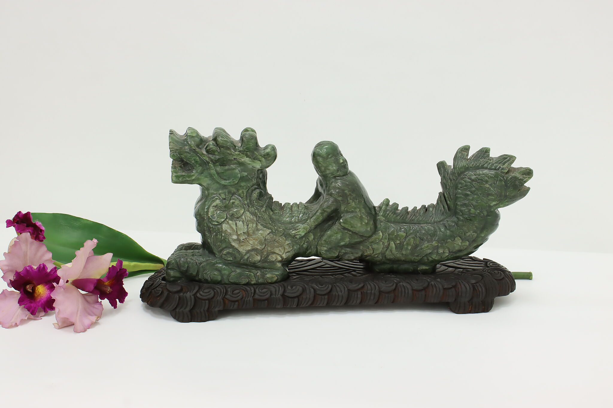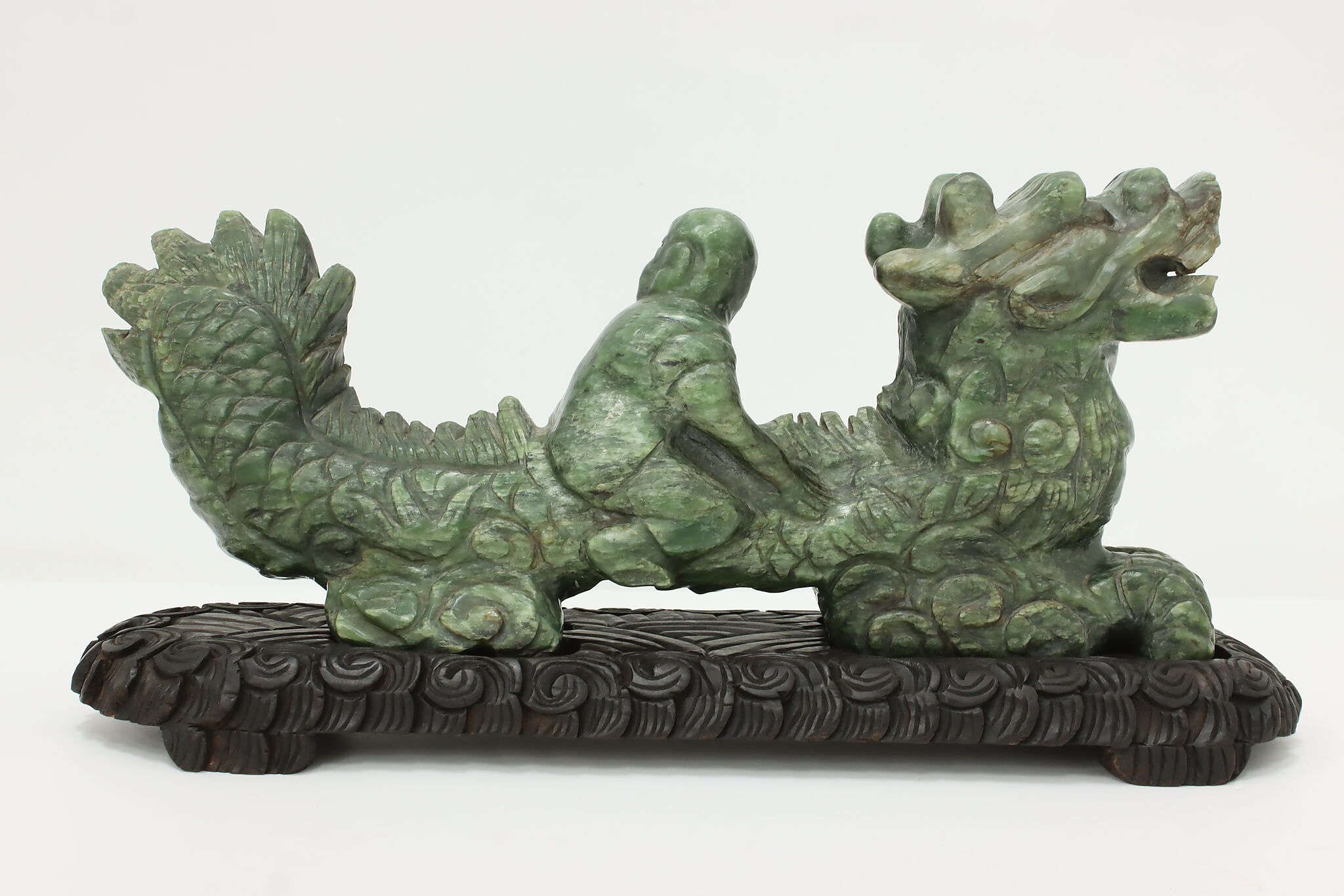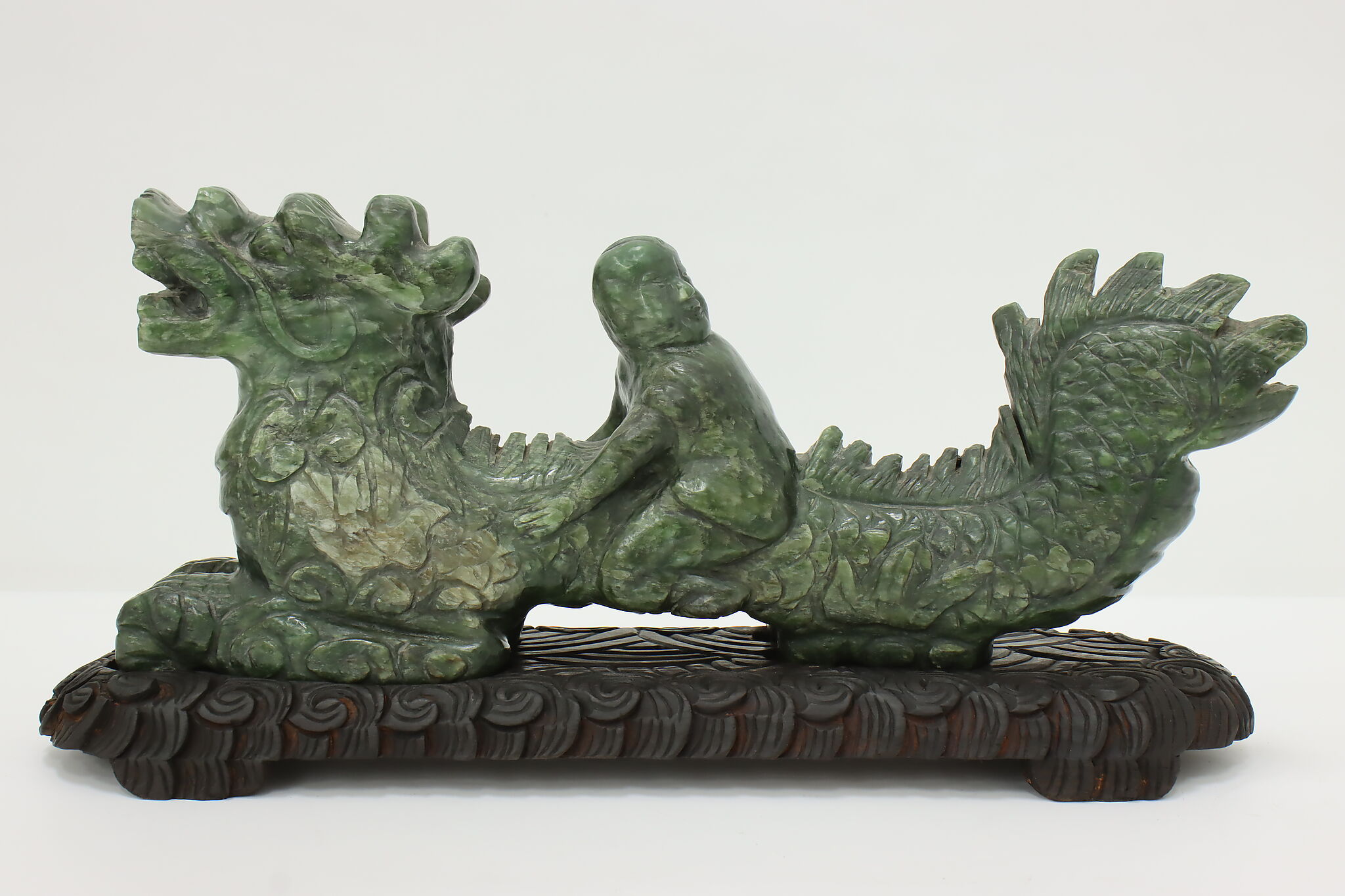 Dragons in Chinese mythology are symbols of power and good fortune. The young boy riding on the back of this dragon is very lucky and will bring prosperity to your home.