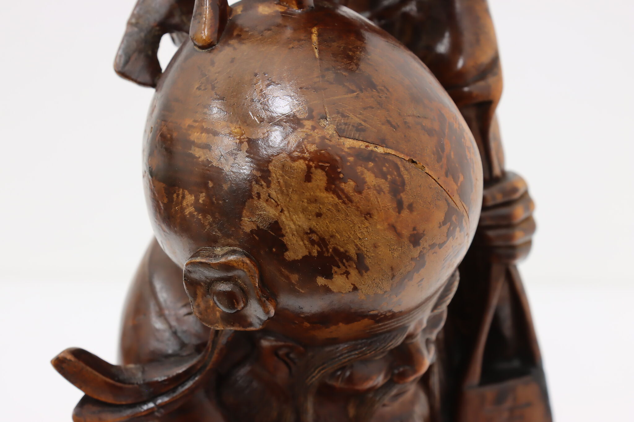 In Chinese culture Shou Lao, identified by his bulbous head and staff, is the God of longevity and one of the three star gods.
