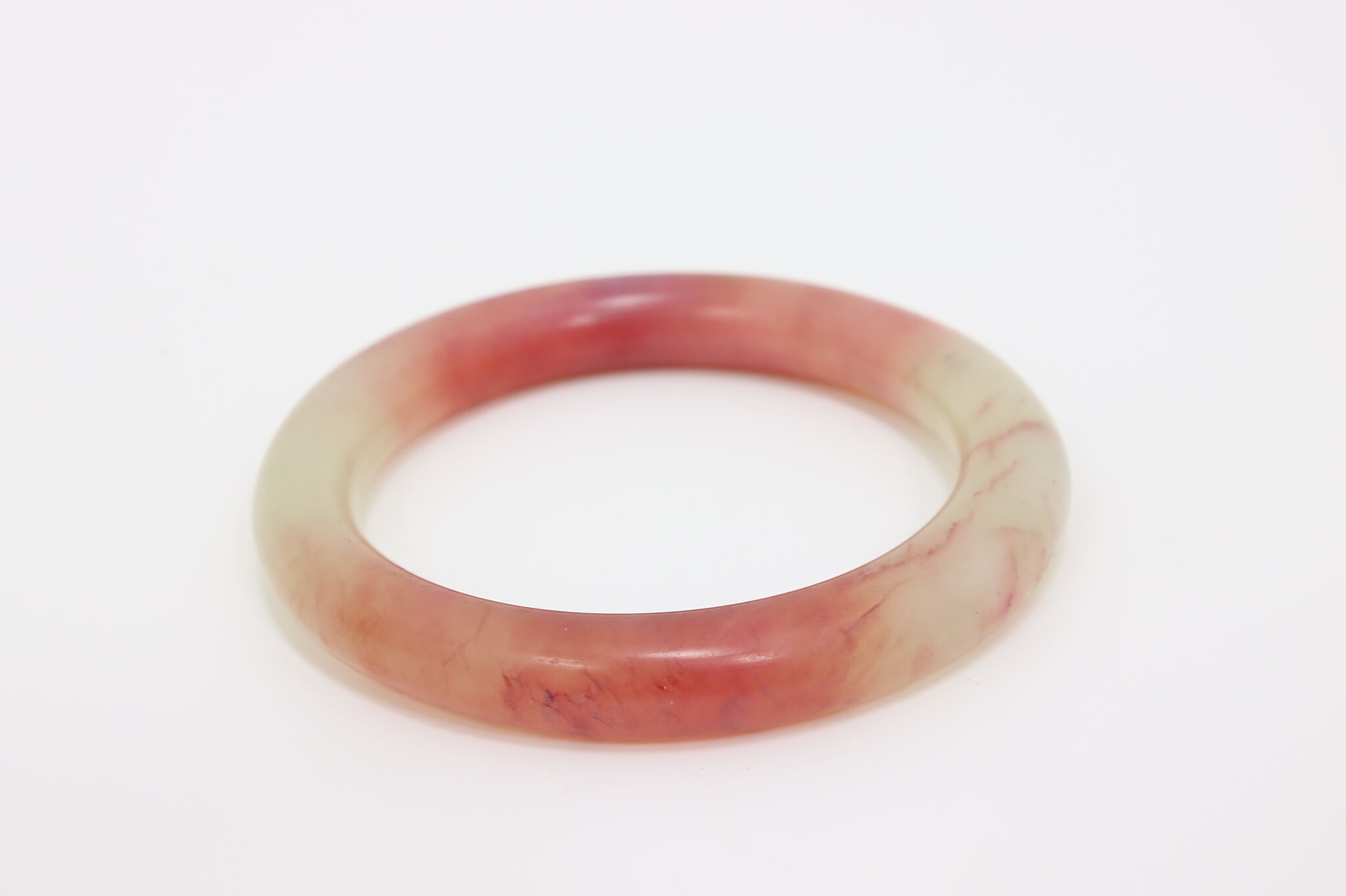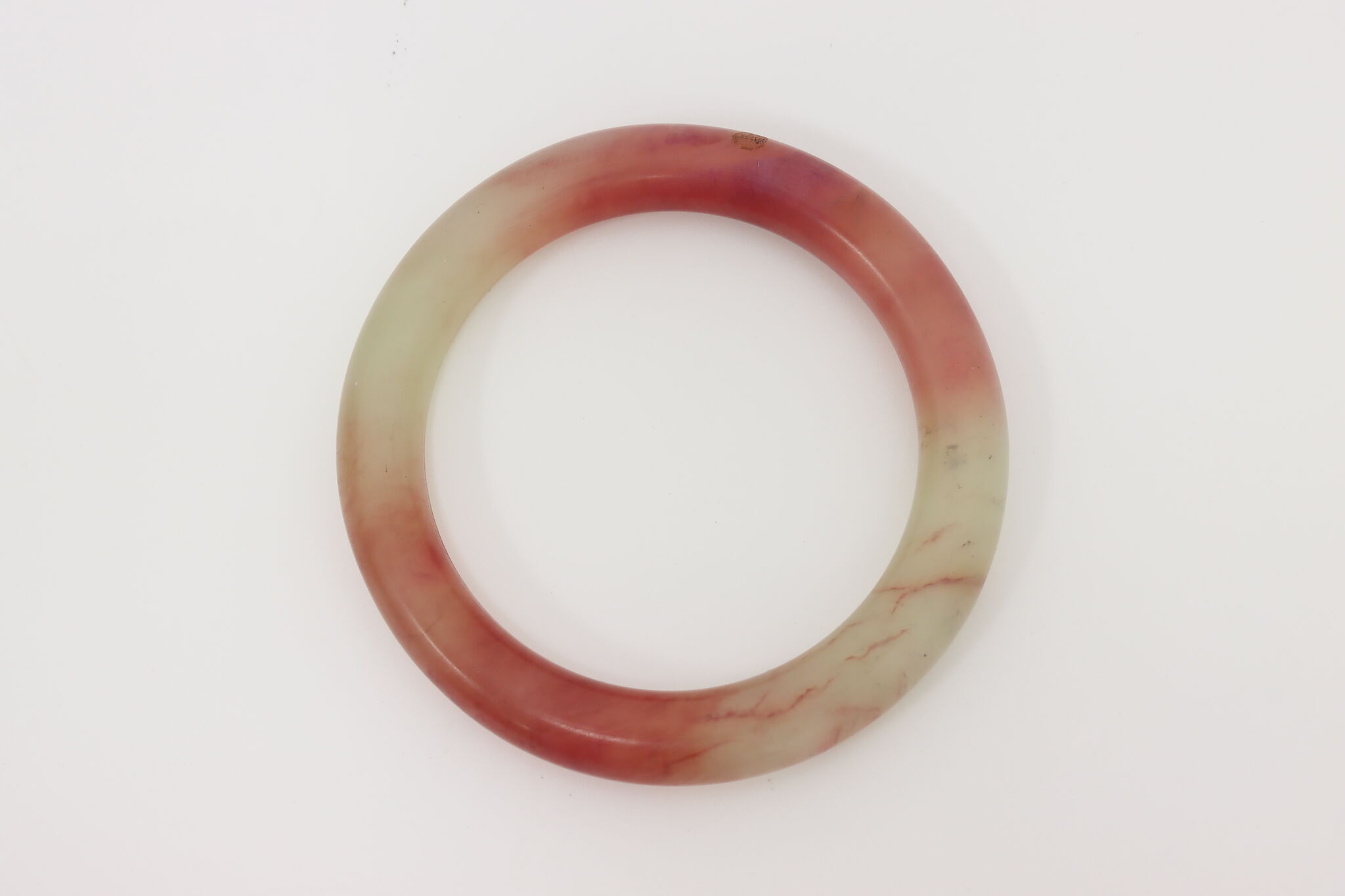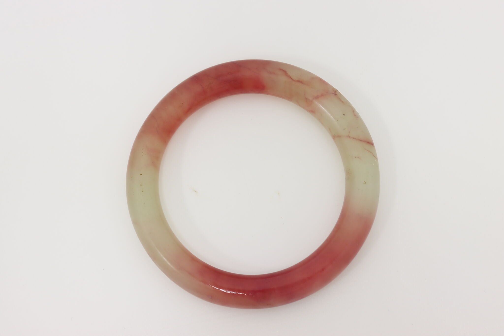 This gorgeous jade bangle has beautiful shades of red and green. Green jade is the most famous and represents life and growth, while red jade represents strong will and success.