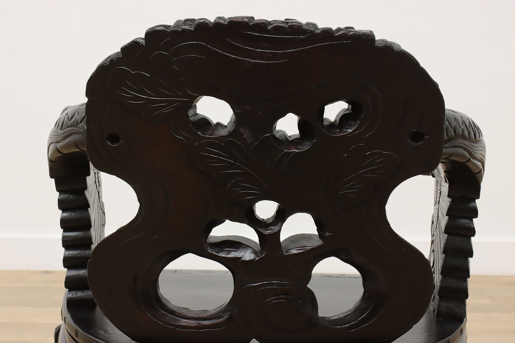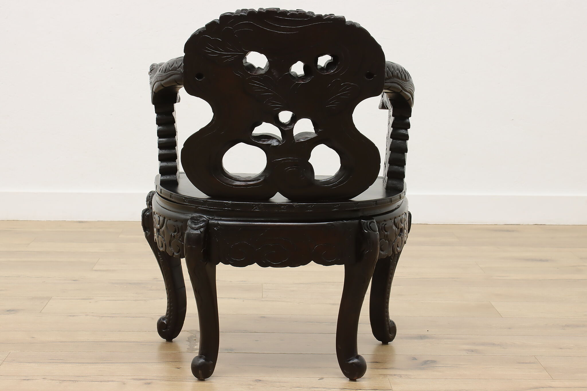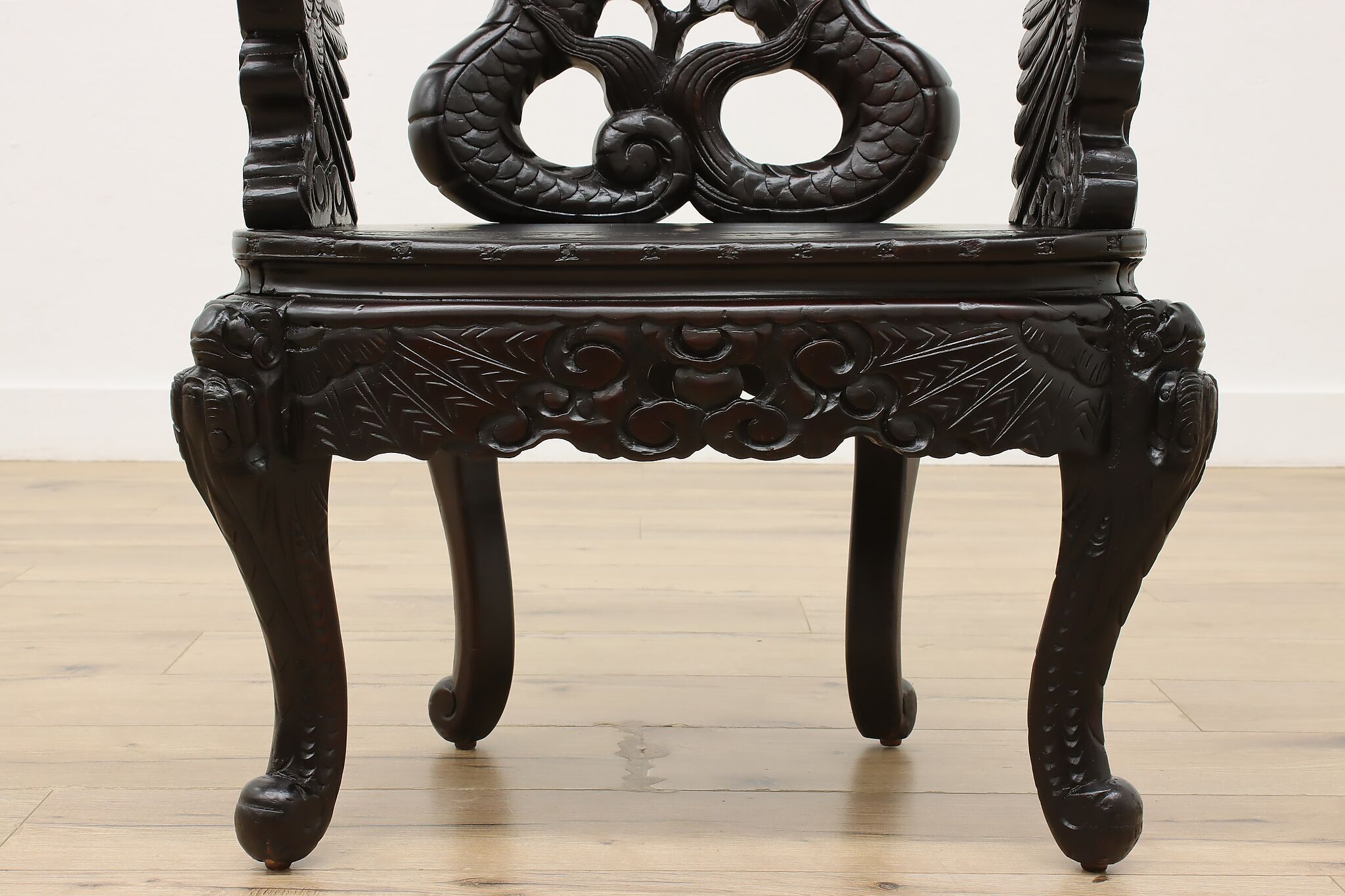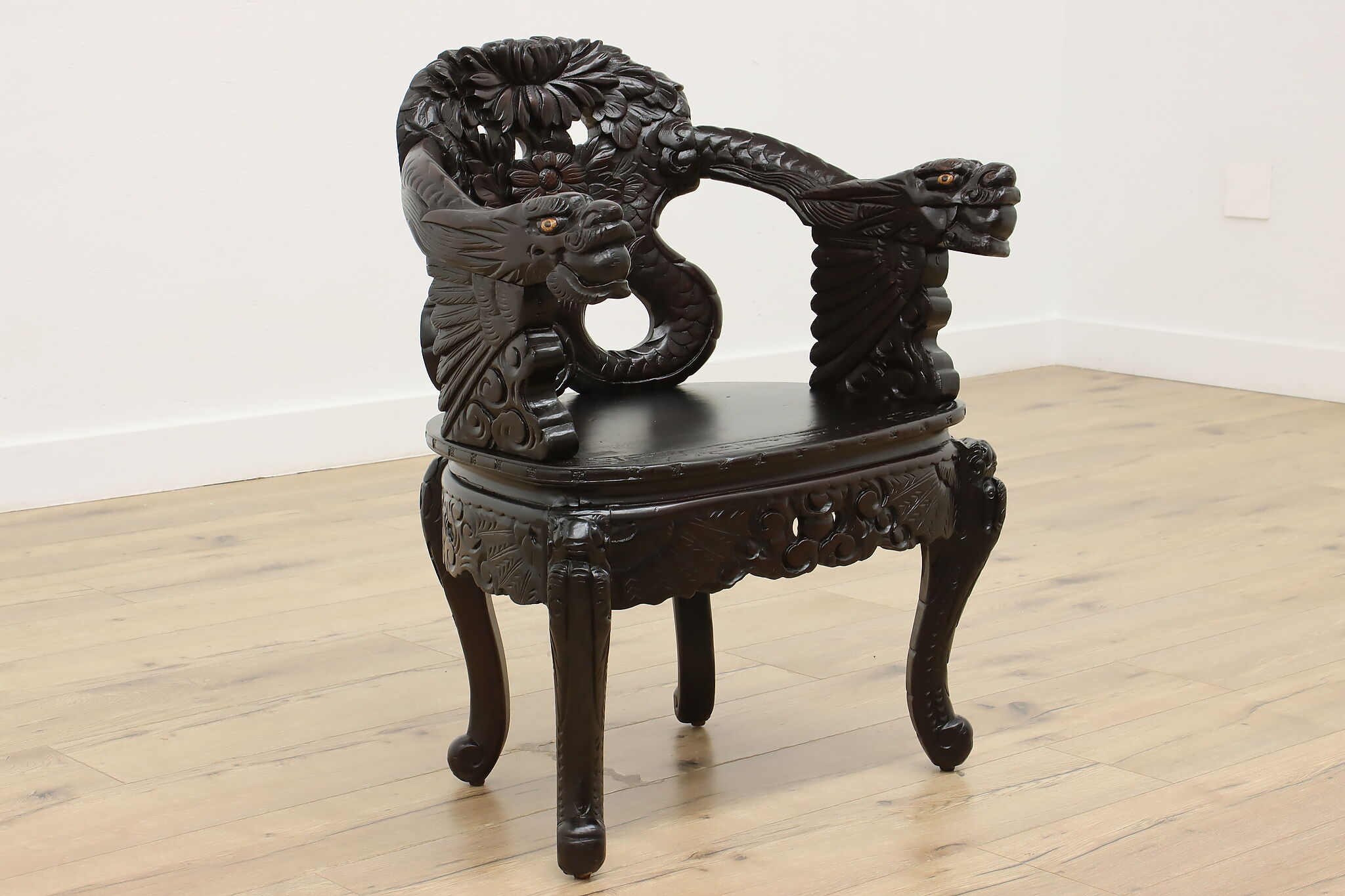 Feel like royalty as you watch over your kingdom from this gorgeously carved chair with its impressive dragon arms.