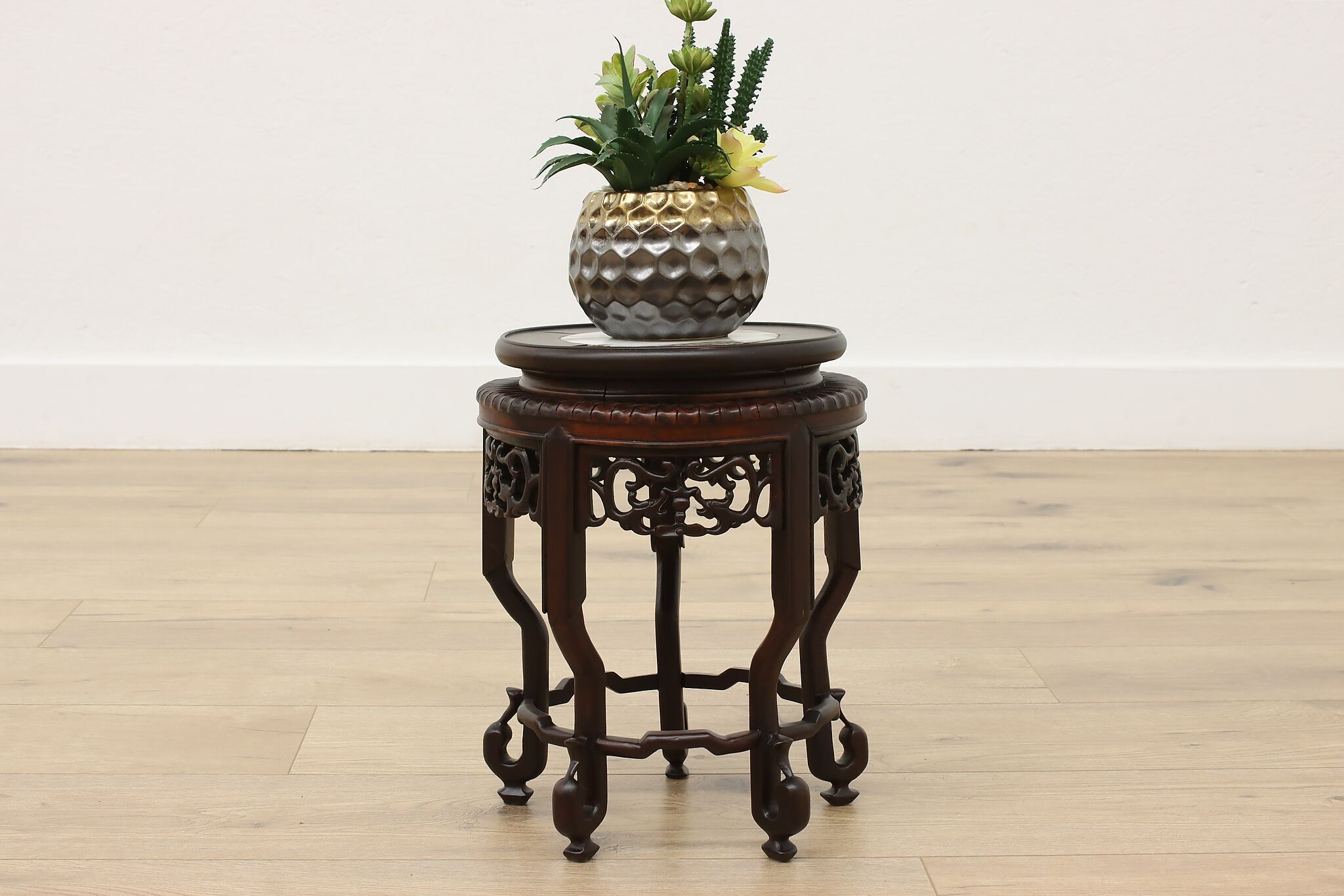 This small plant stand or sculpture pedestal is perfect for displaying artwork in your home or for a chairside drink.