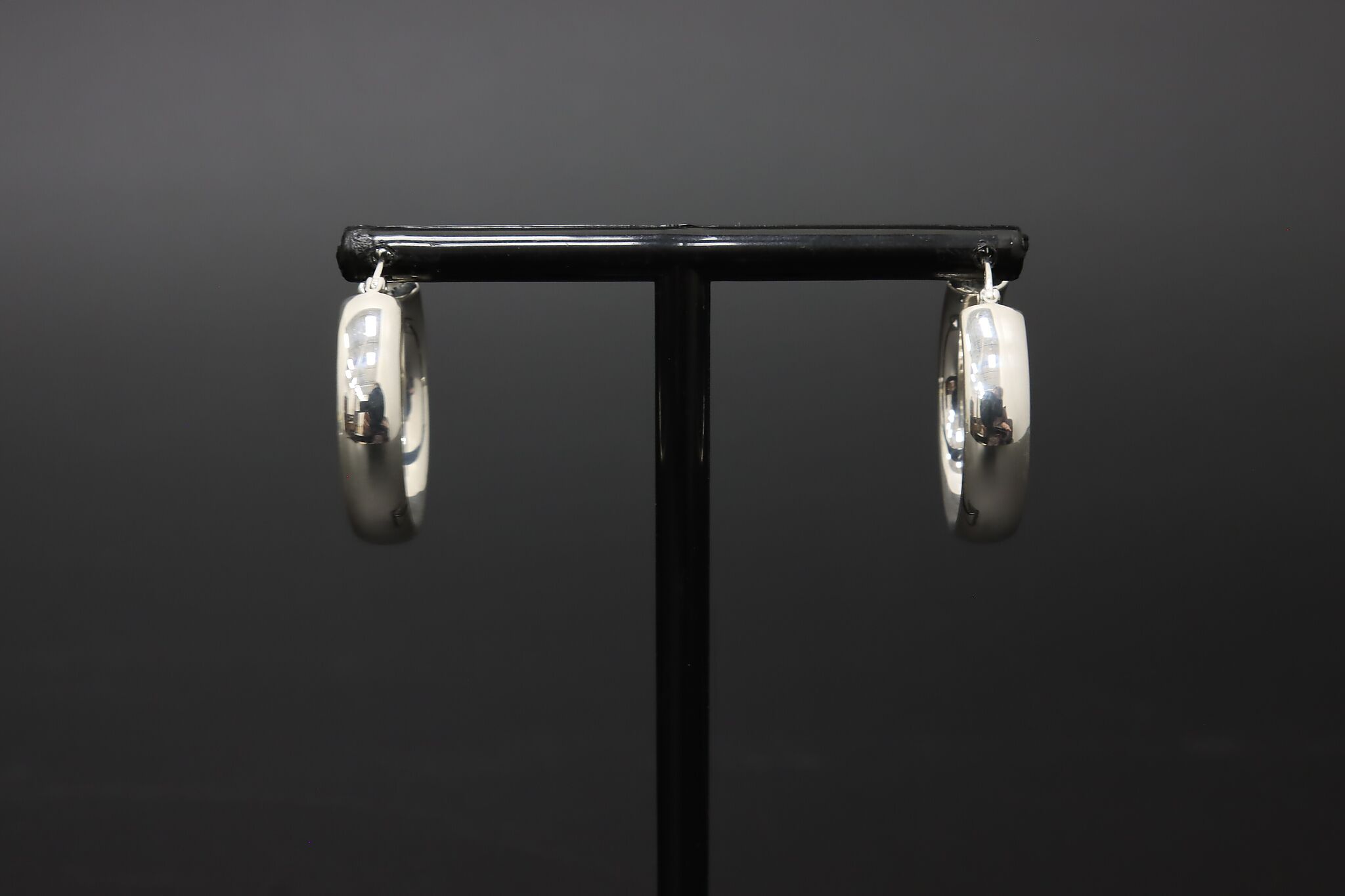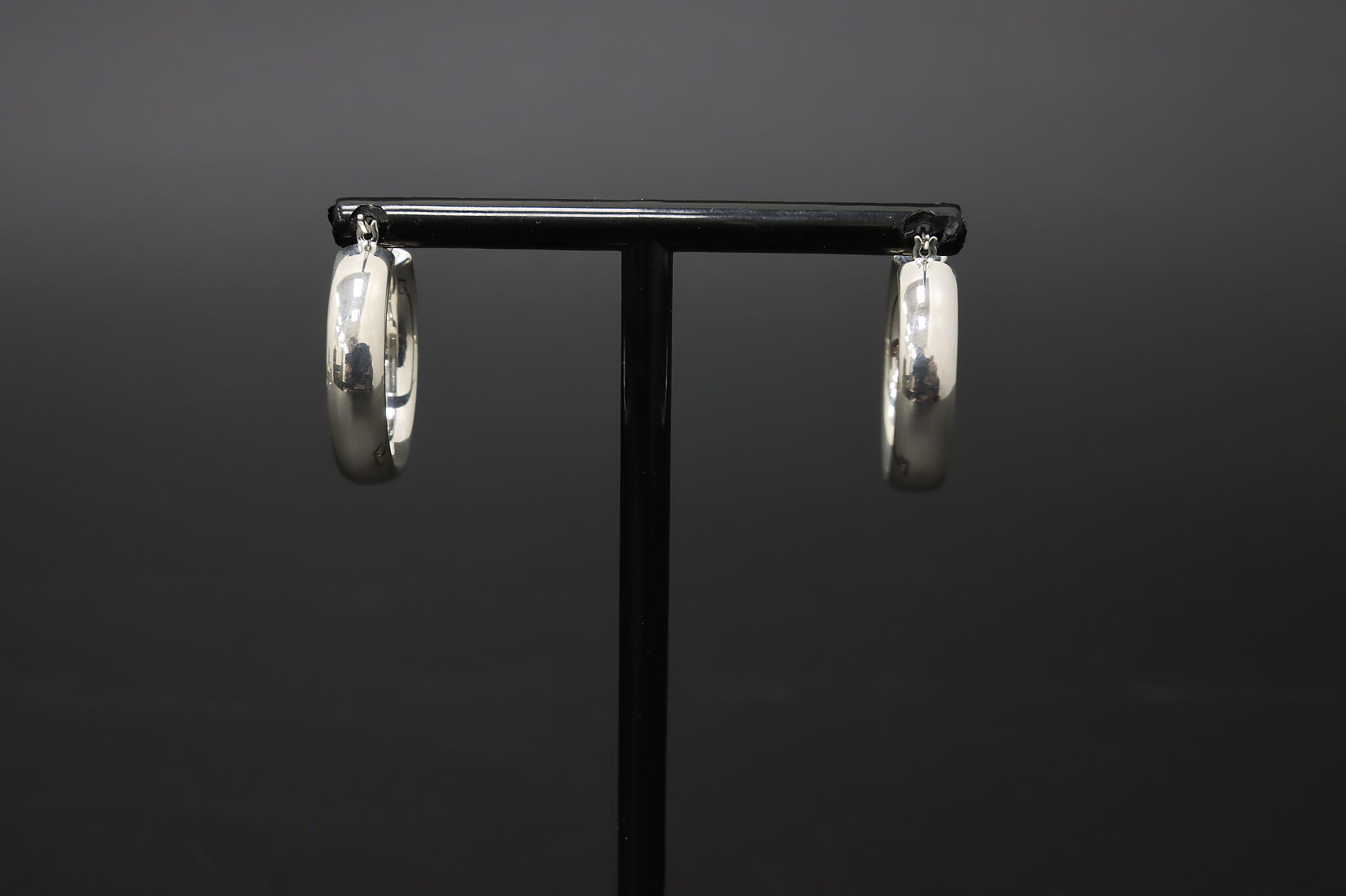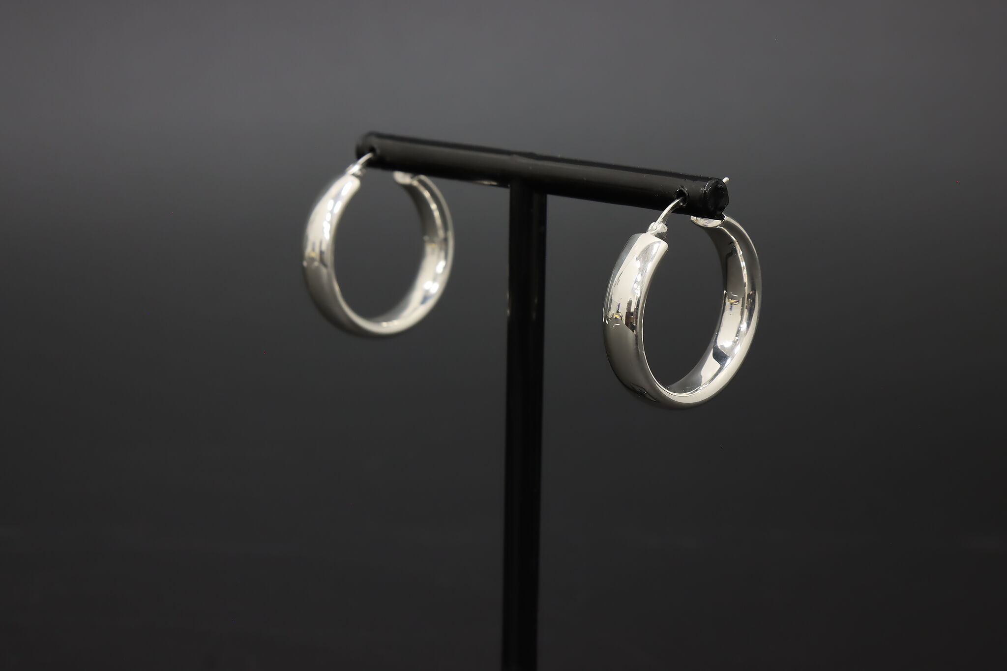 Classic sterling silver hoop earrings featuring a smooth, polished finish and a gently rounded profile for a clean, timeless look.