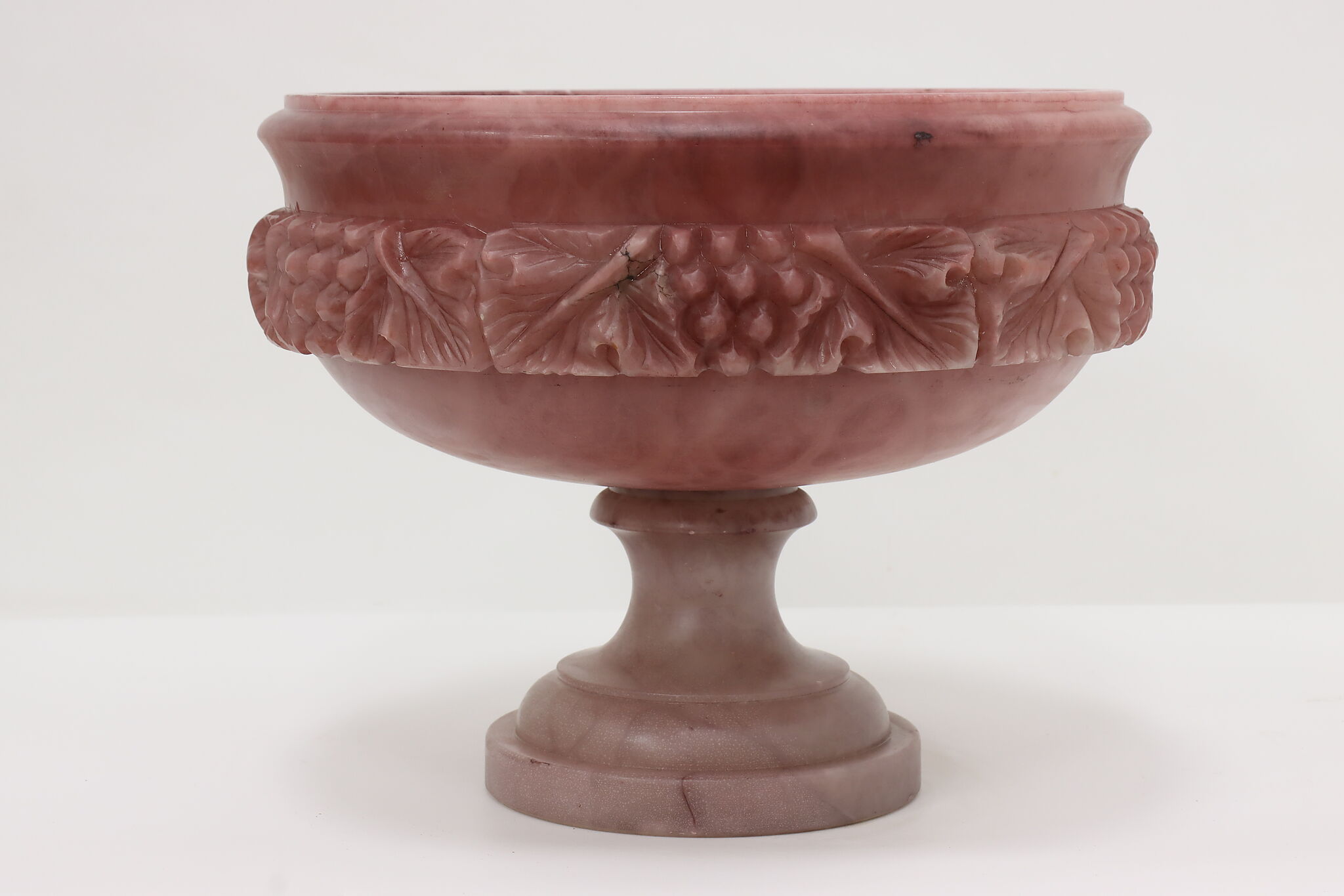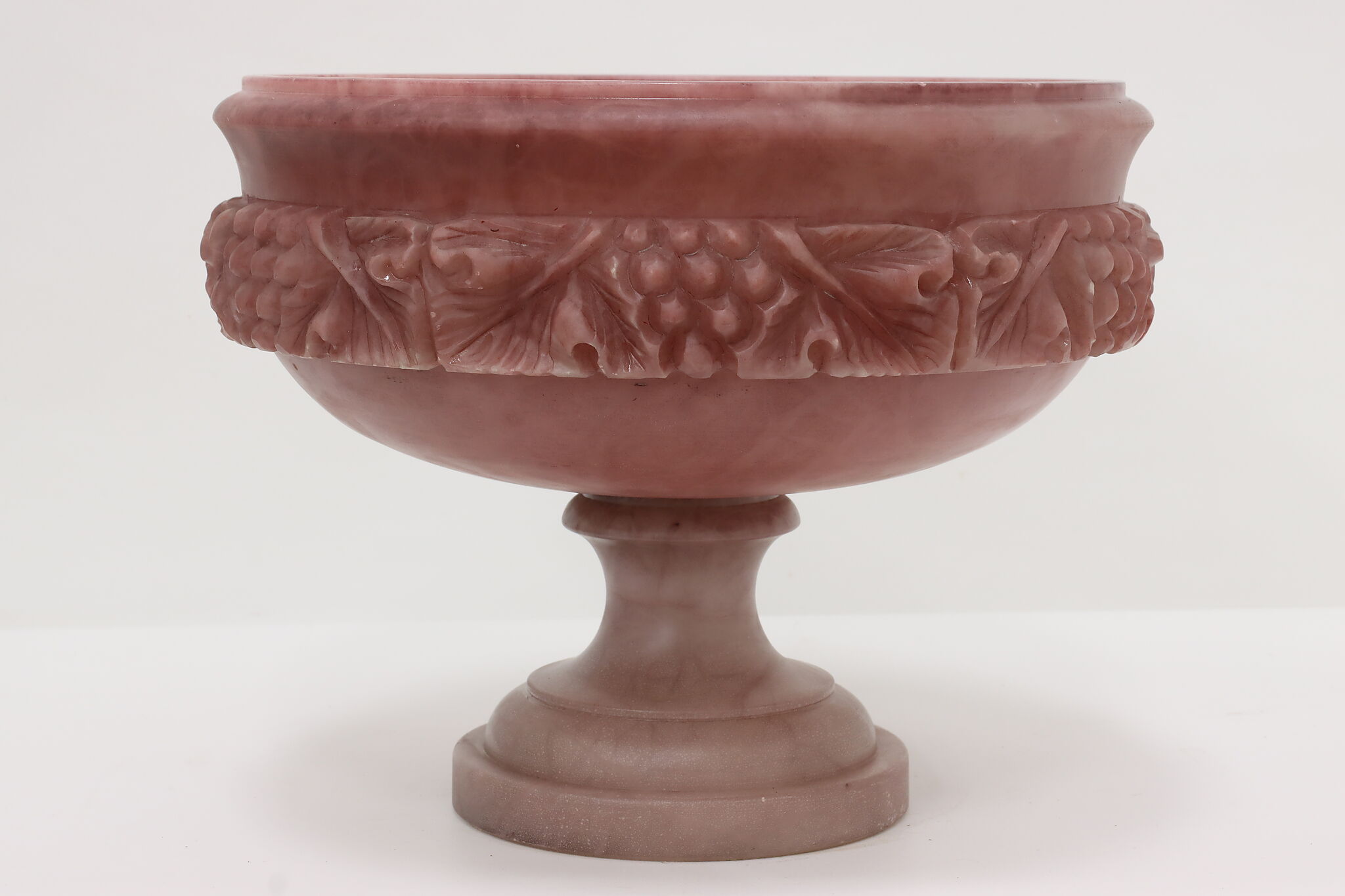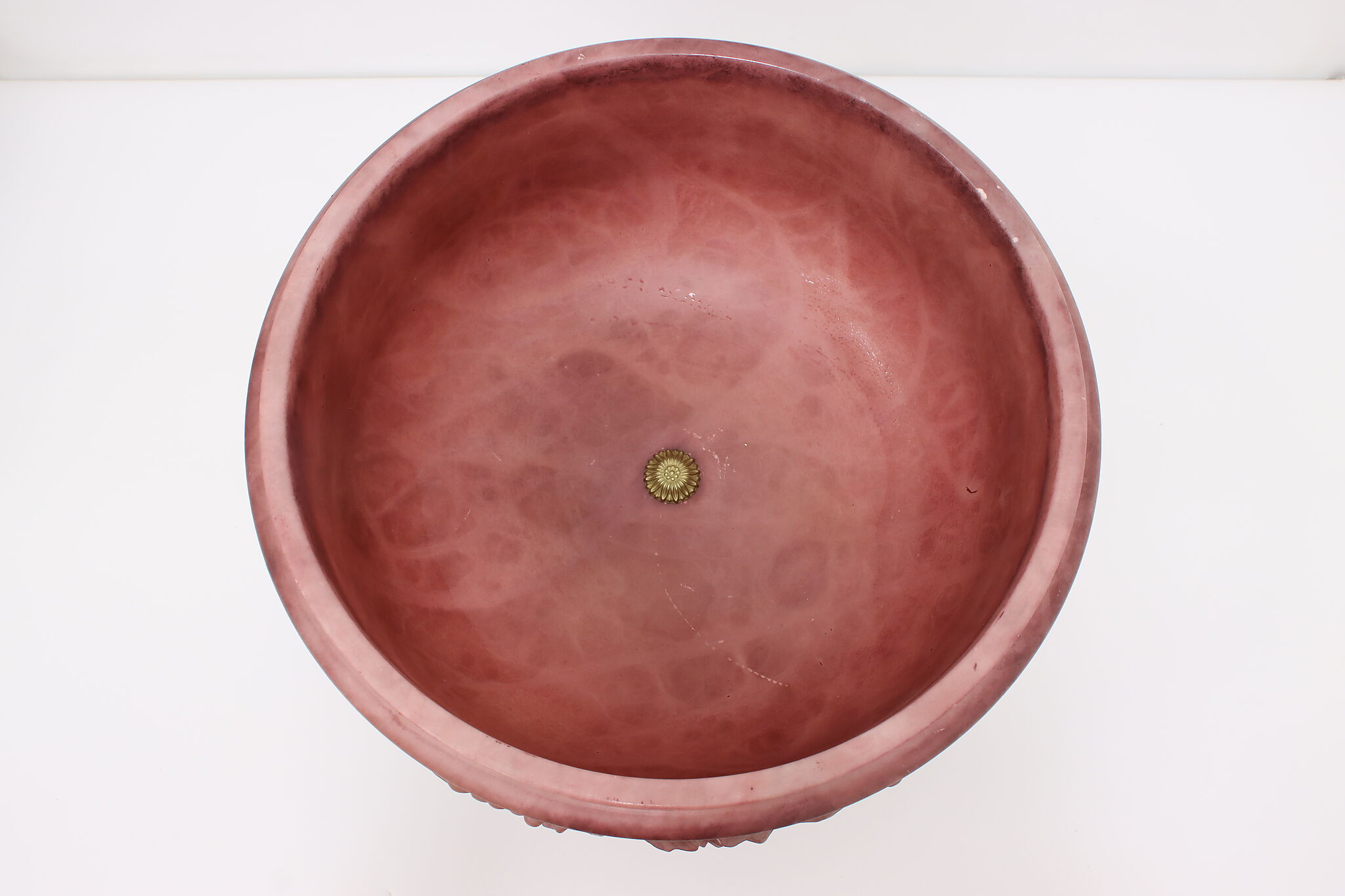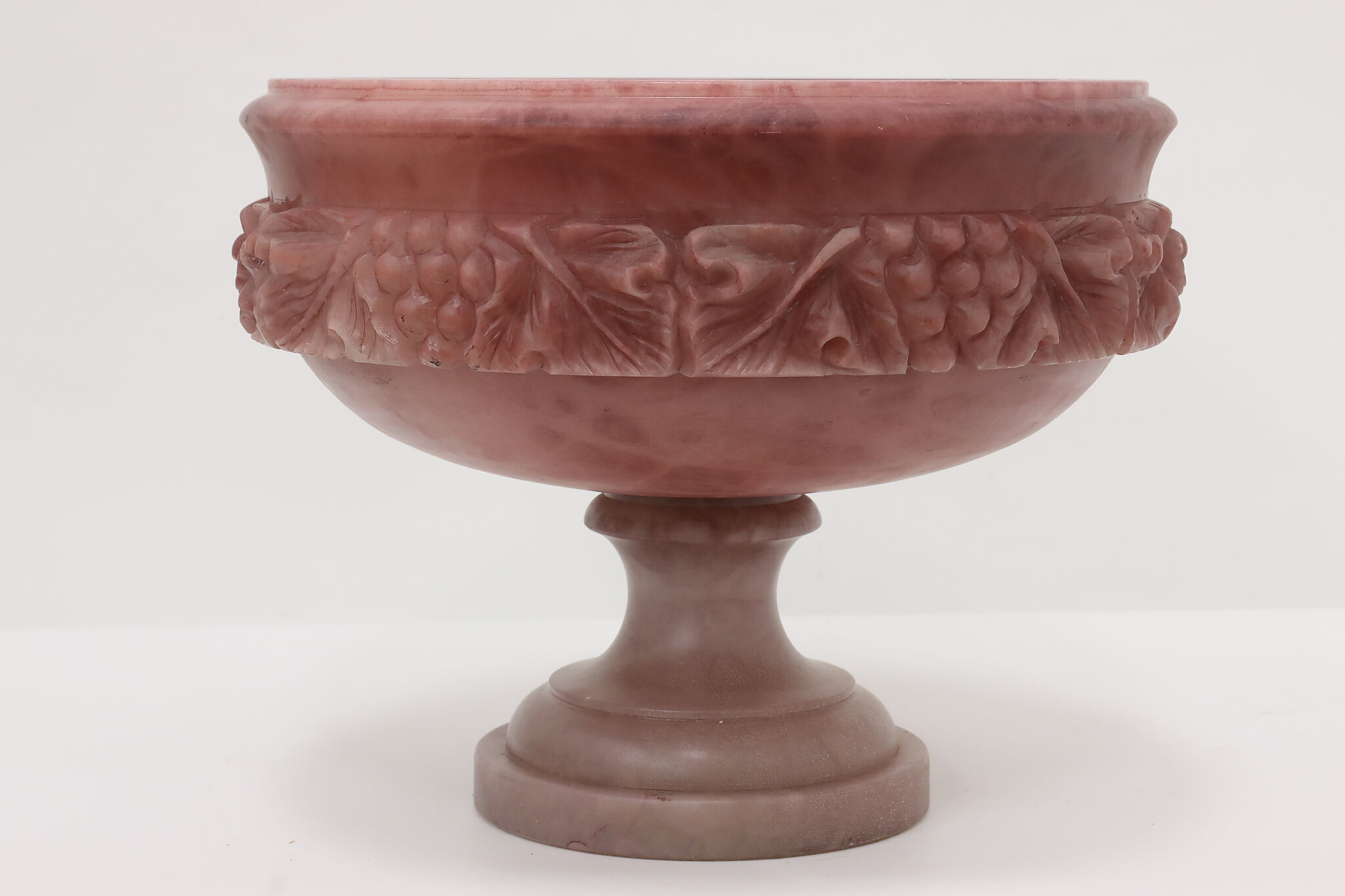 This classical design large centerpiece sculpture bowl is a beautiful amethyst color.