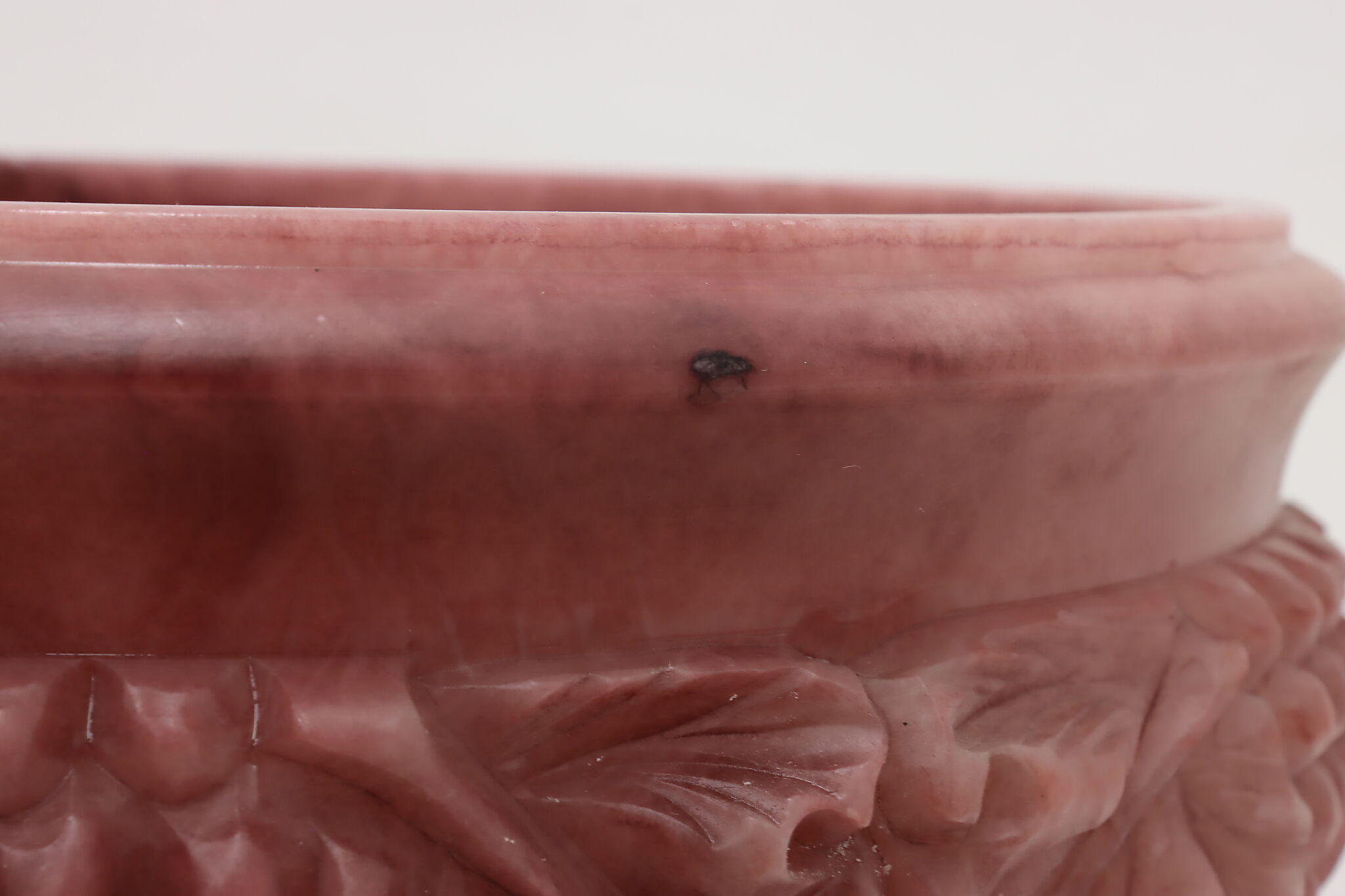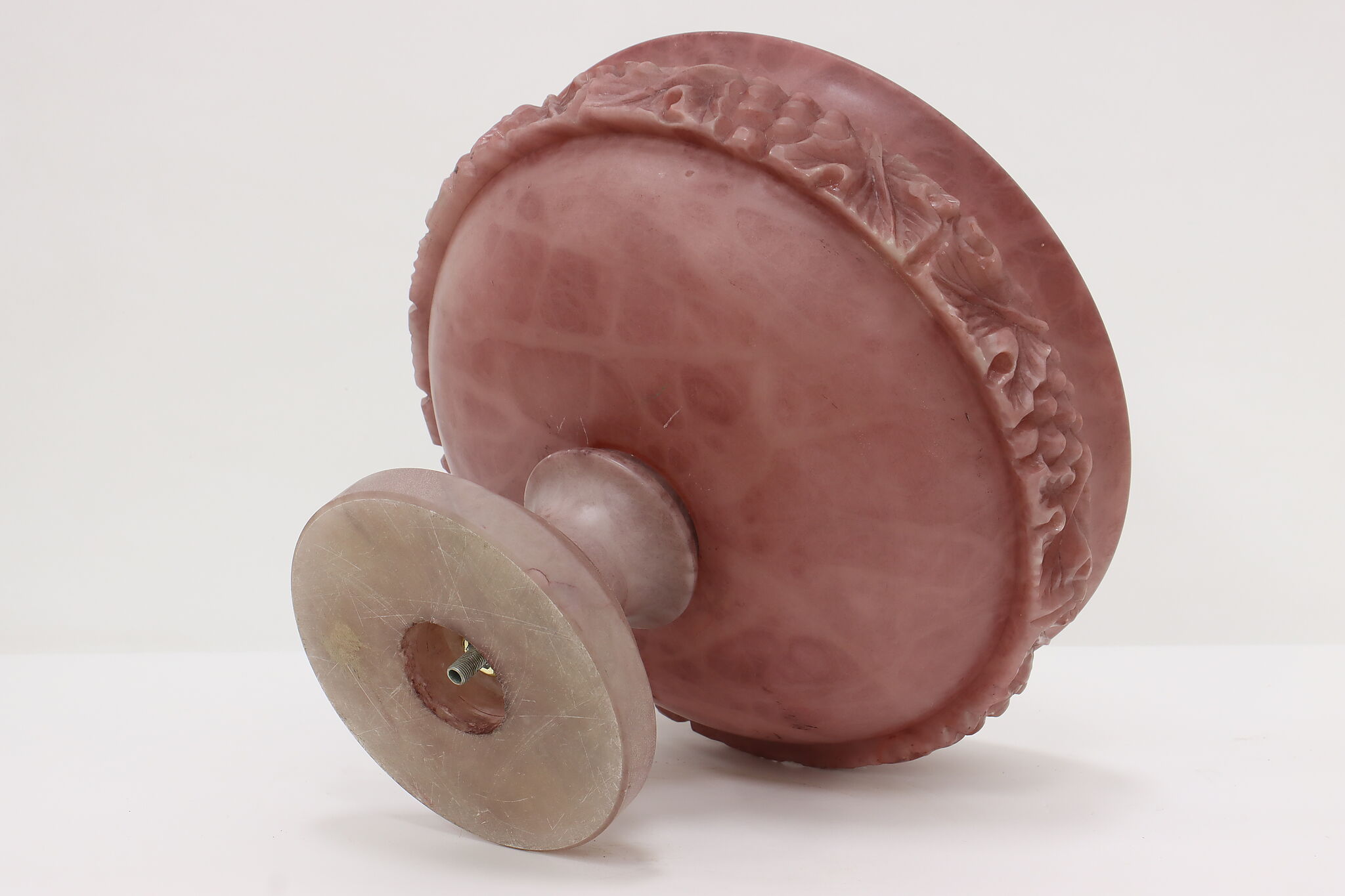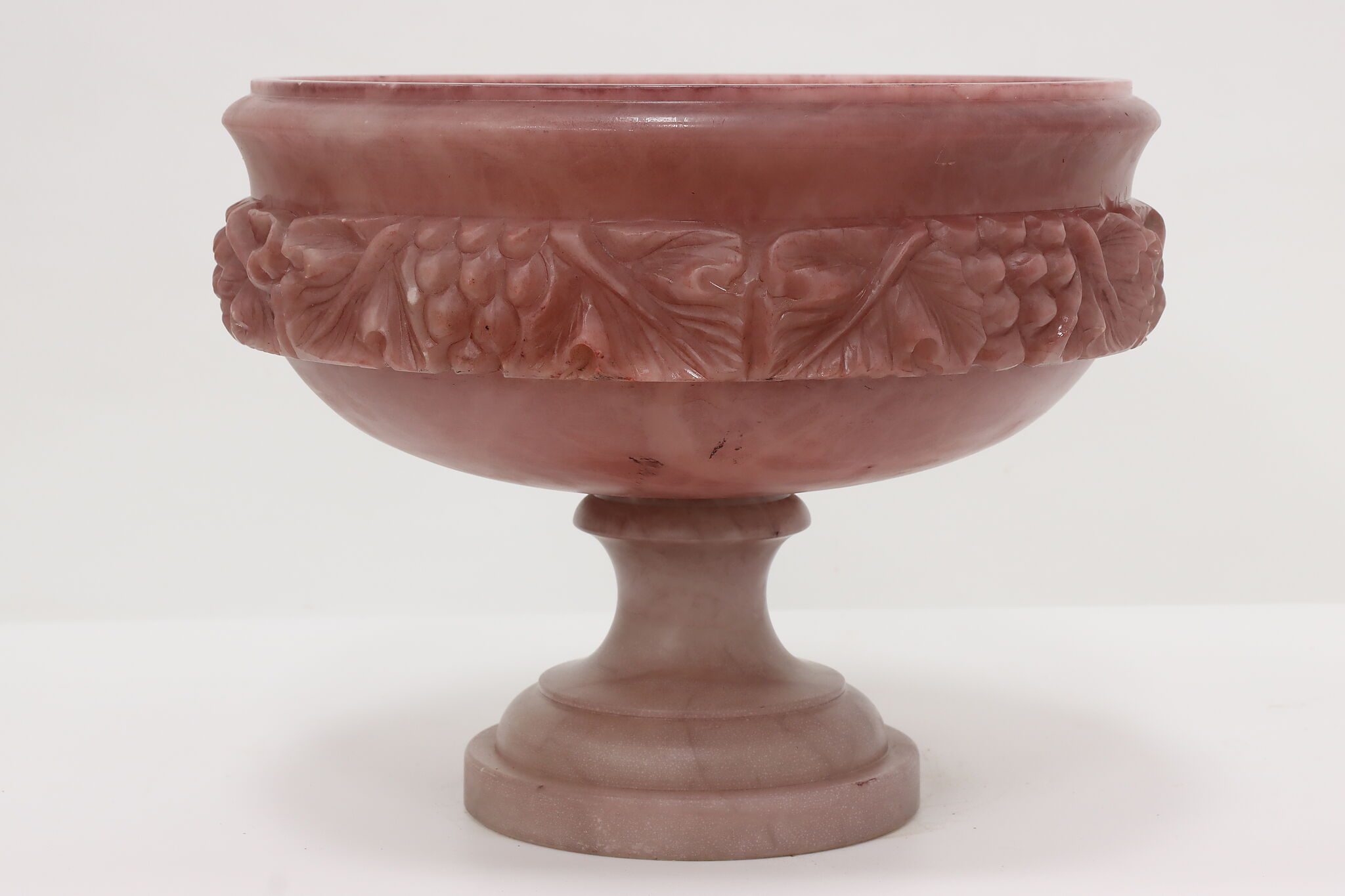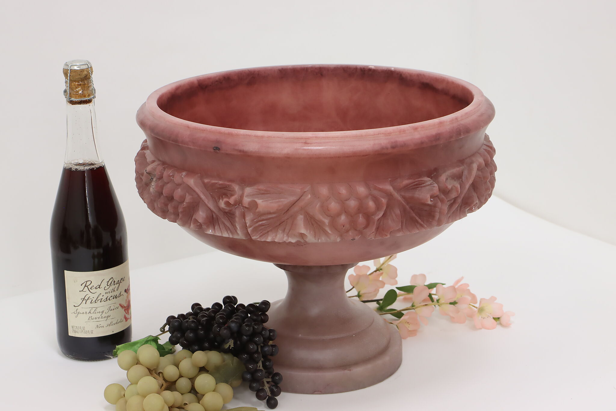 This classical design large centerpiece sculpture bowl is a beautiful amethyst color.
