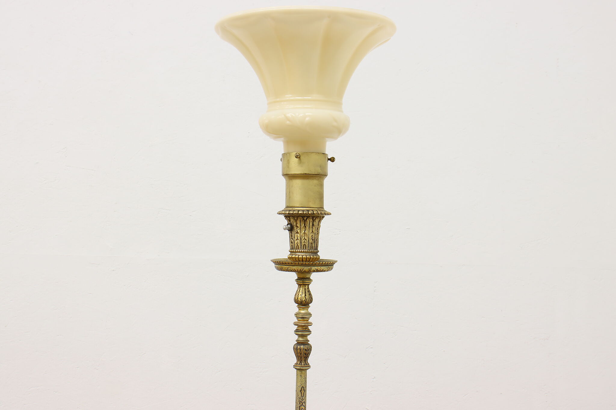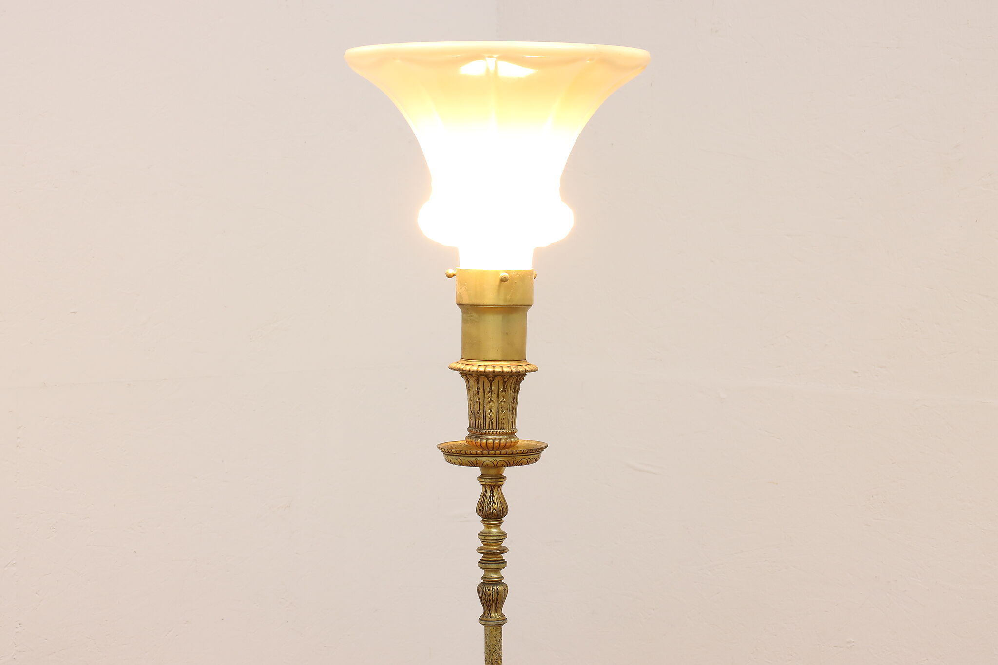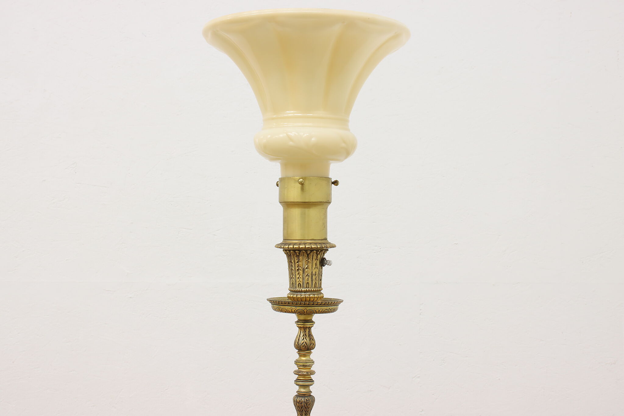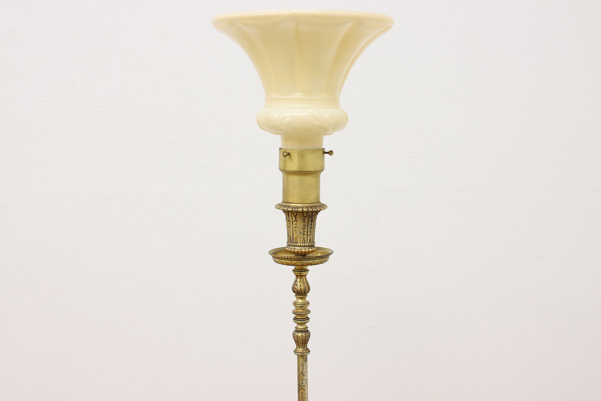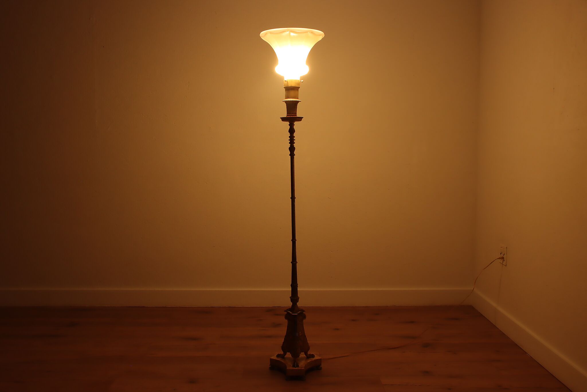 This classical design torchiere floor lamp will be an elegant addition to a living room or library.
