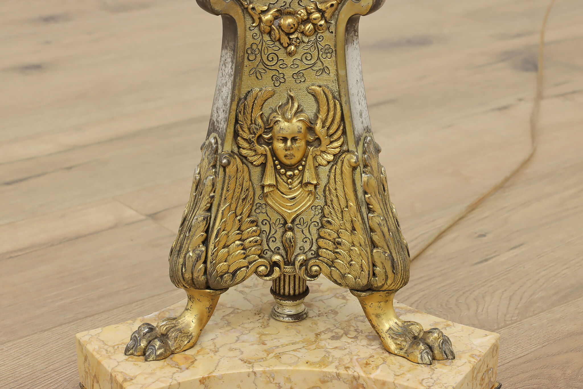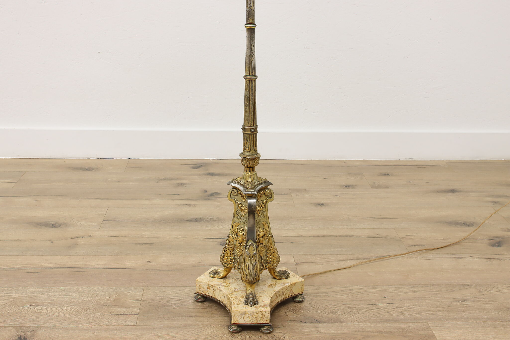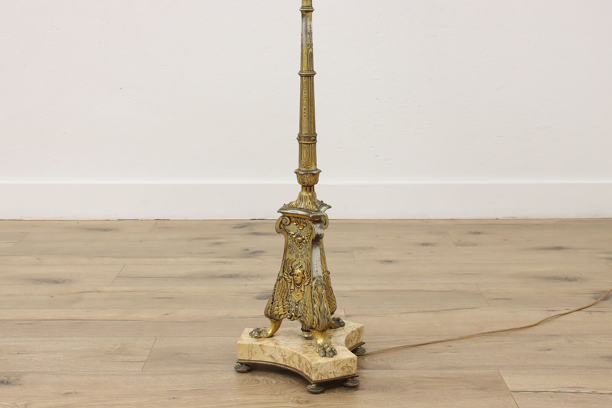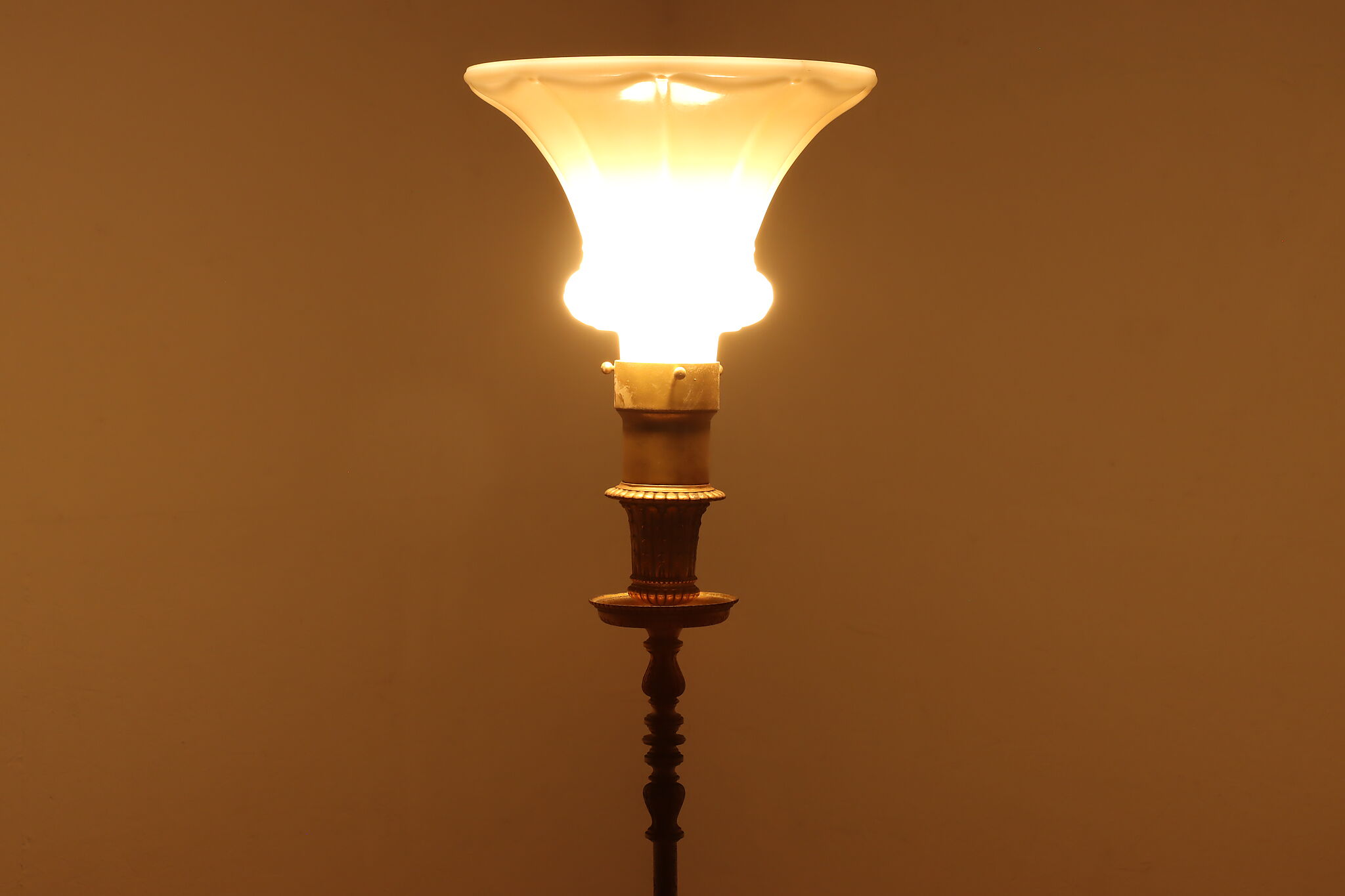 This classical design torchiere floor lamp will be an elegant addition to a living room or library.