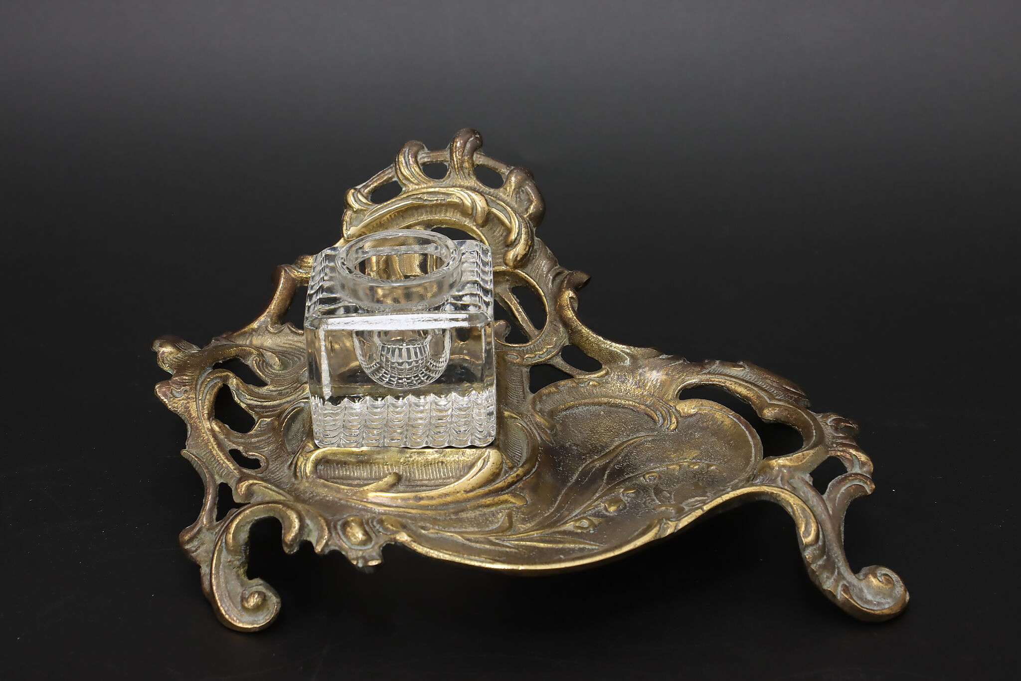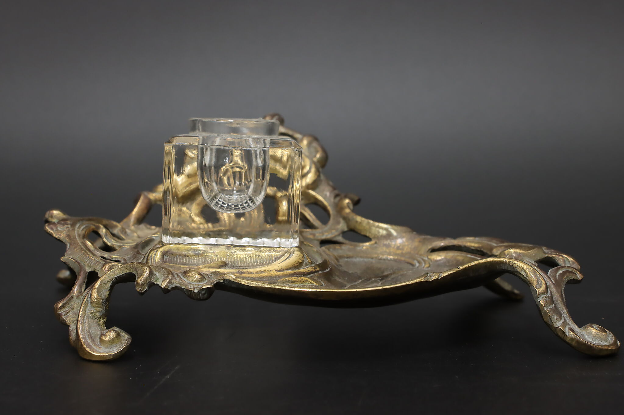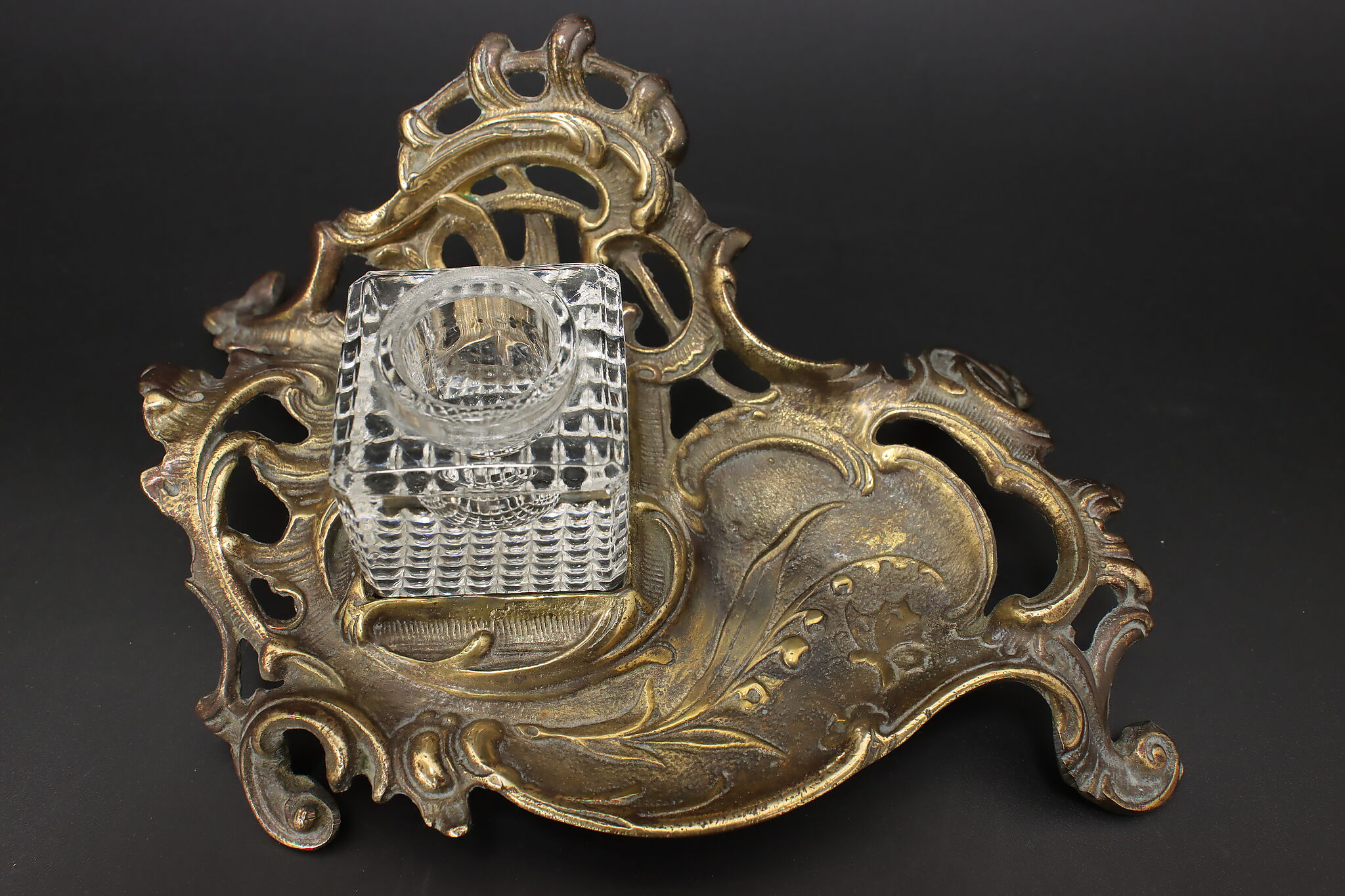 A fabulous classical design desktop inkwell has a charming butterfly and flower motif.