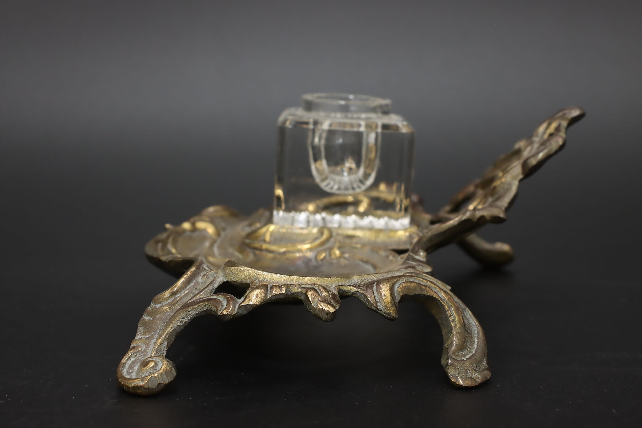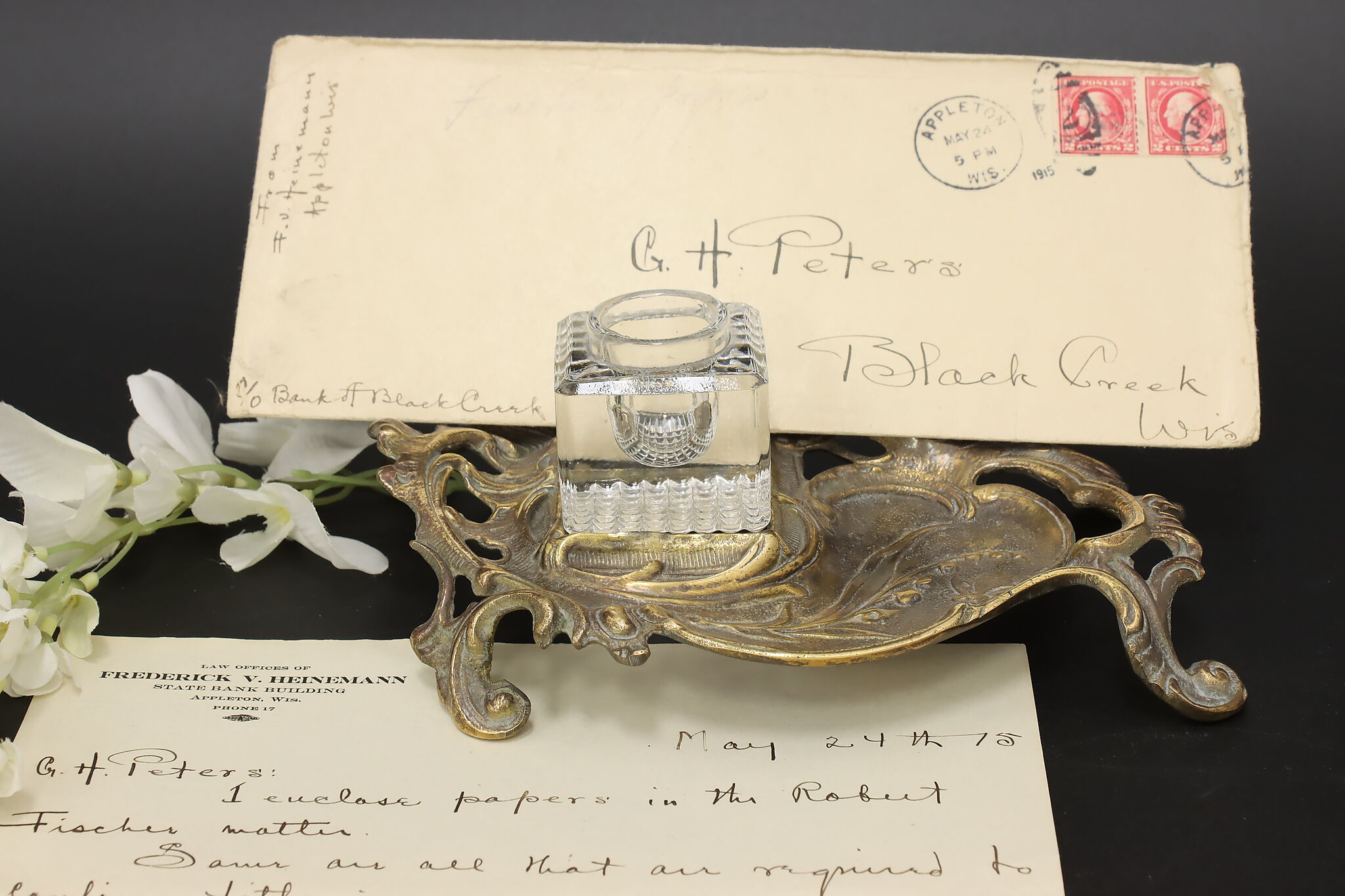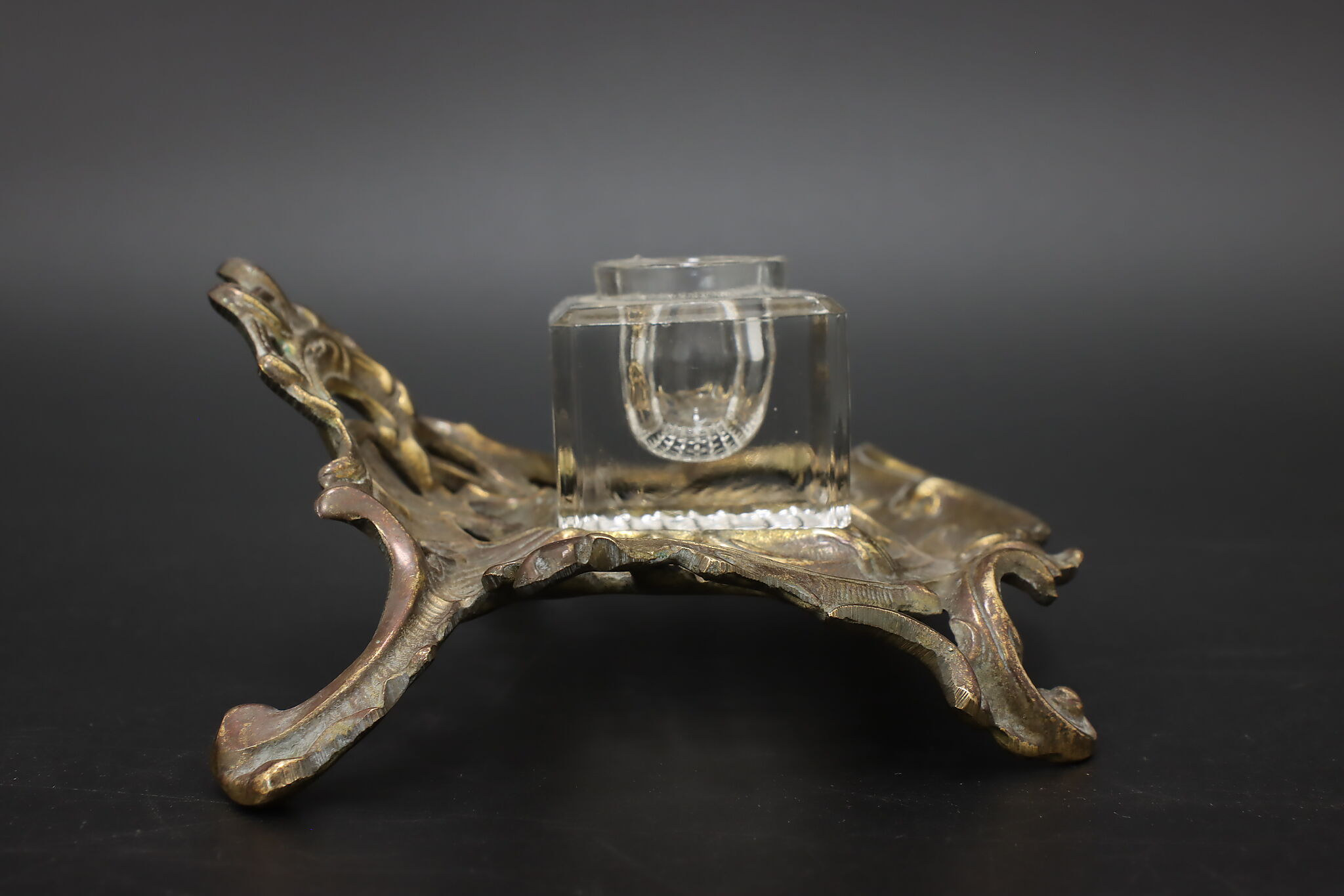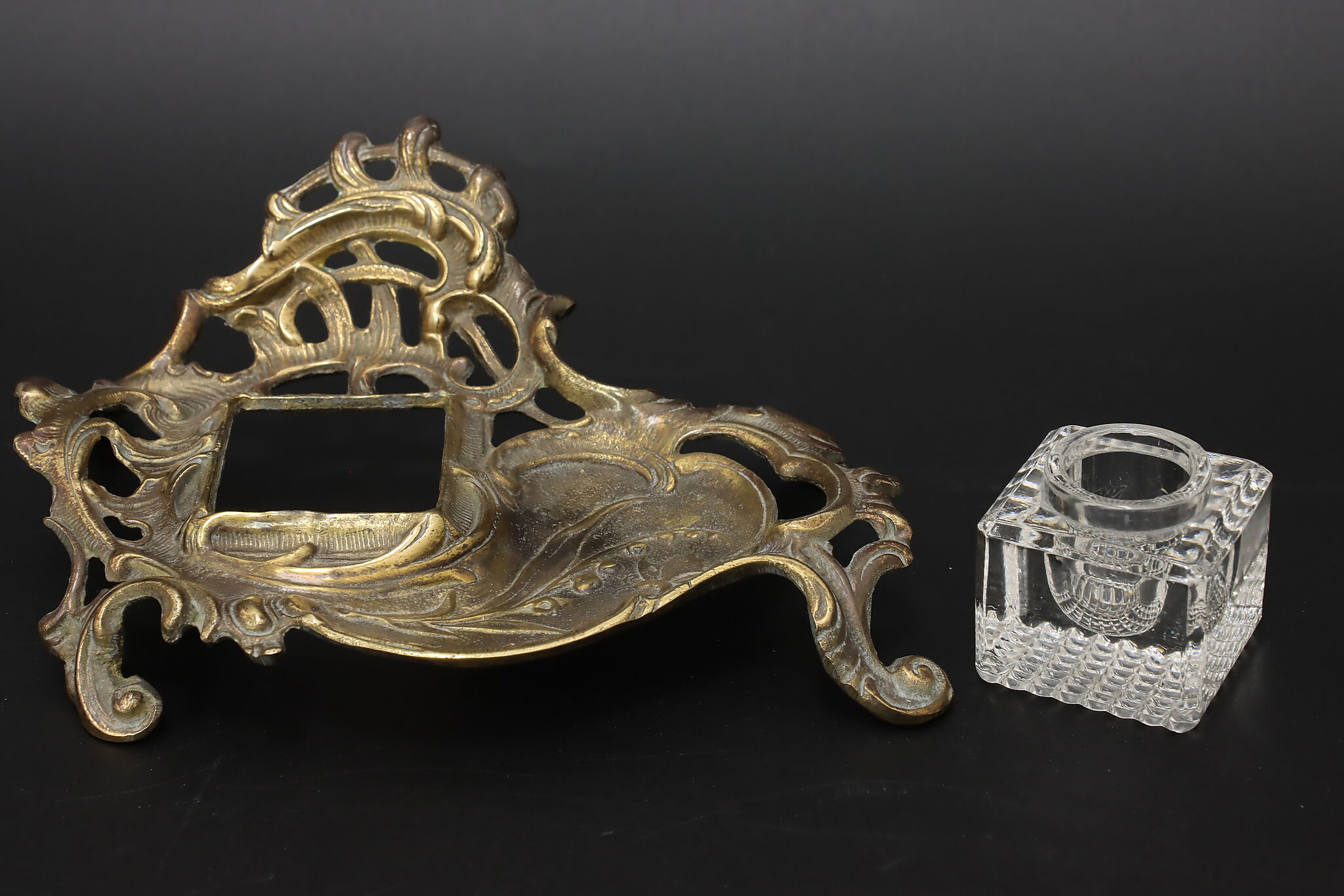 A fabulous classical design desktop inkwell has a charming butterfly and flower motif.