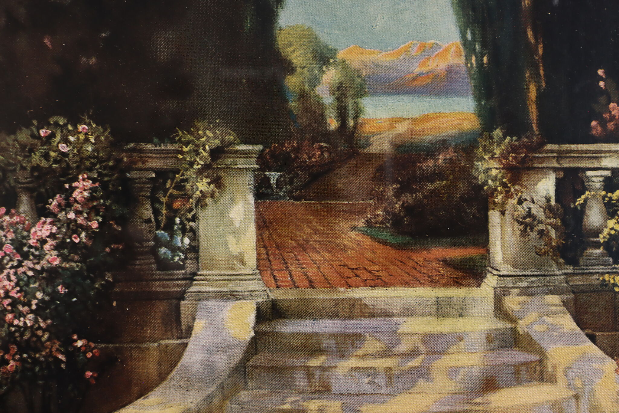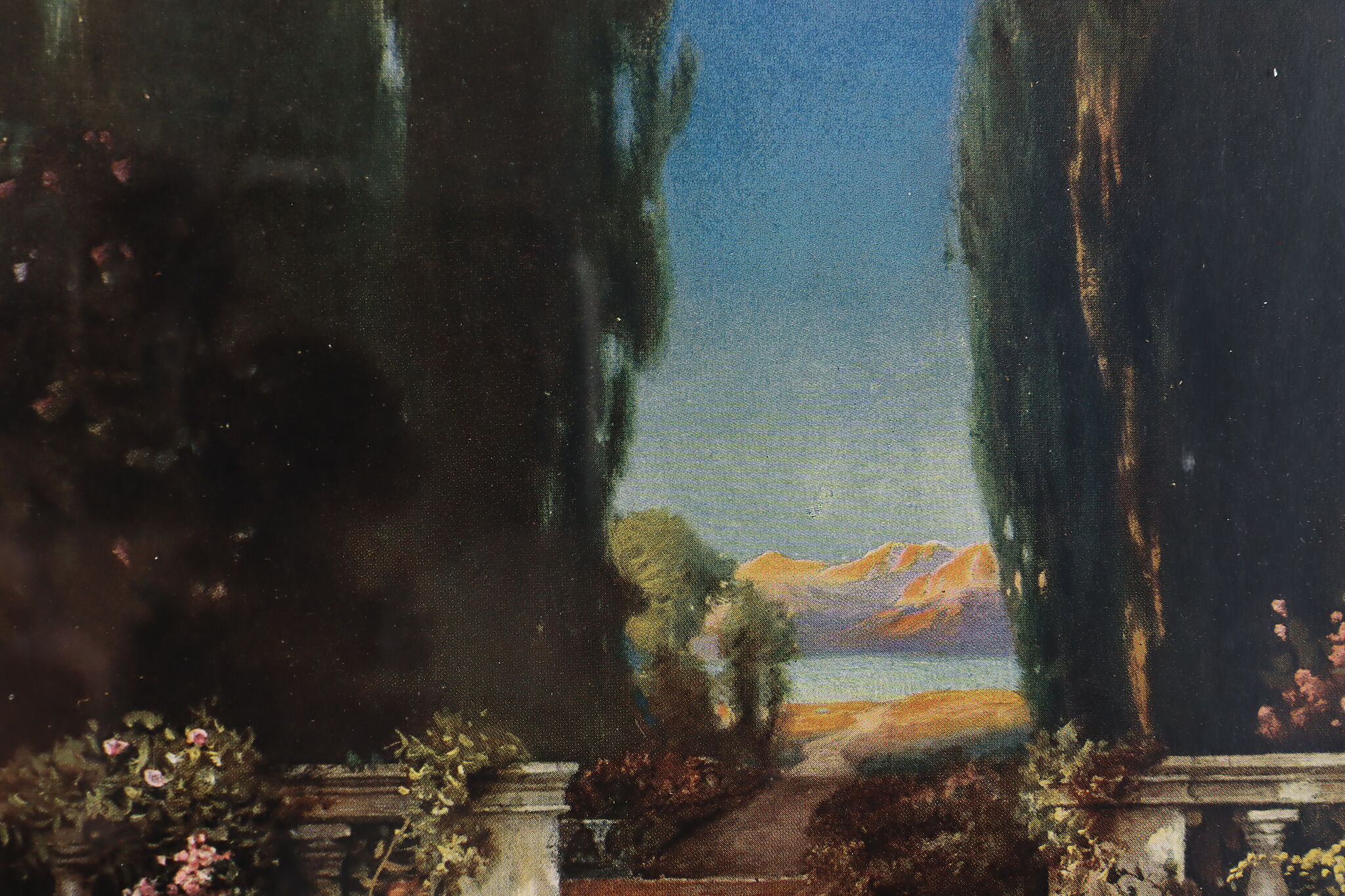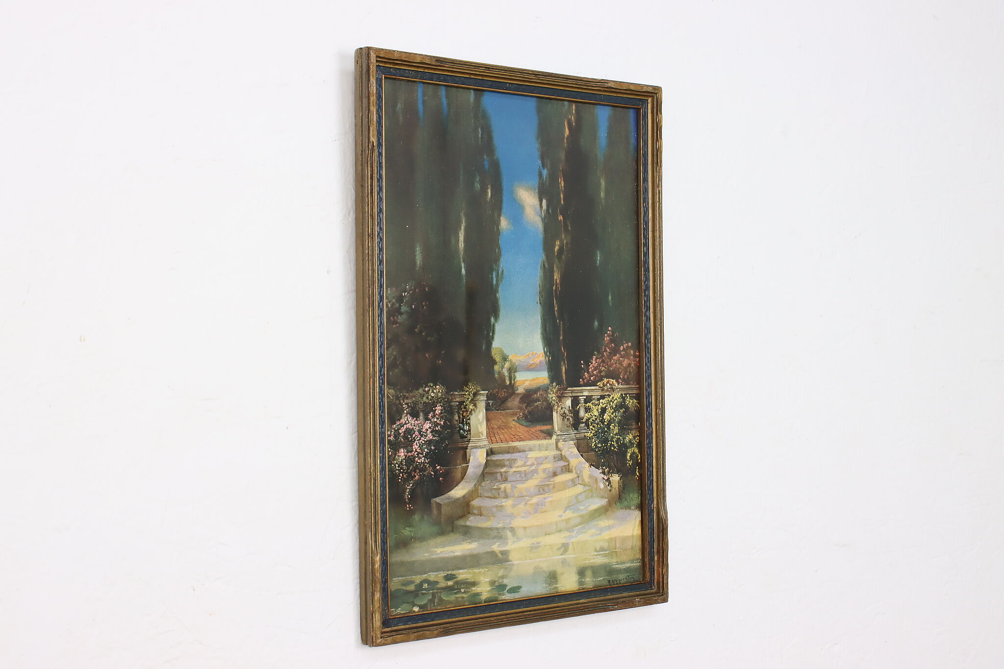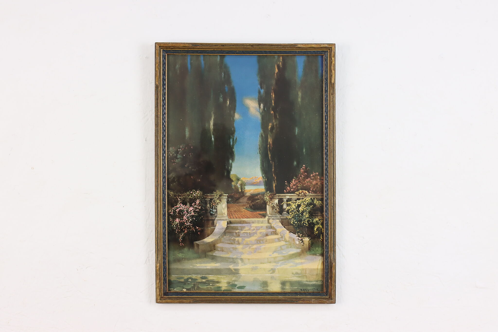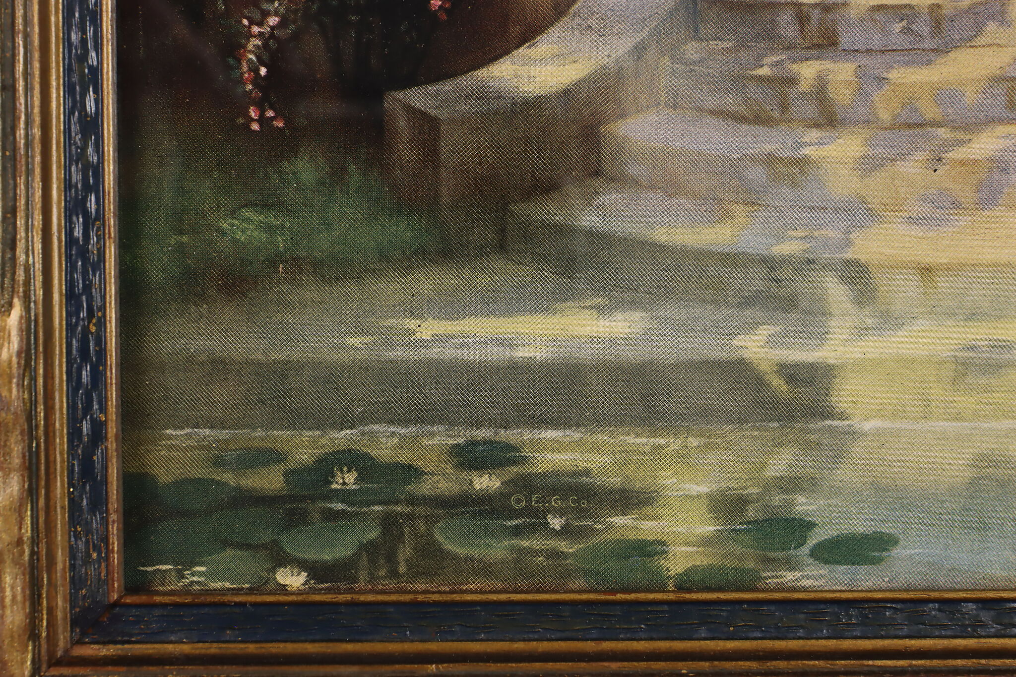 This Art Deco print transports viewers back to classical times where grand gardens and ponds were built to lounge around.