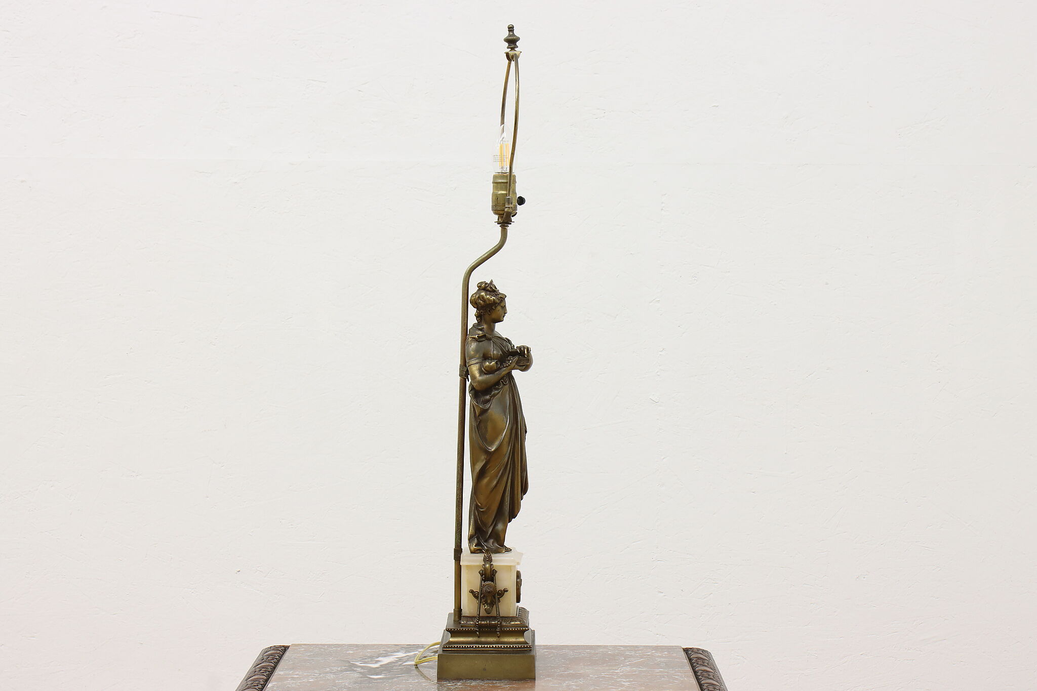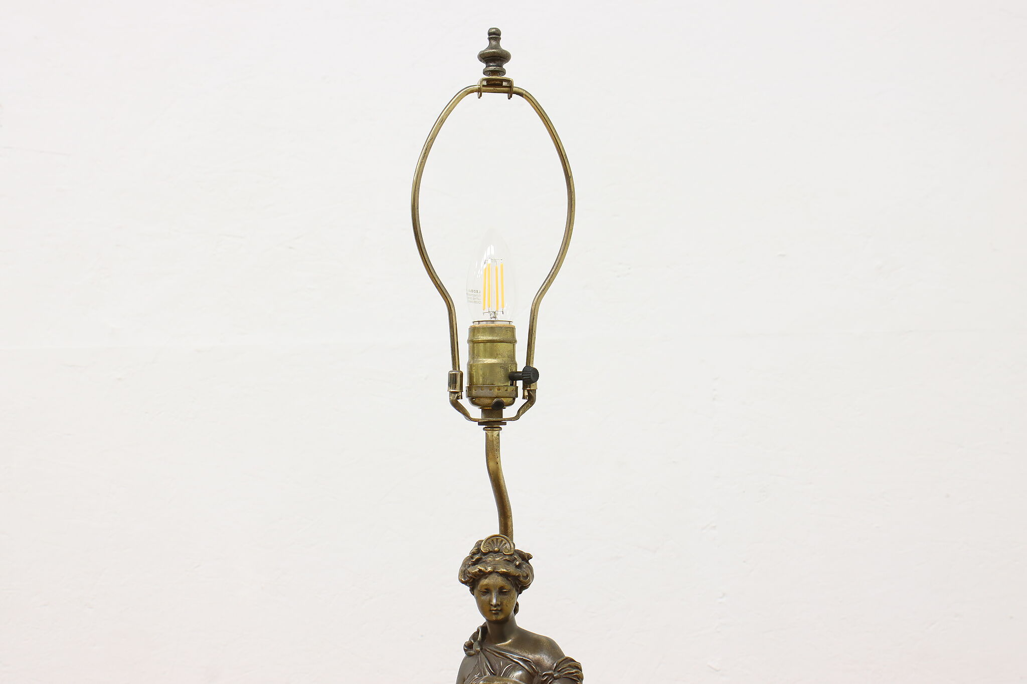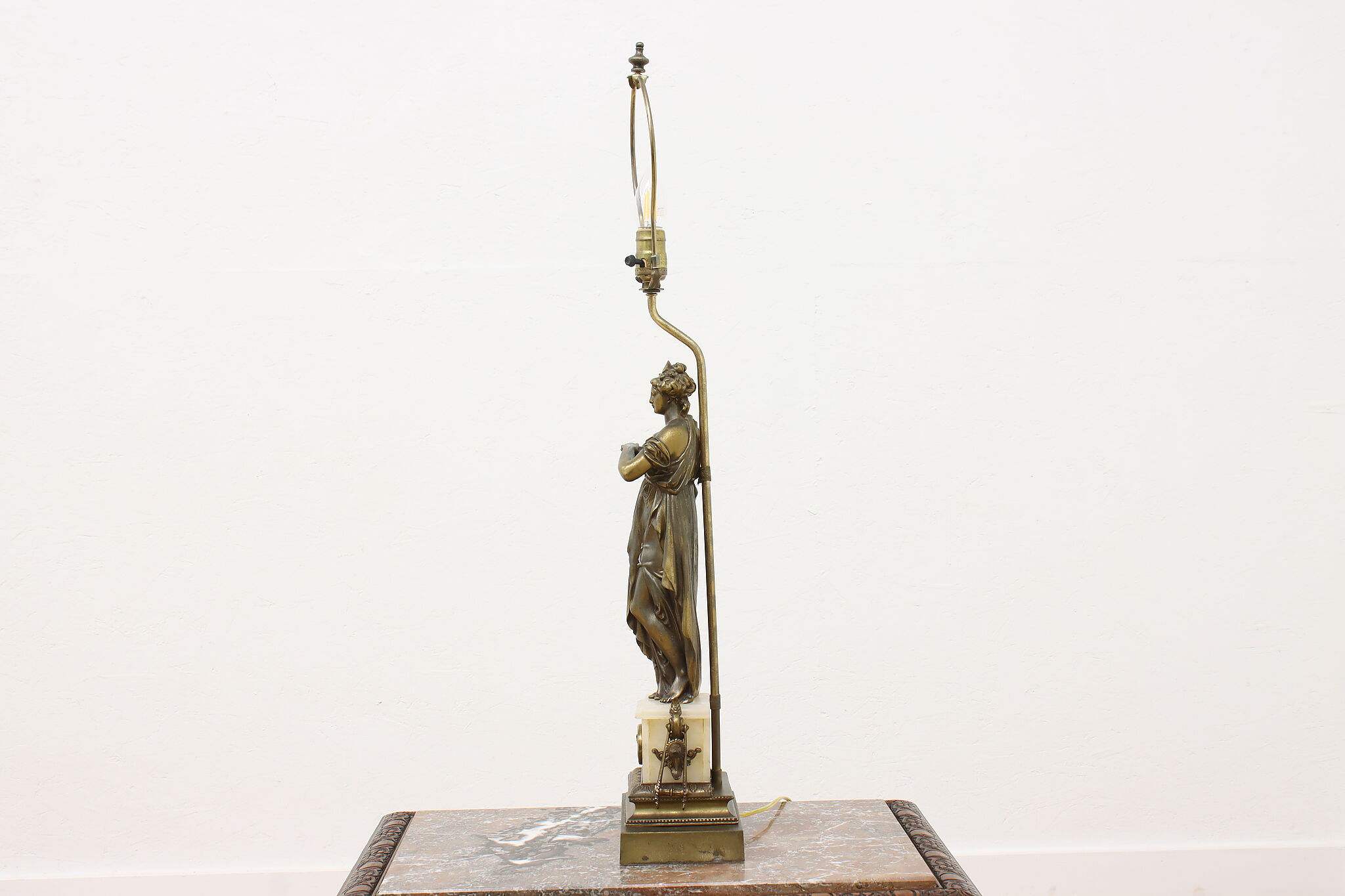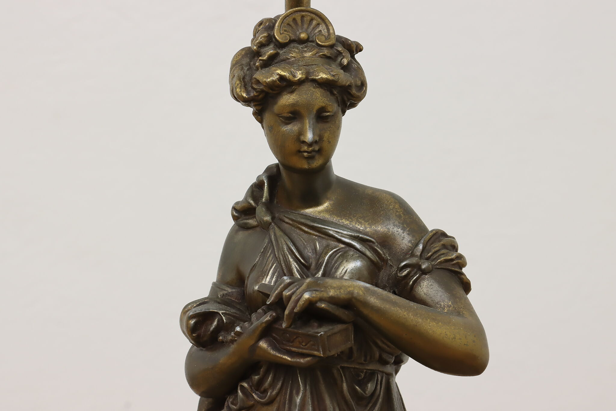 This classical design table or desk lamp has a gorgeous sculpture of a Greek woman, who we believe may be the Greek woman, Pandora, and her infamous box.