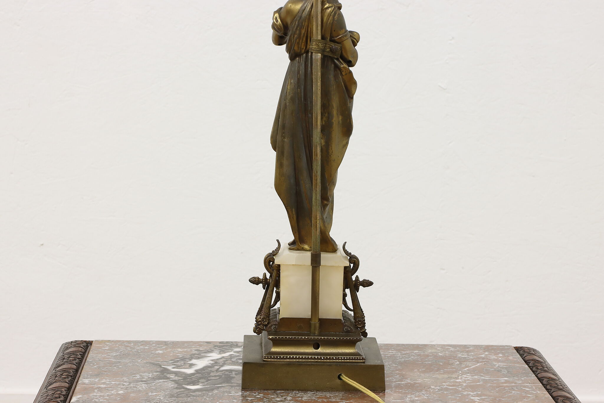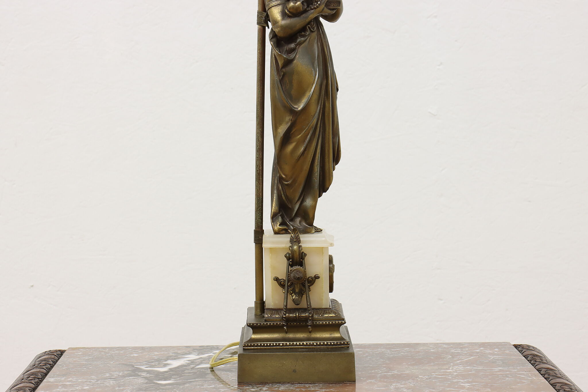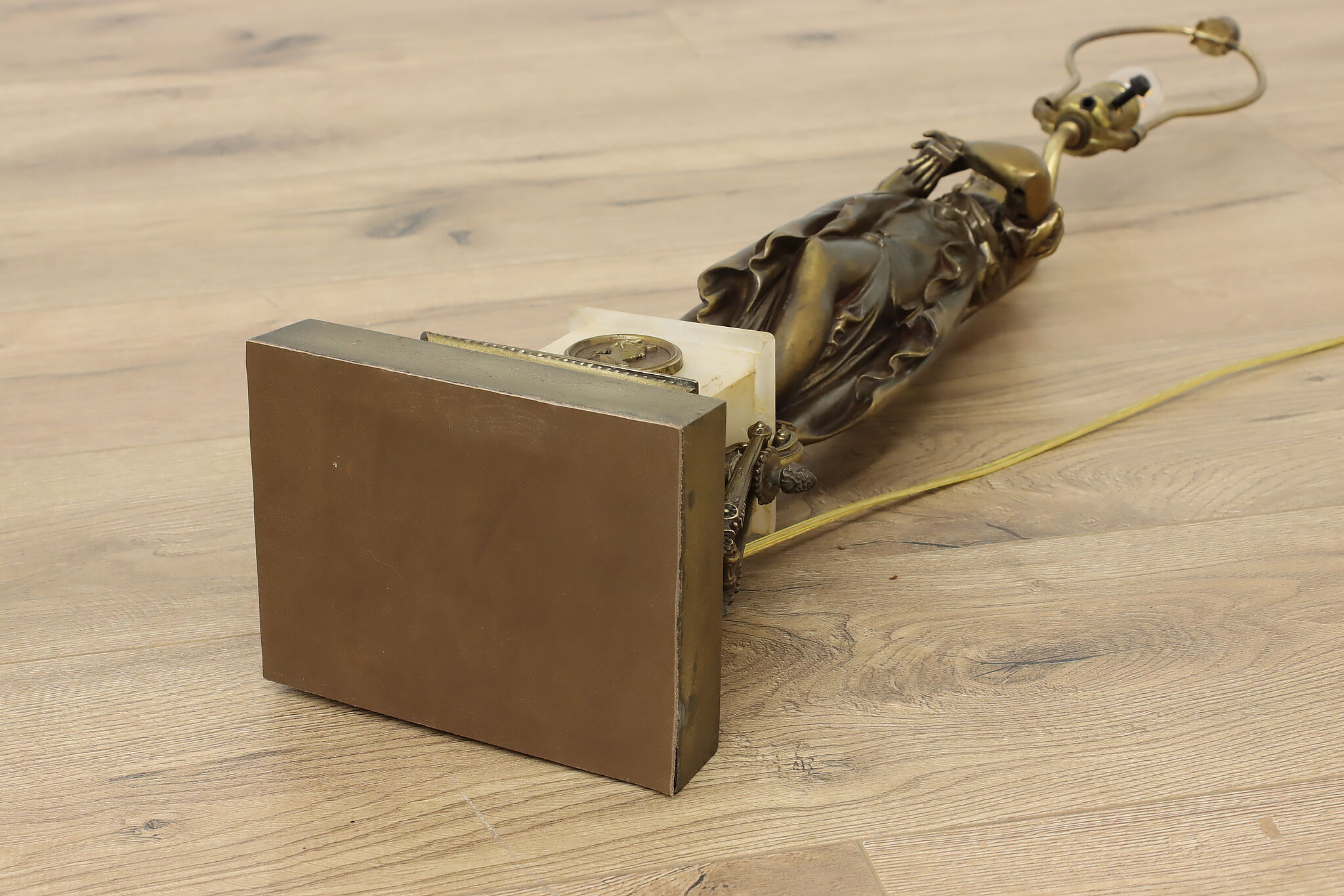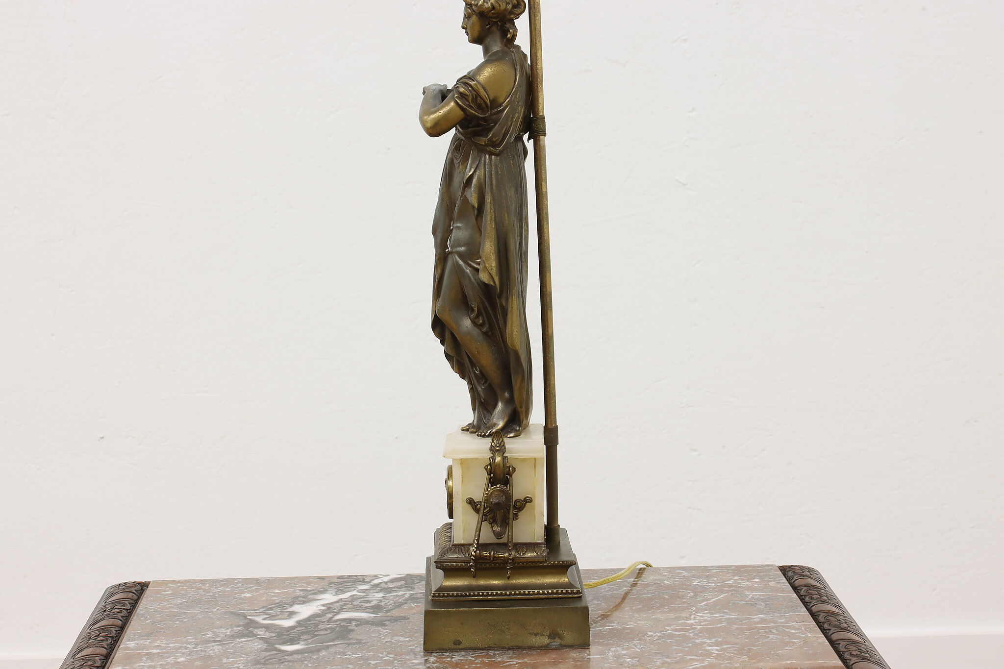 This classical design table or desk lamp has a gorgeous sculpture of a Greek woman, who we believe may be the Greek woman, Pandora, and her infamous box.