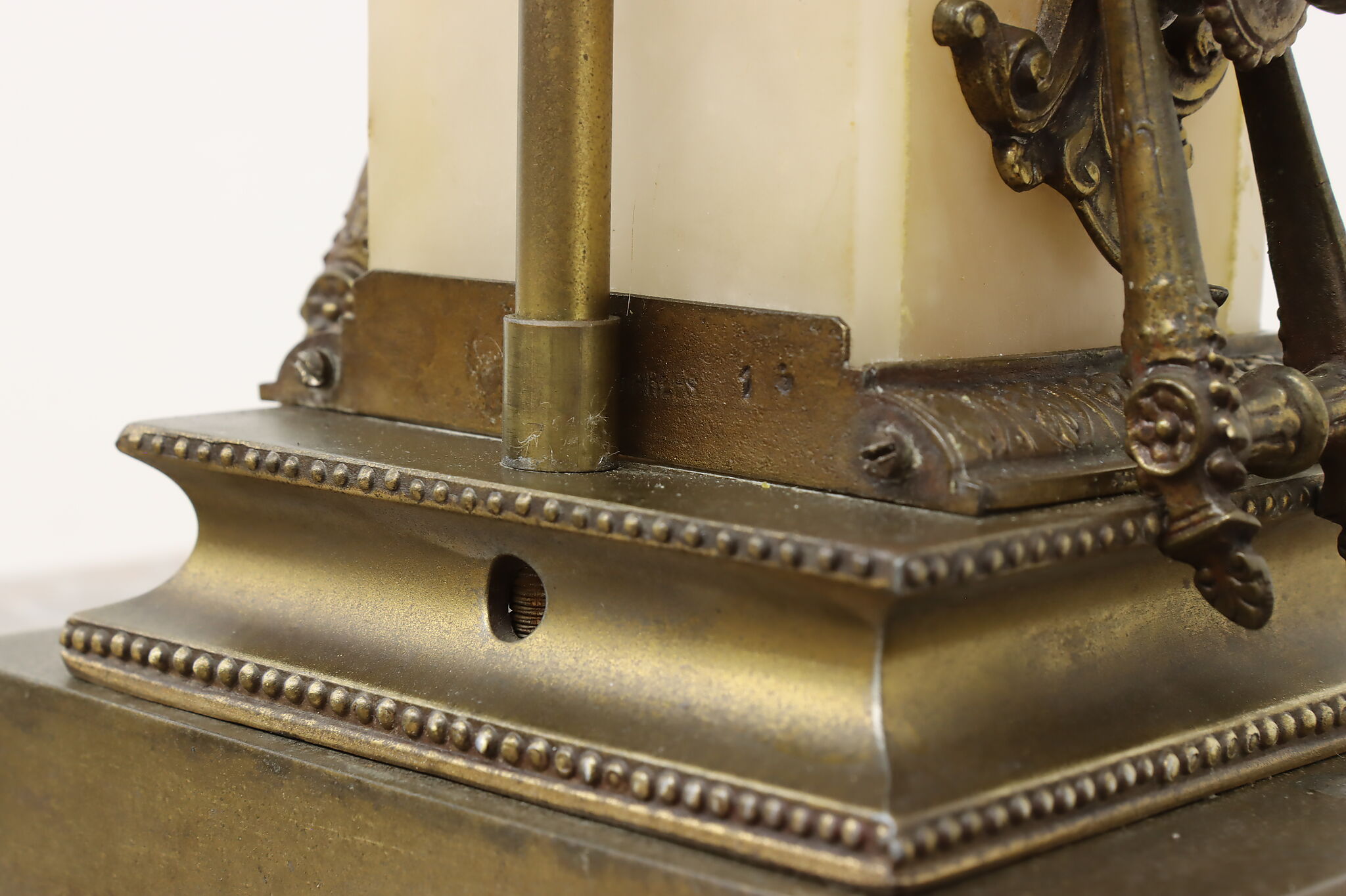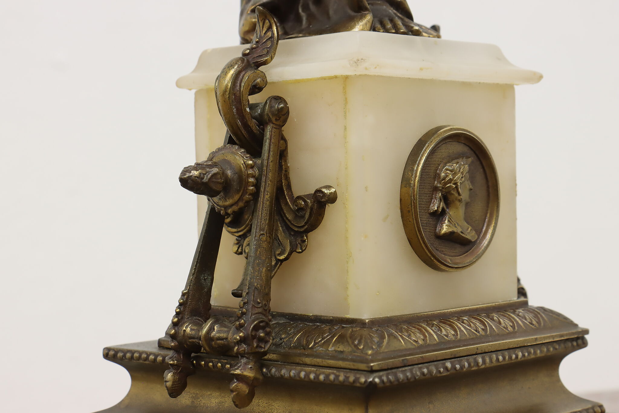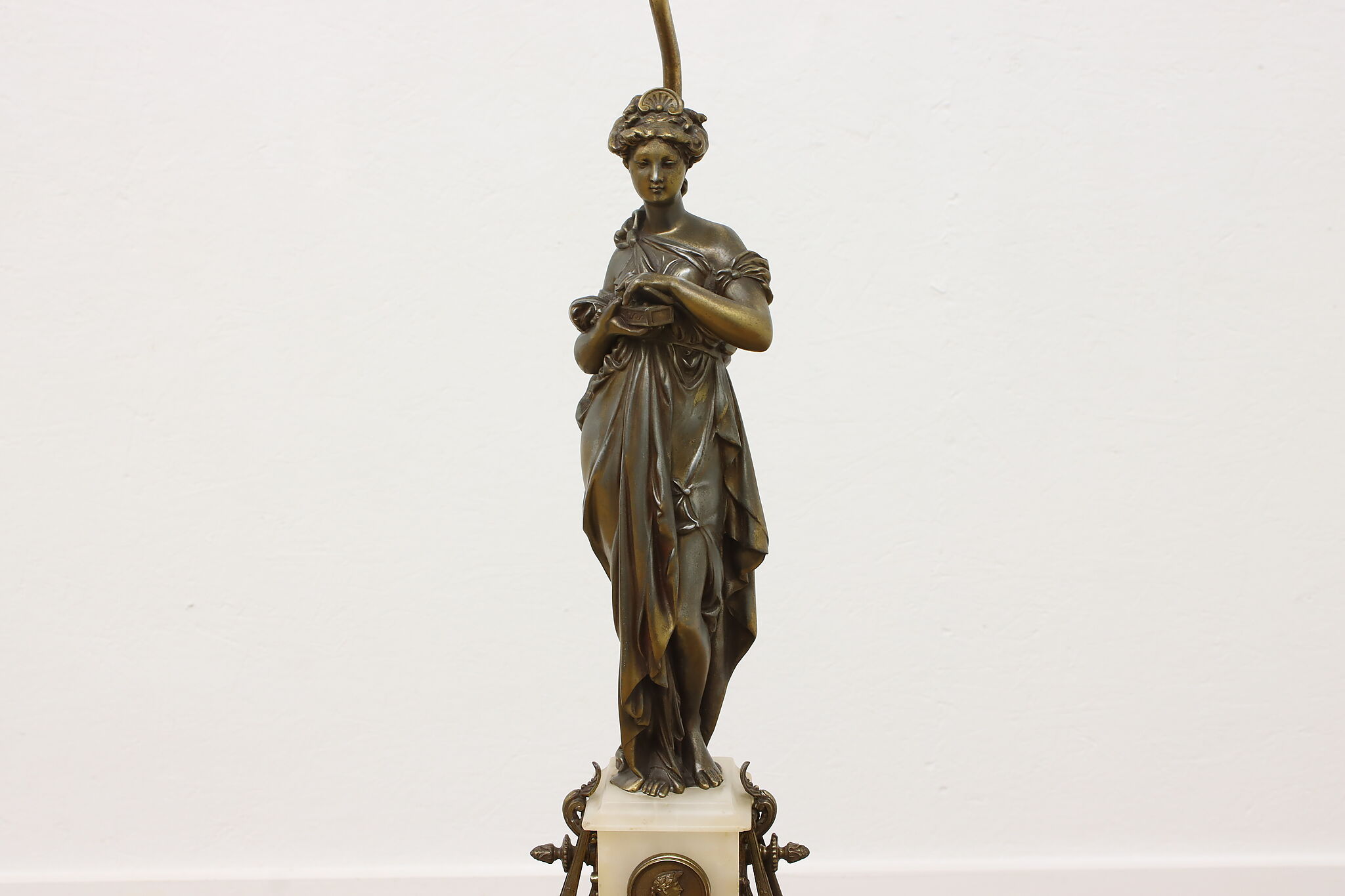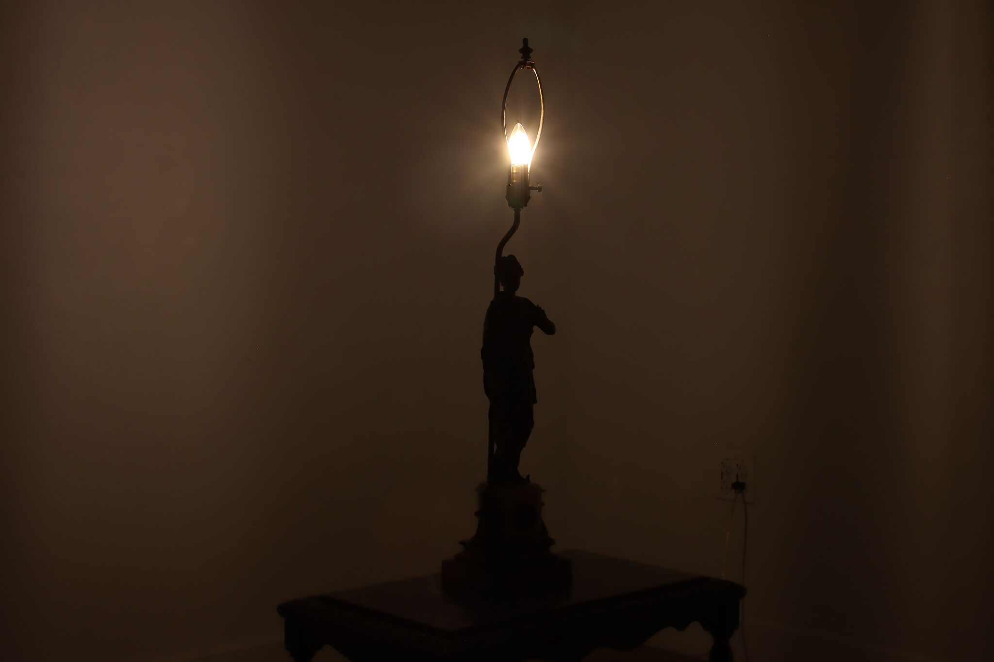 This classical design table or desk lamp has a gorgeous sculpture of a Greek woman, who we believe may be the Greek woman, Pandora, and her infamous box.