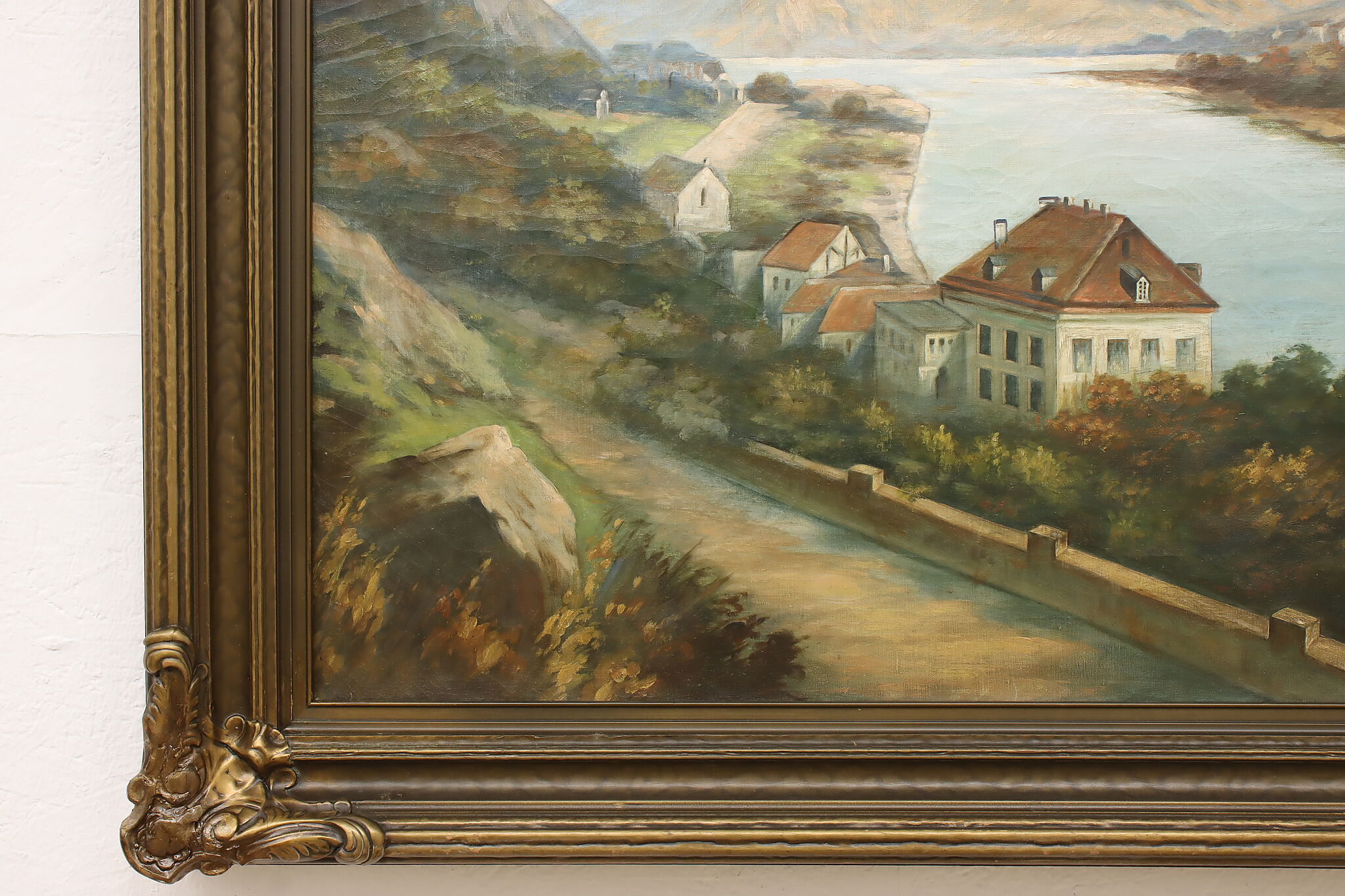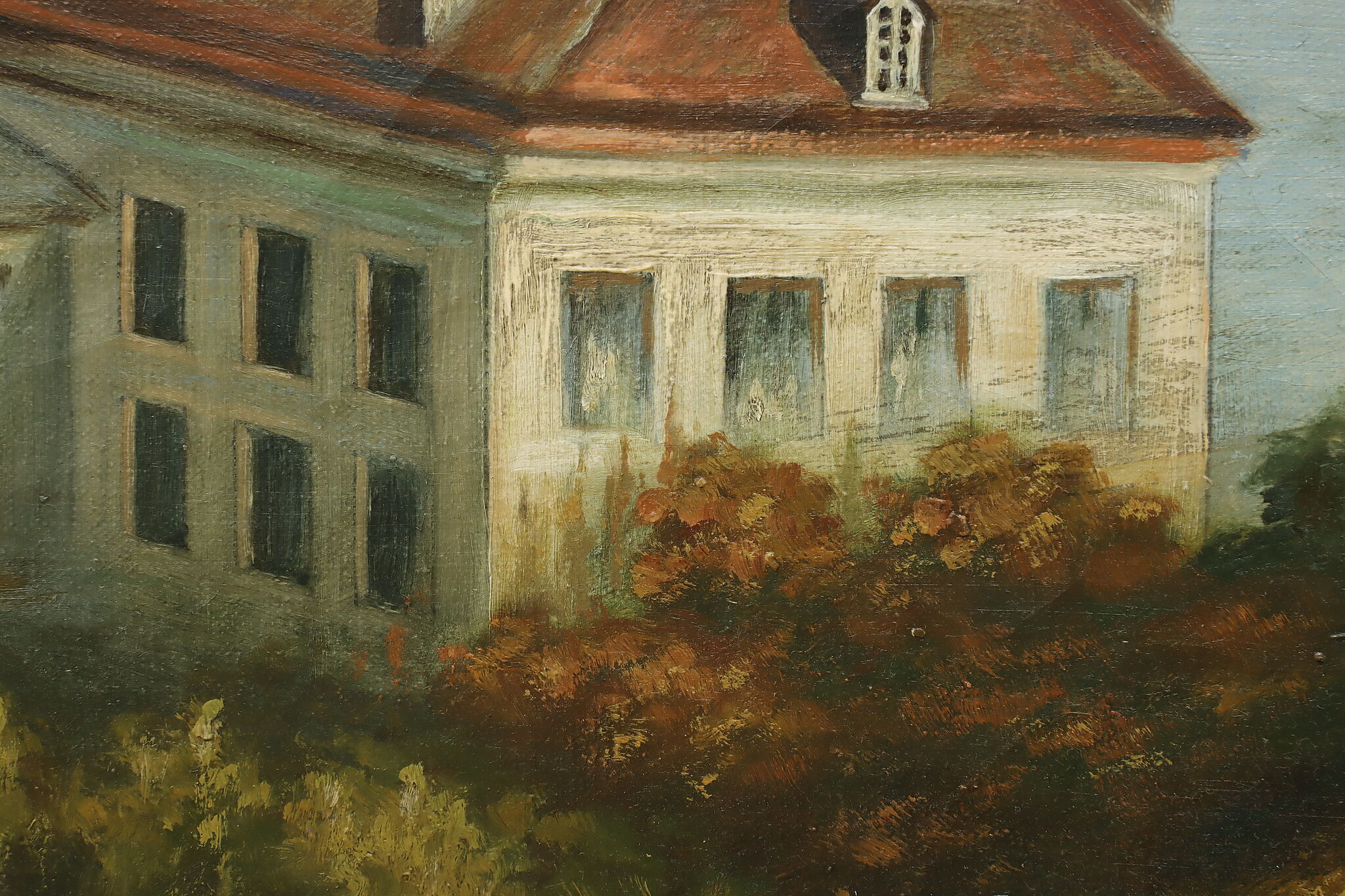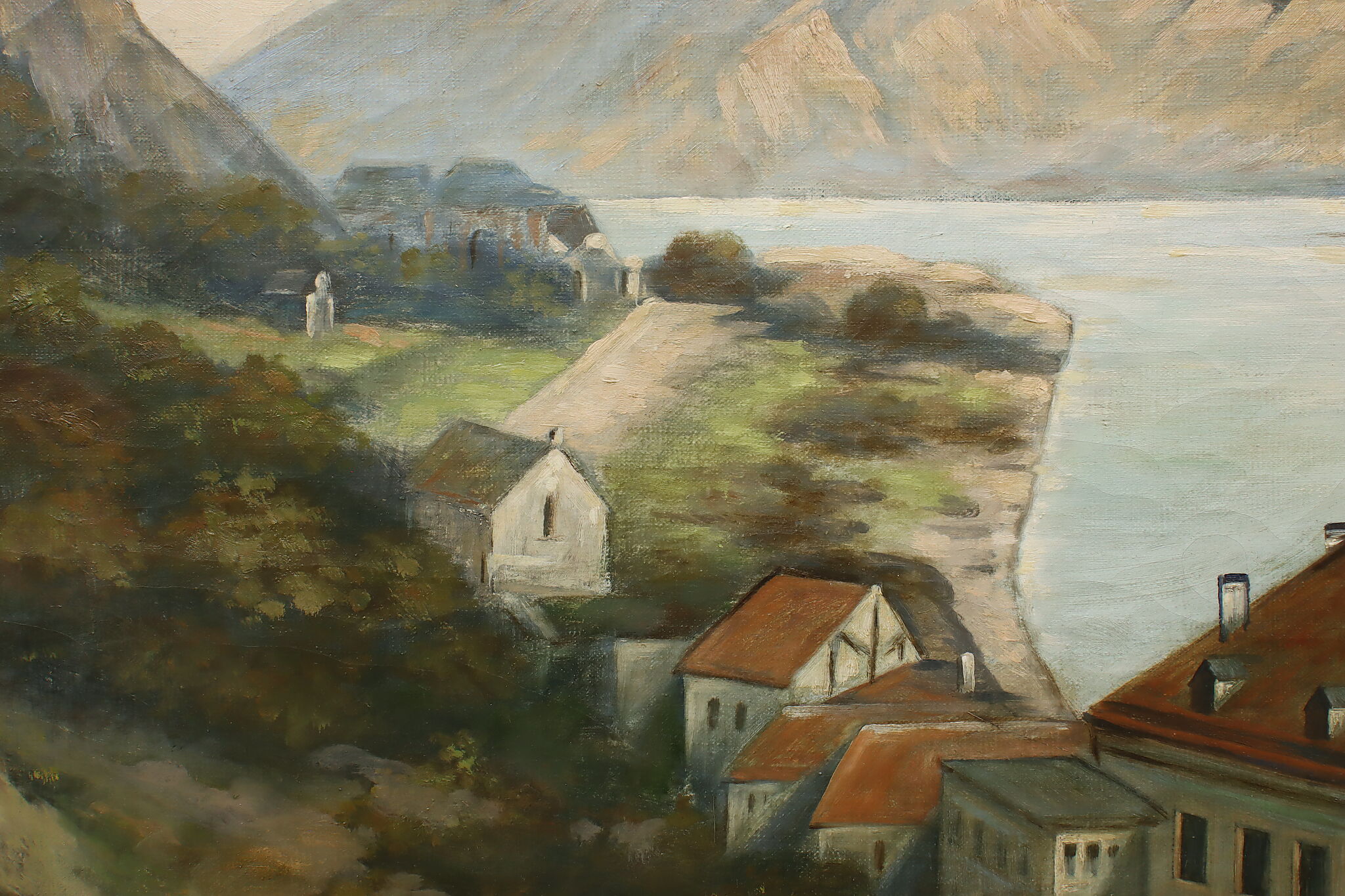 The artist of this painting must have had a bird's eye view in order to capture the coastal estates.