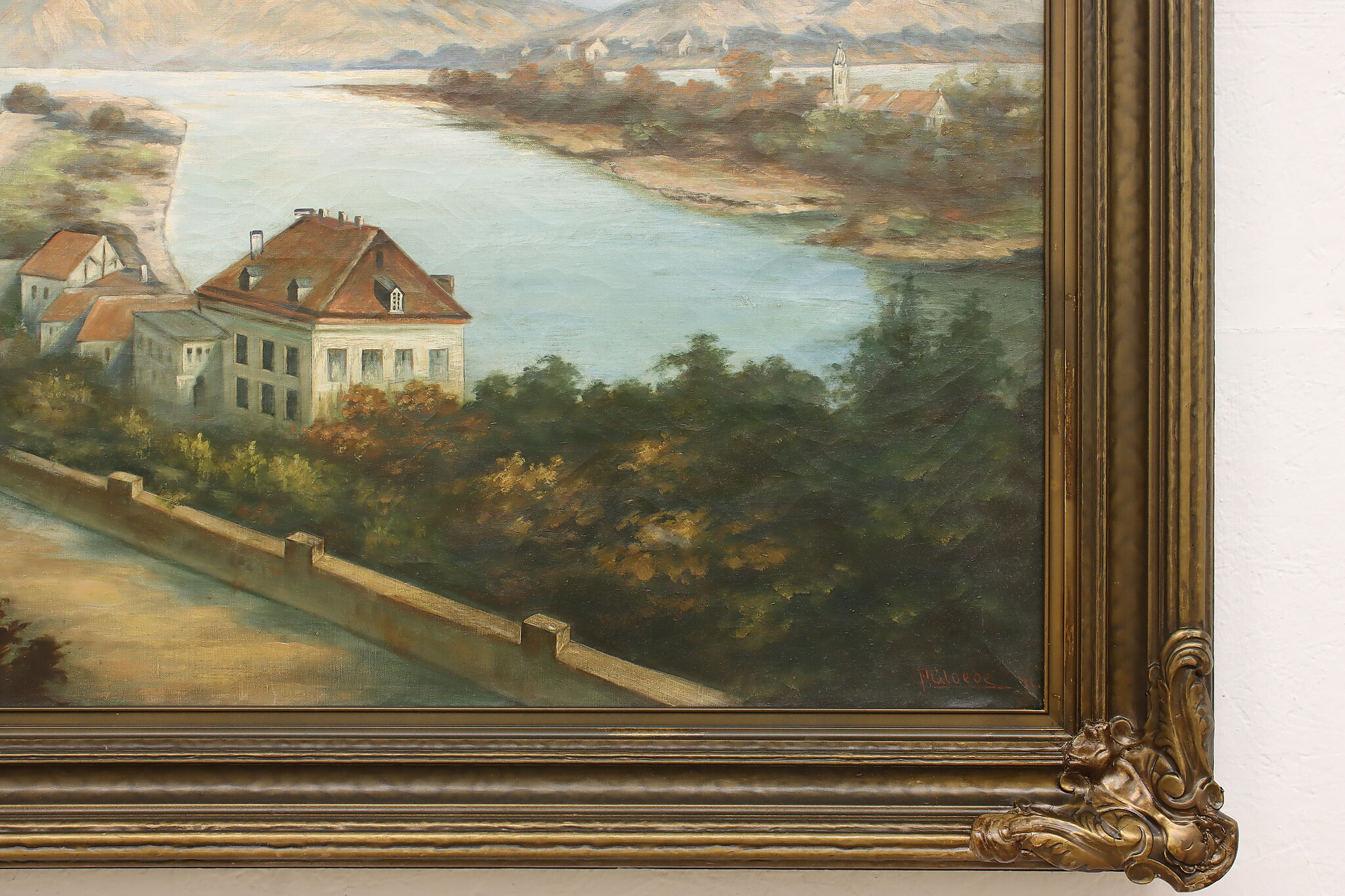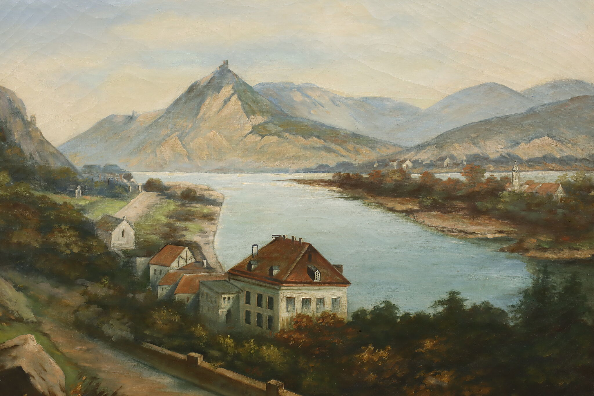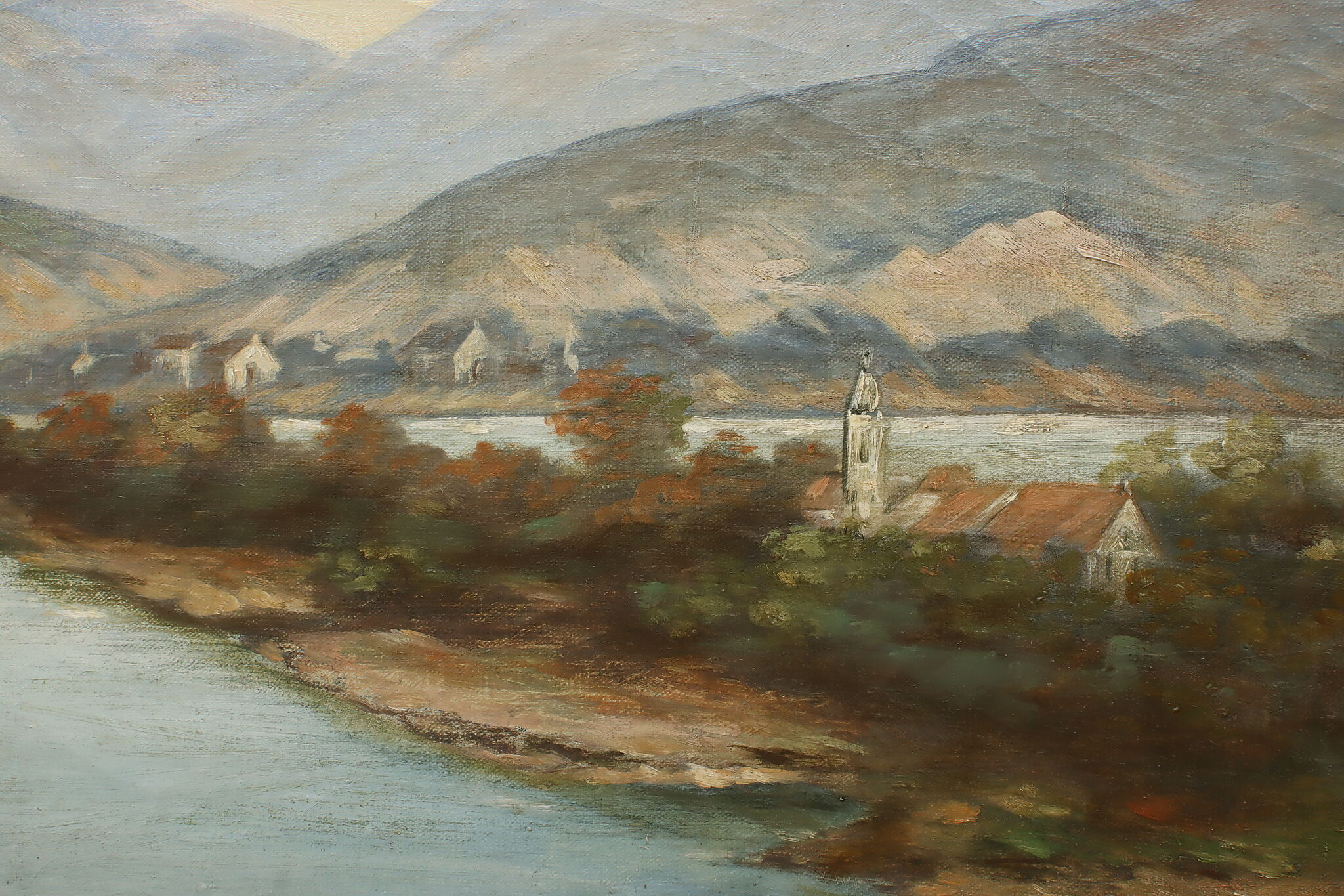 The artist of this painting must have had a bird's eye view in order to capture the coastal estates.