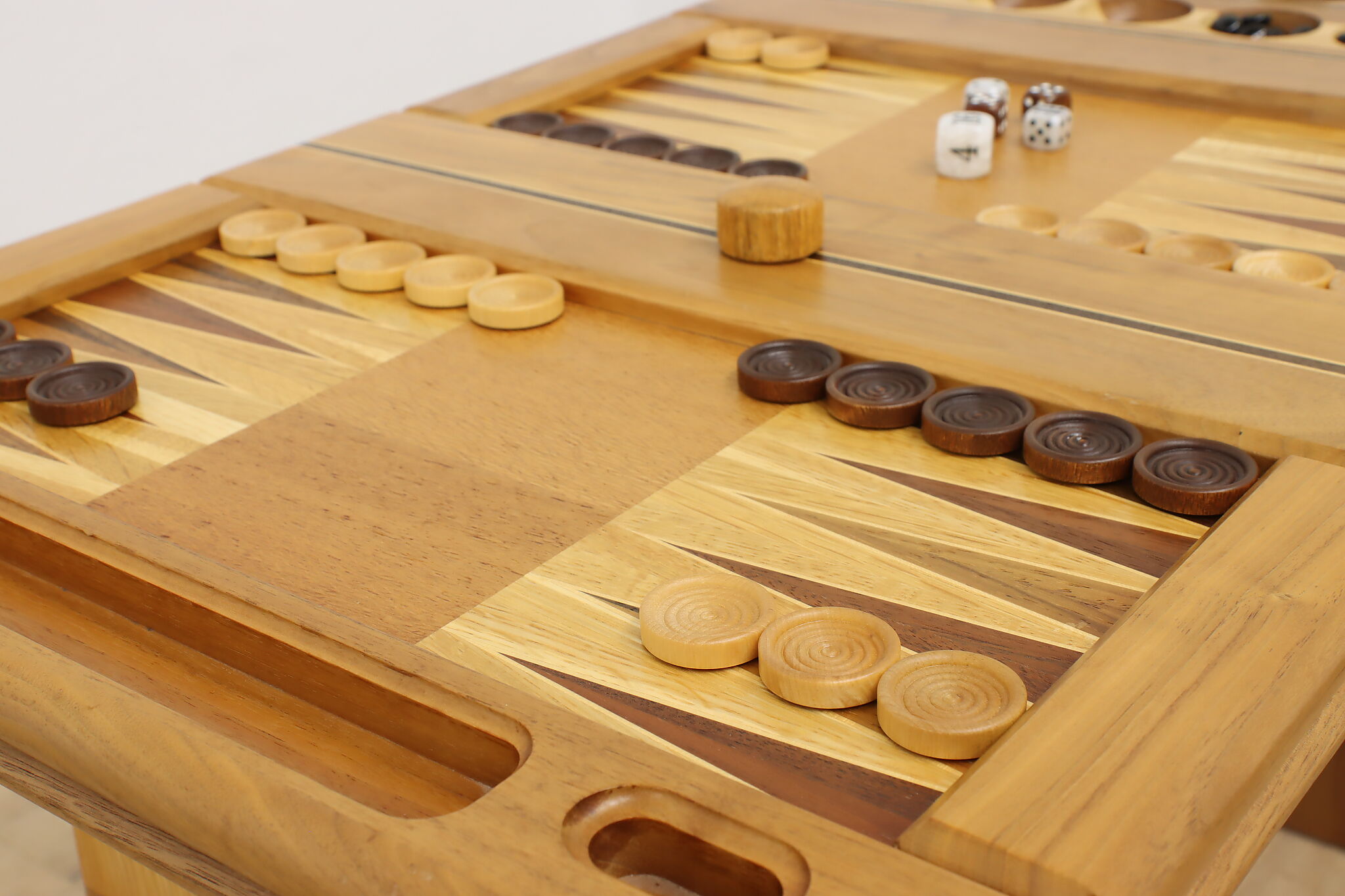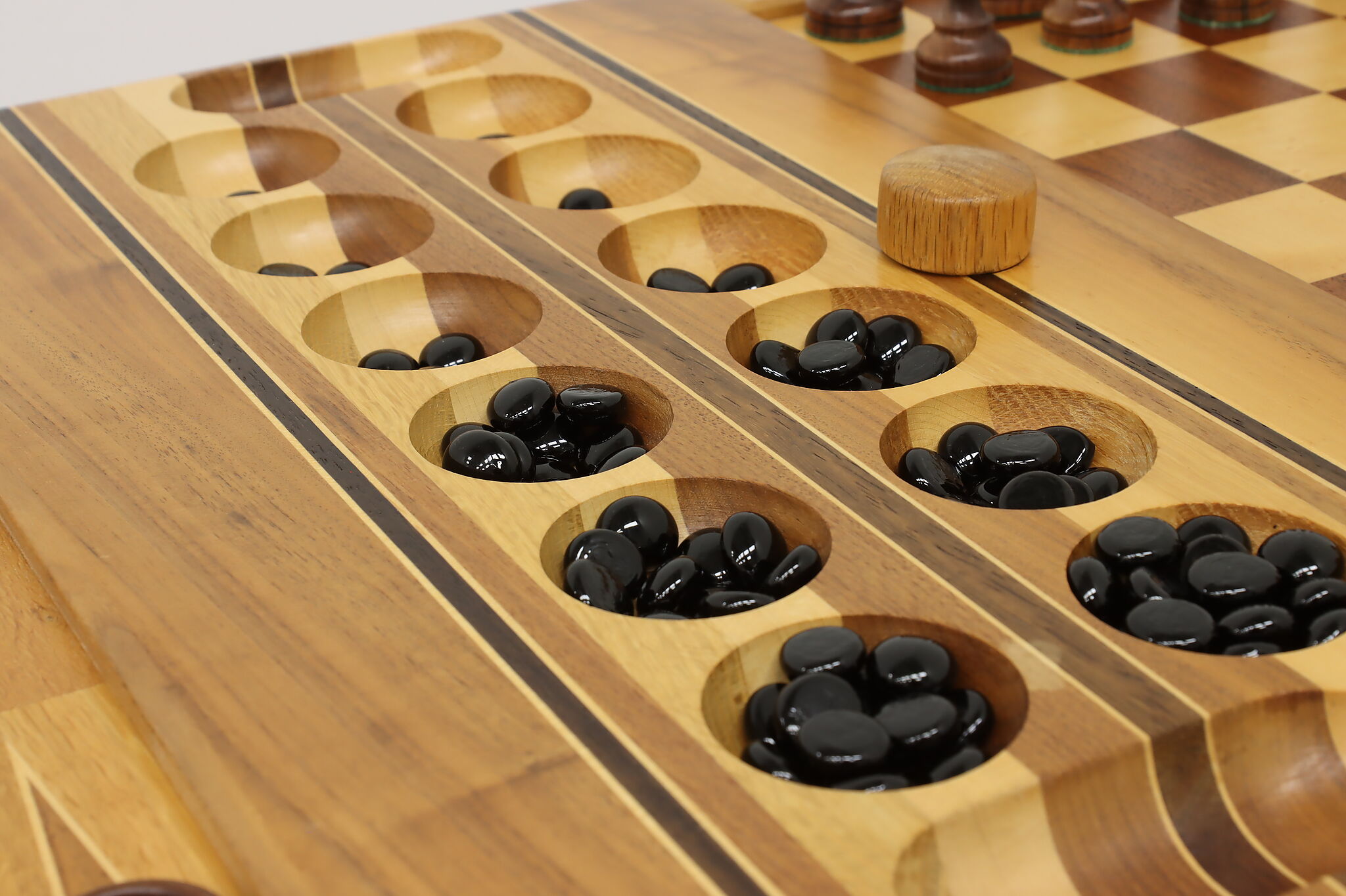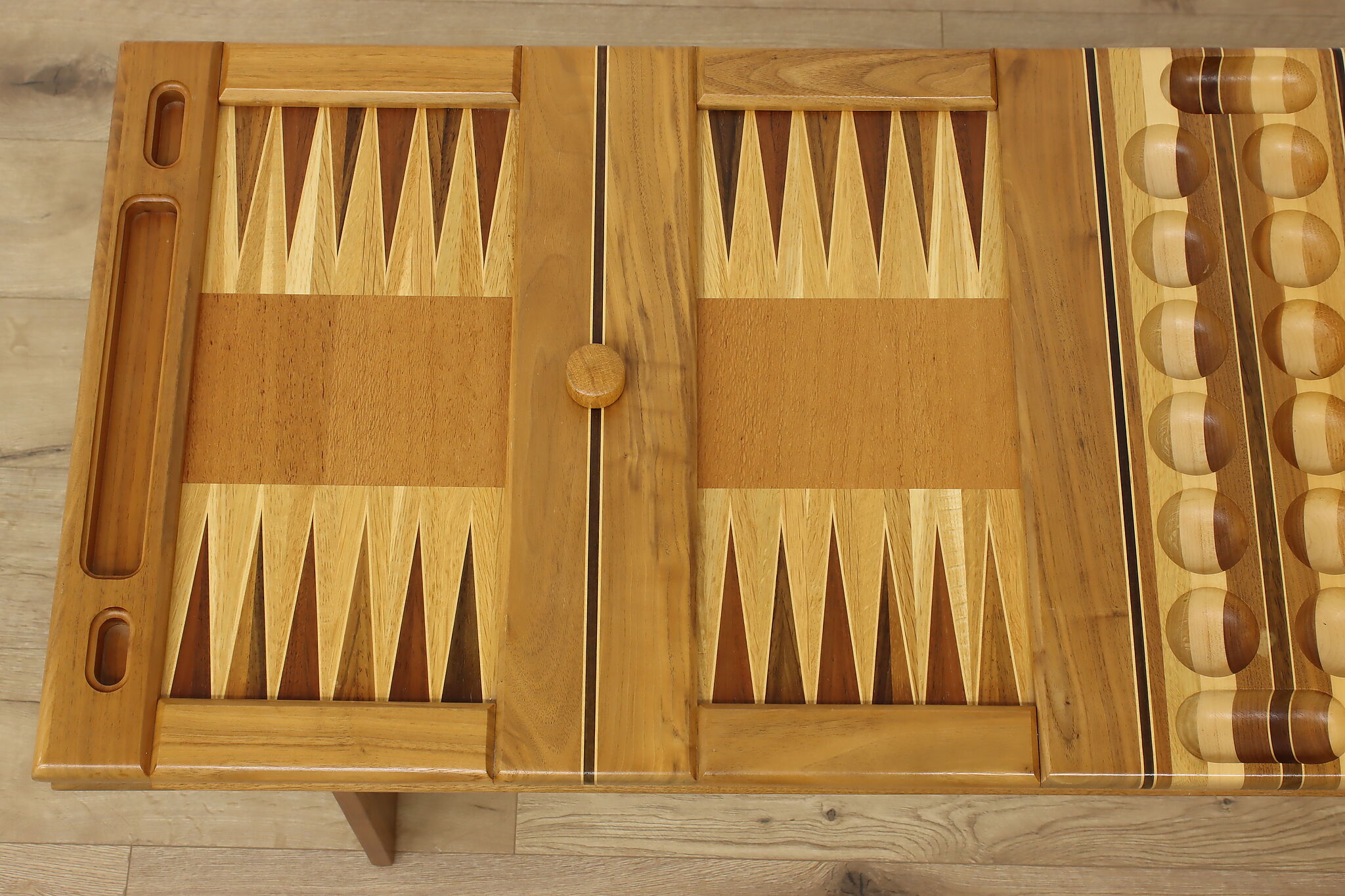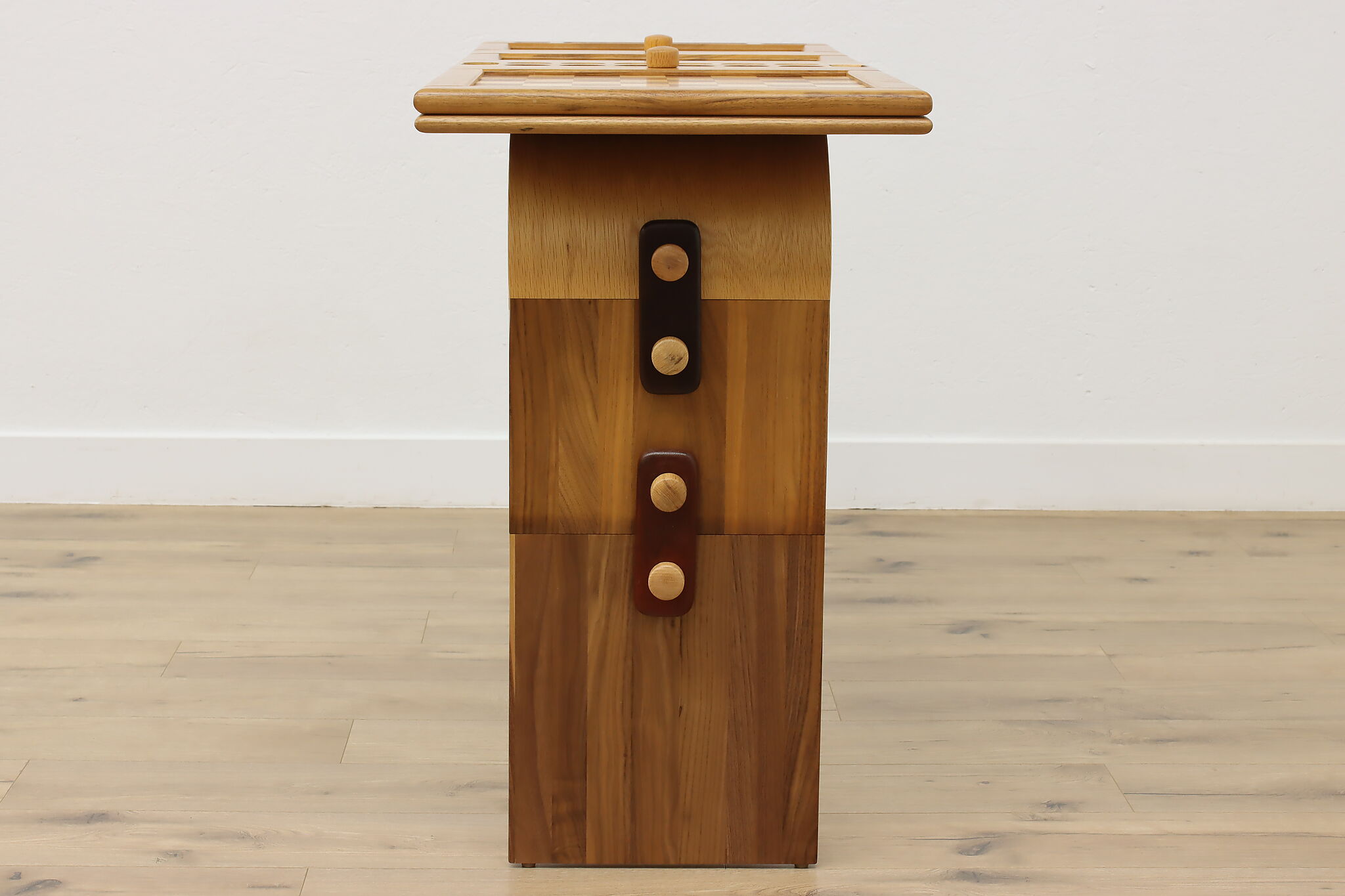 This gorgeously handcrafted coffee table flips to a game table with boards for chess, checkers, backgammon, and mancala, and can be raised for playing at table height.
