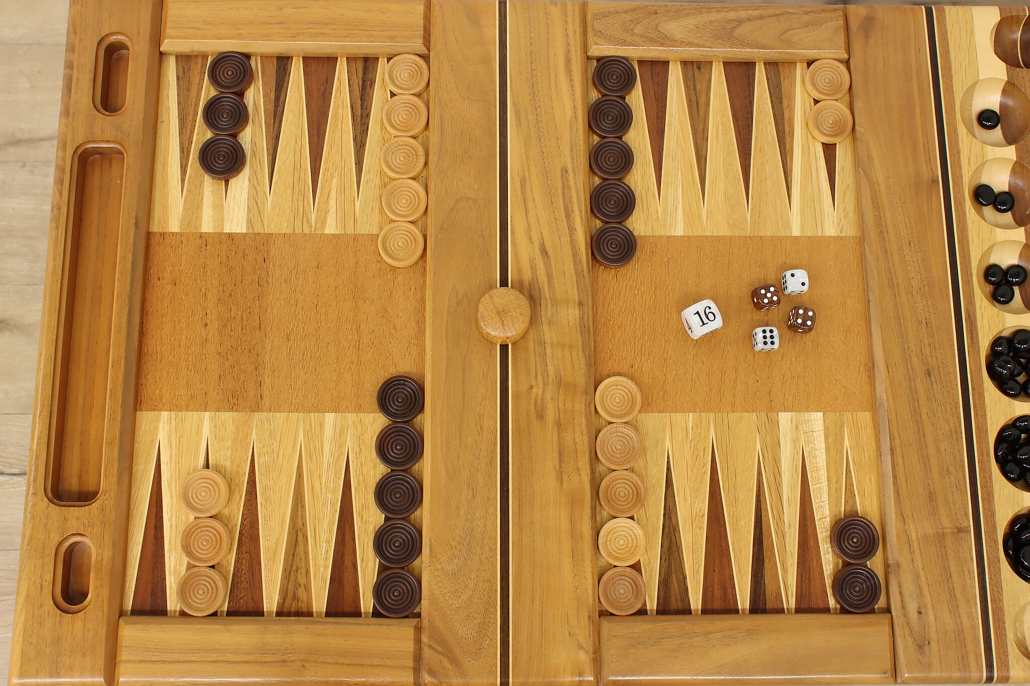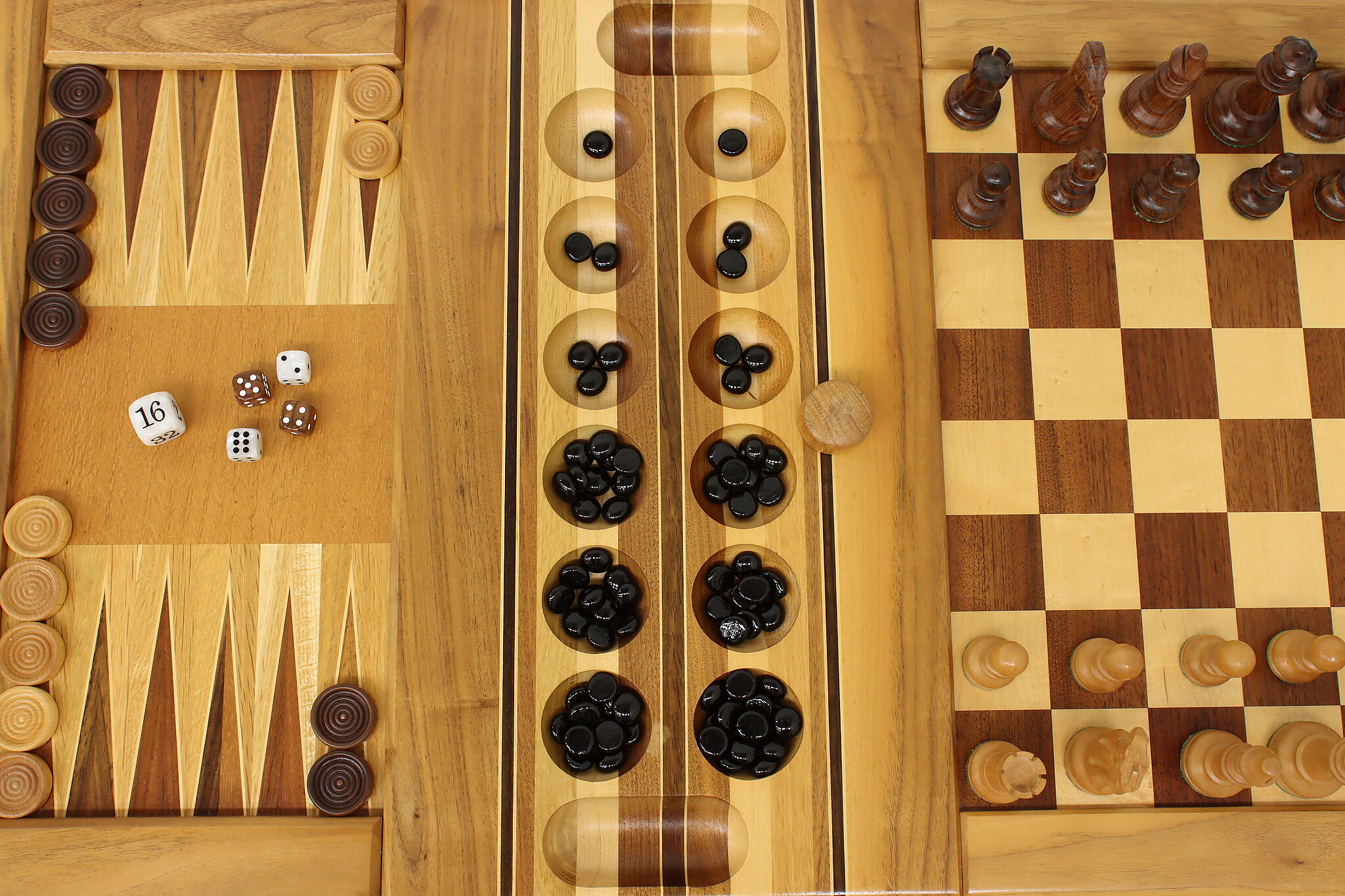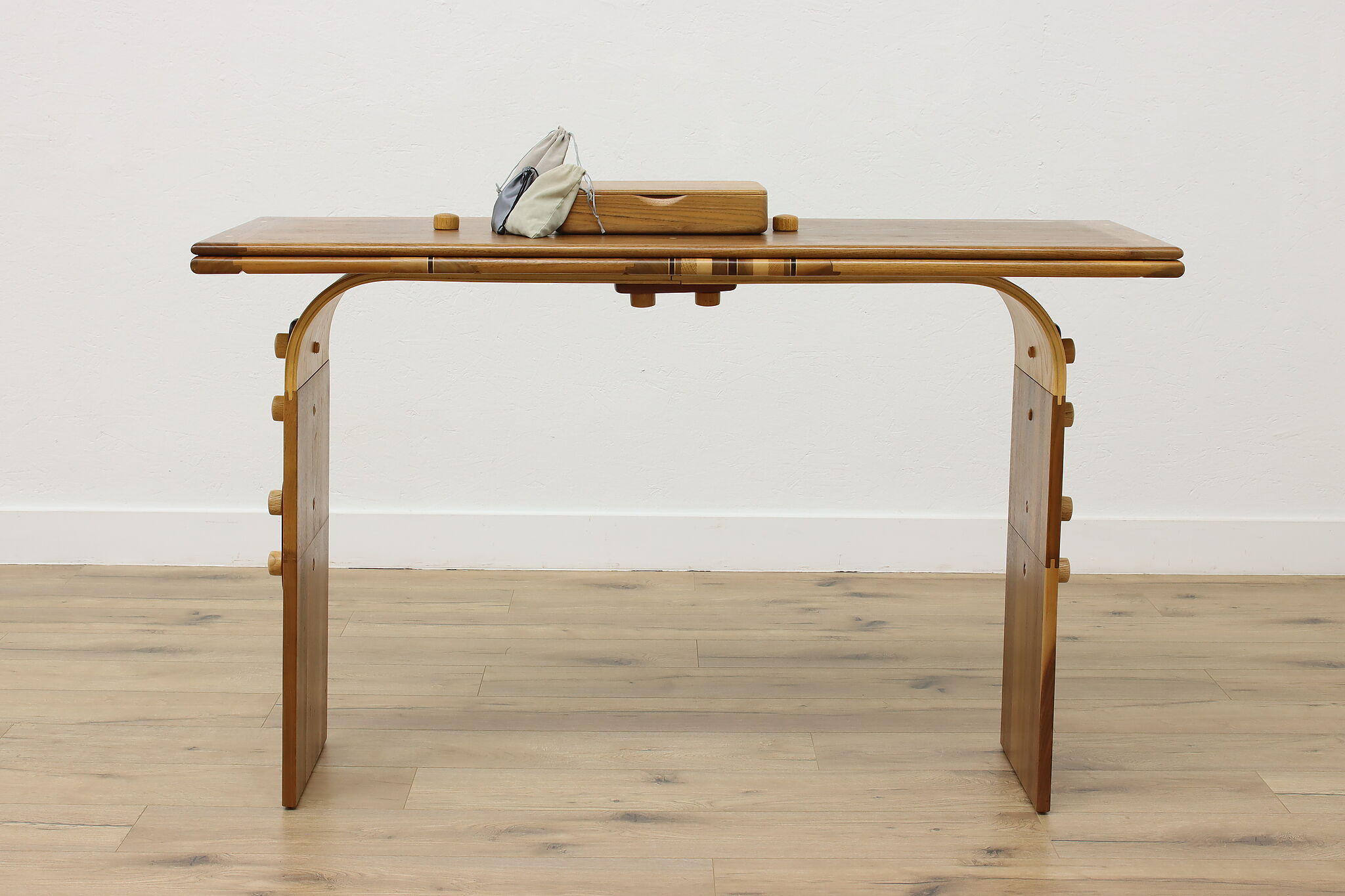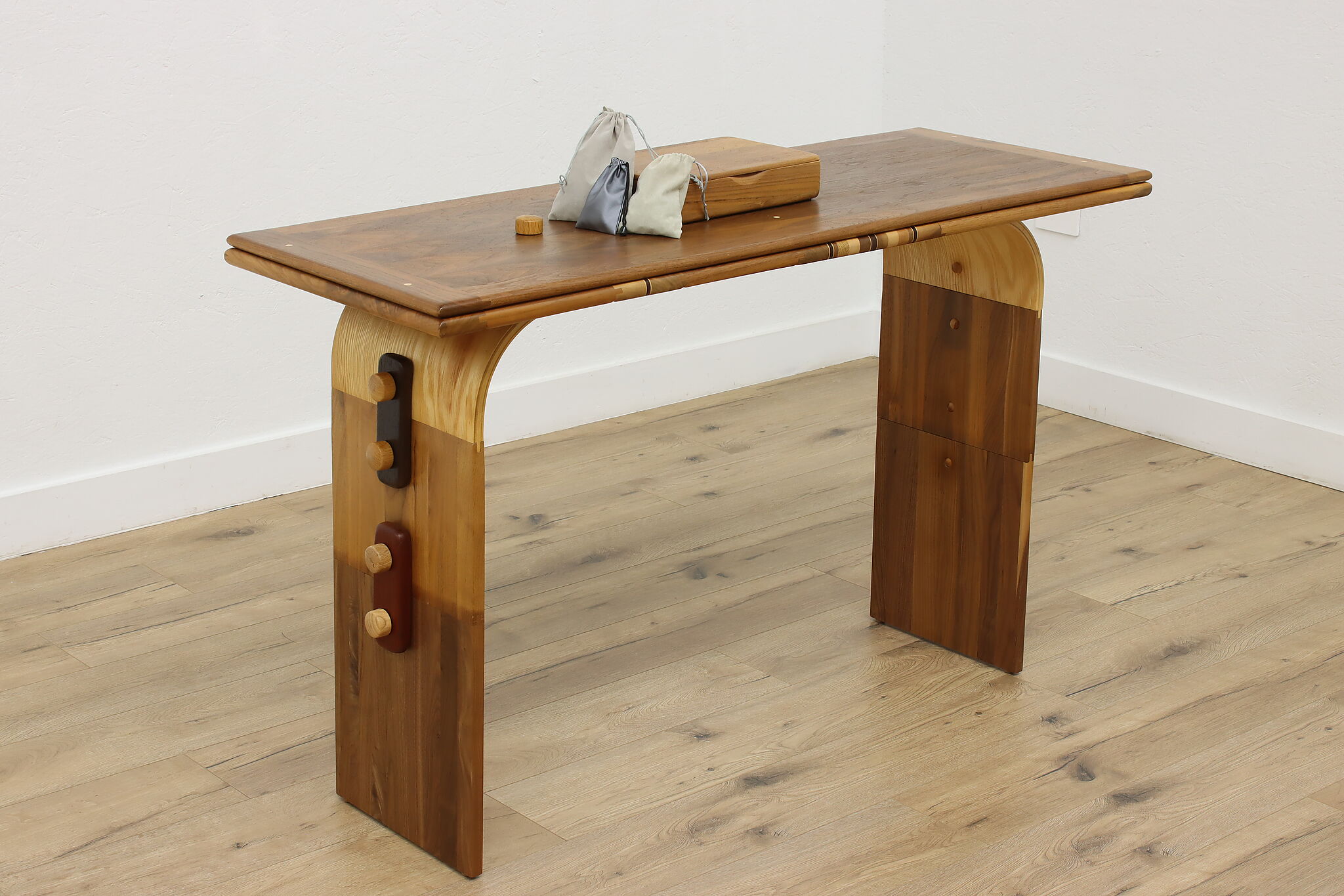 This gorgeously handcrafted coffee table flips to a game table with boards for chess, checkers, backgammon, and mancala, and can be raised for playing at table height.