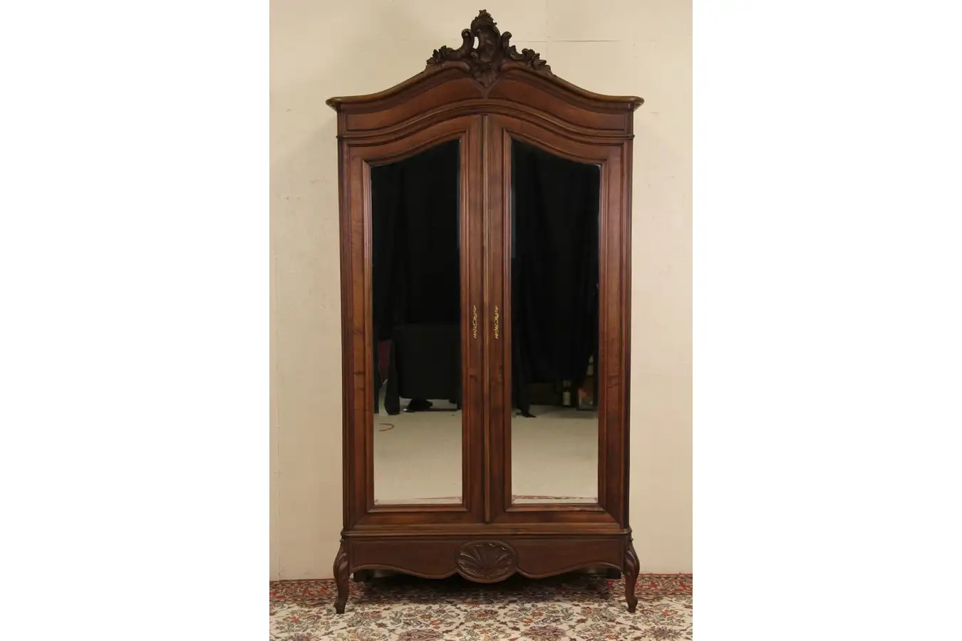 An authentic Country French armoire or wardrobe from about 1900 is solid walnut with an original satin finish in extremely fine condition.