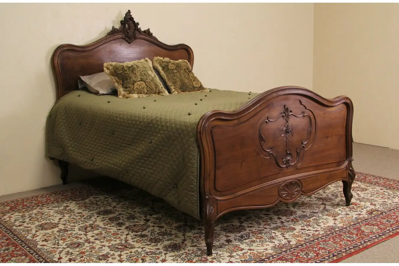 An authentic Country French full size bed from about 1900 is solid walnut with an original satin finish in extremely fine condition.