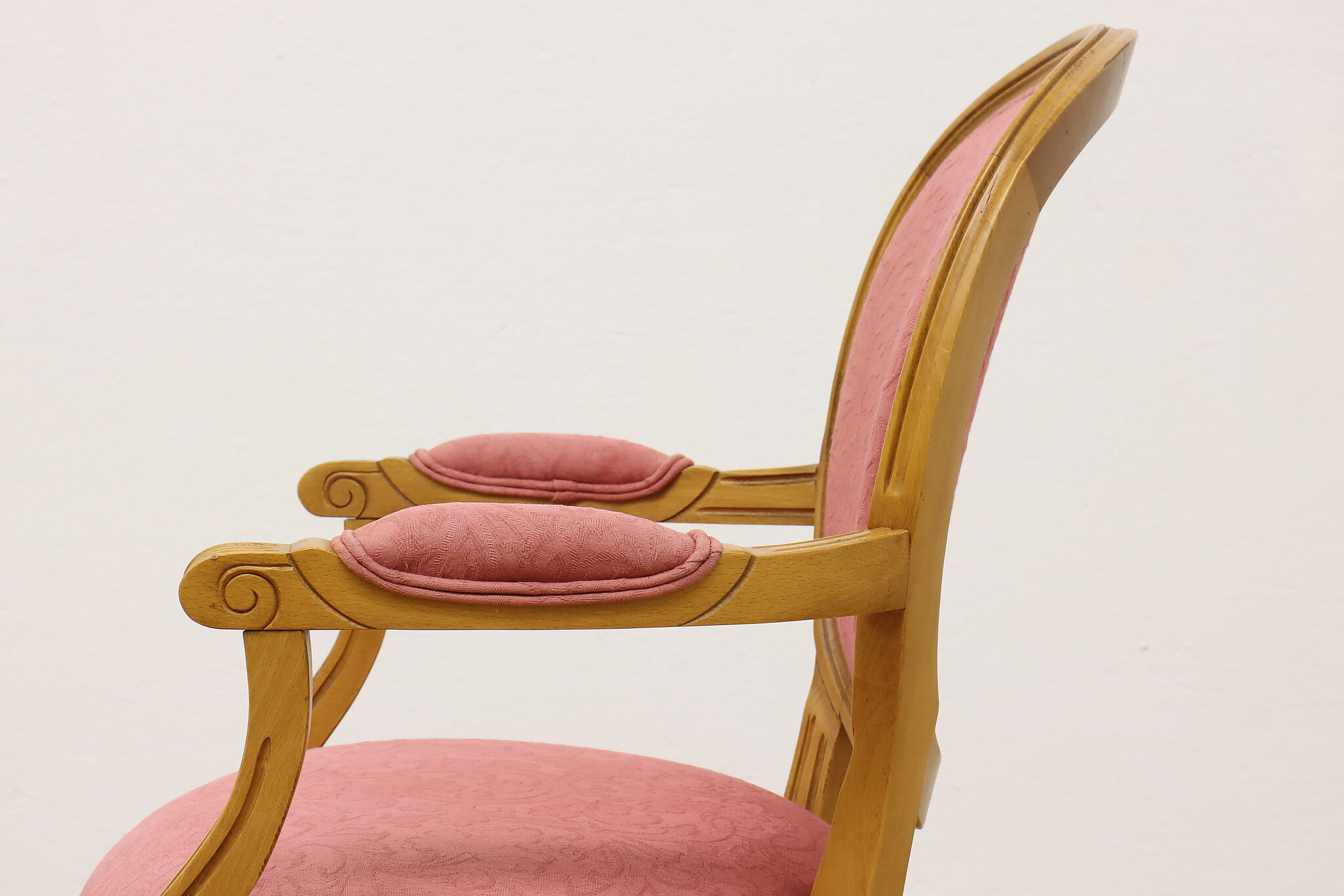 A charming Country French side or desk chair is by famous maker, "Ethan Allen."