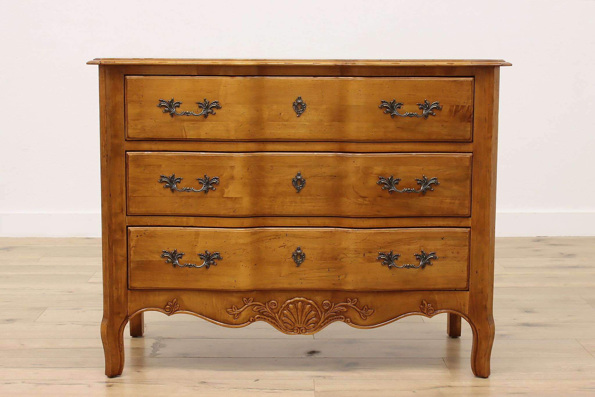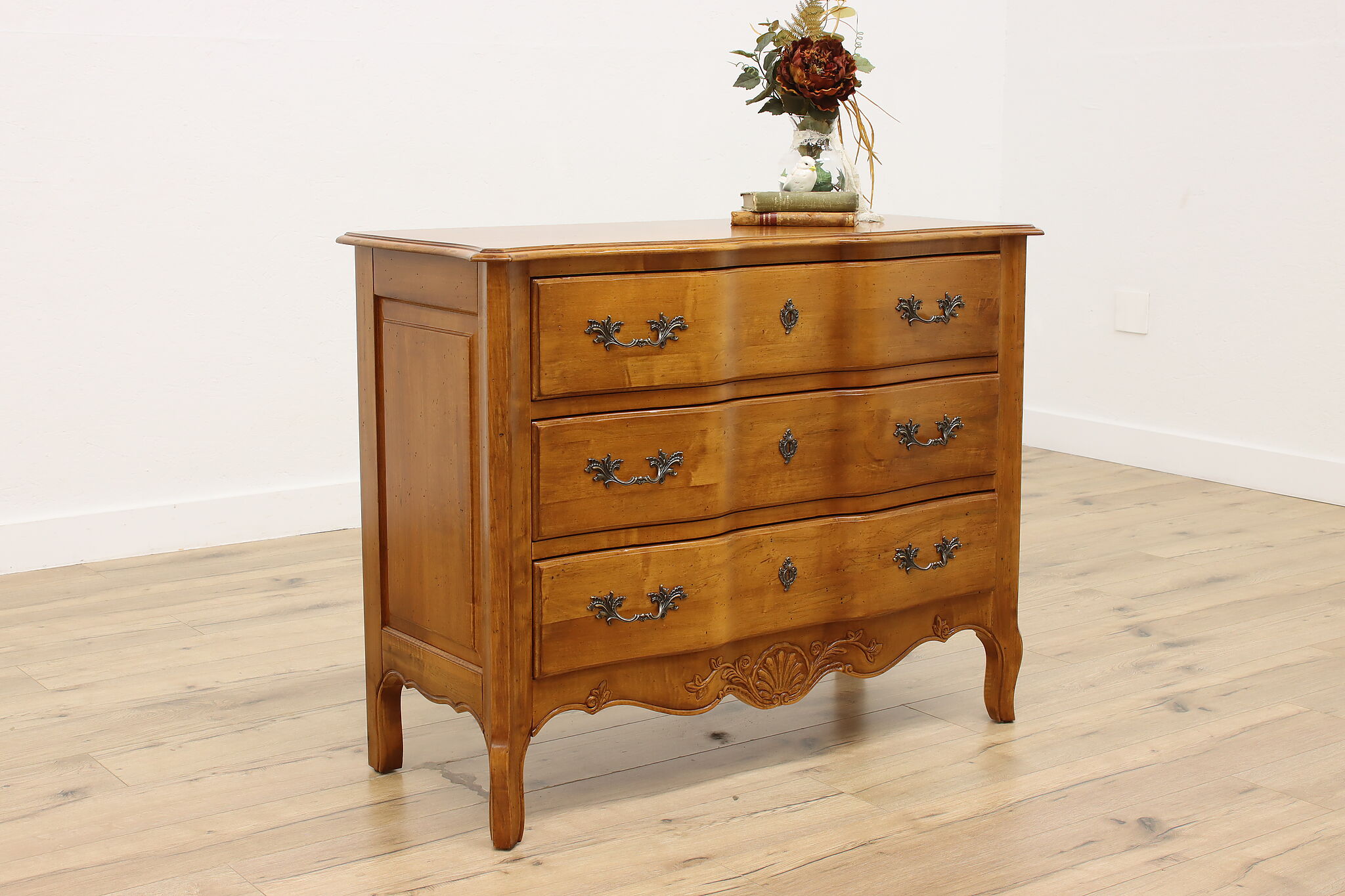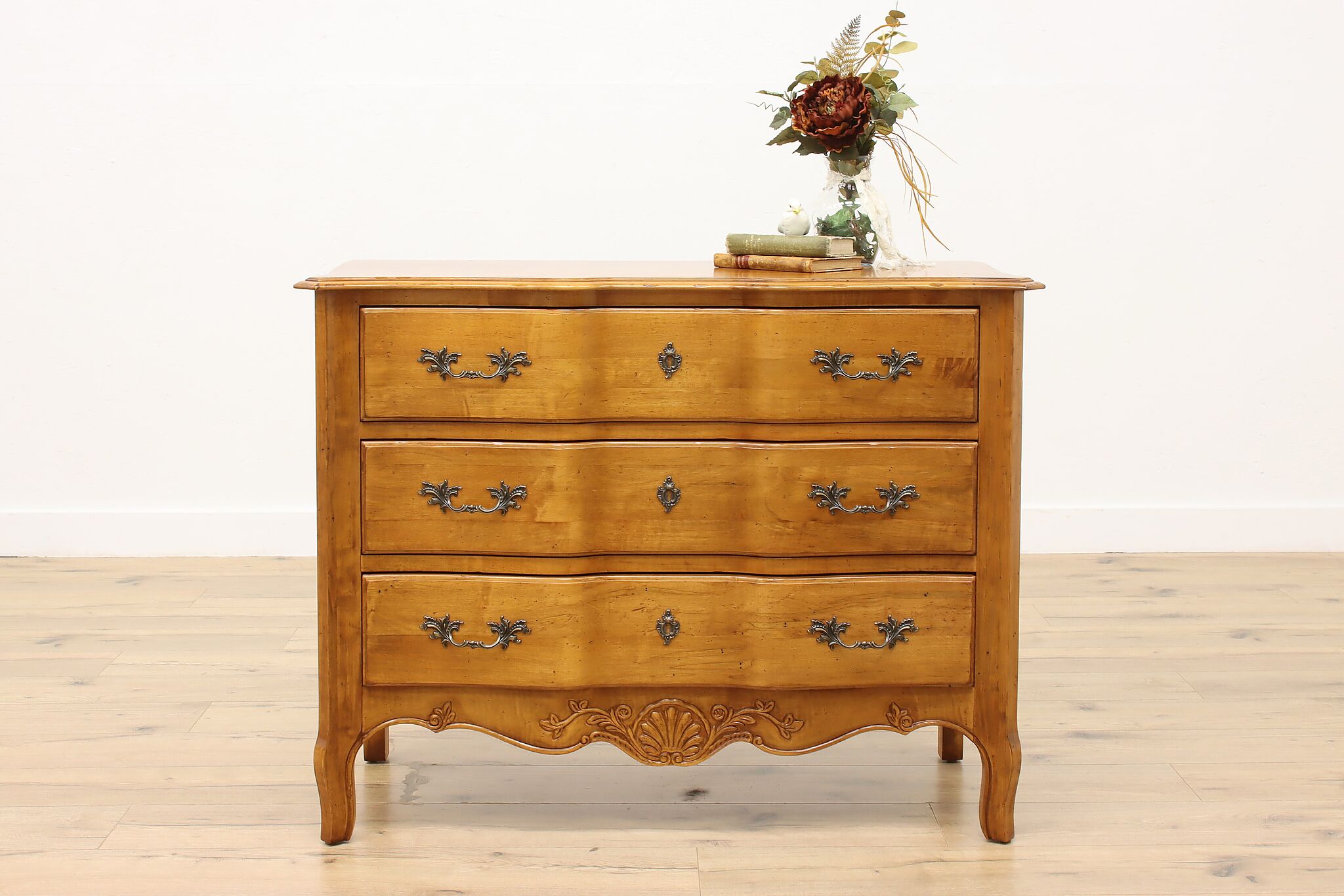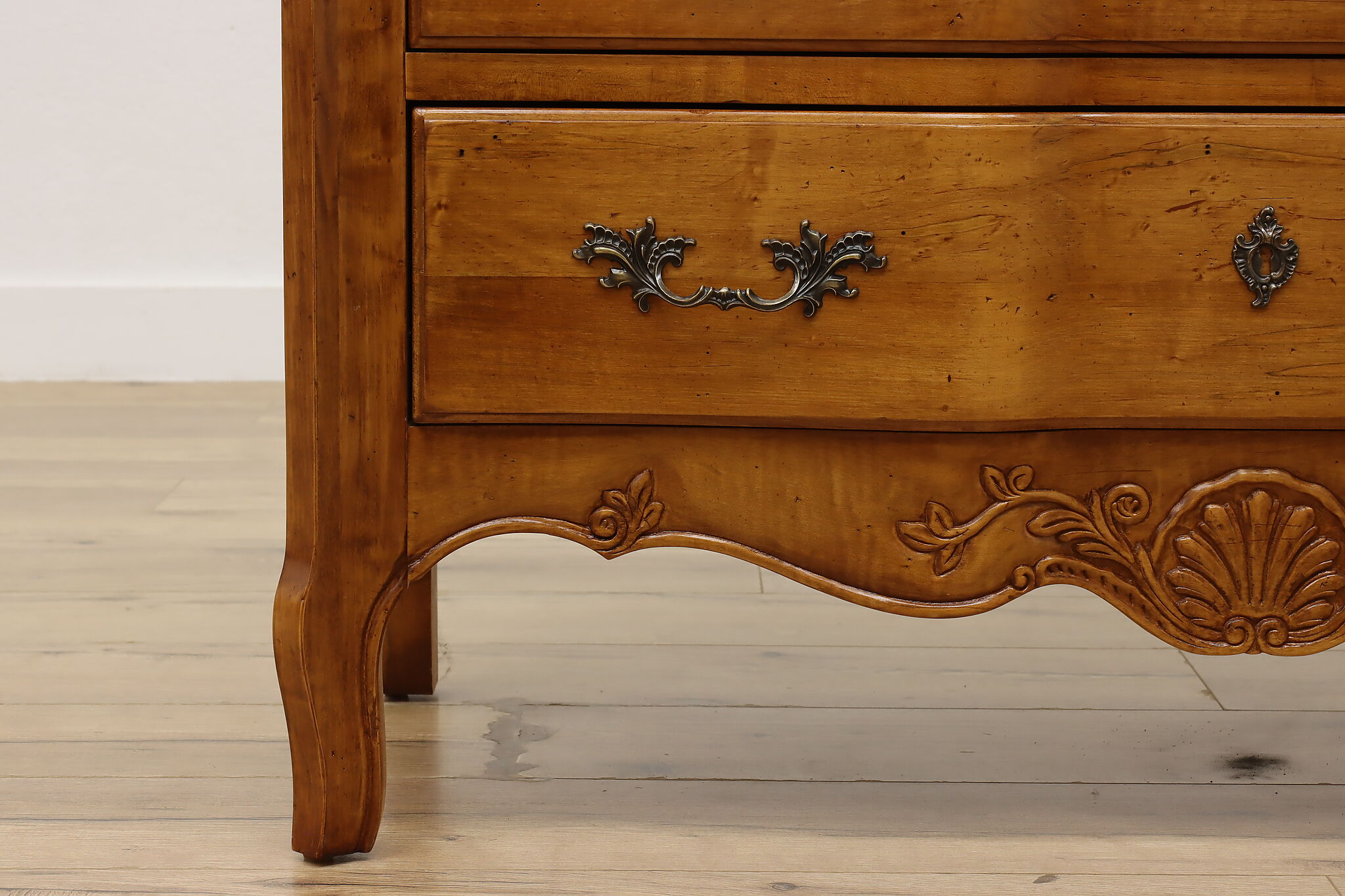 The sweet curves and carved shell motifs on this dresser, chest or console are lovely examples of Country French furniture.