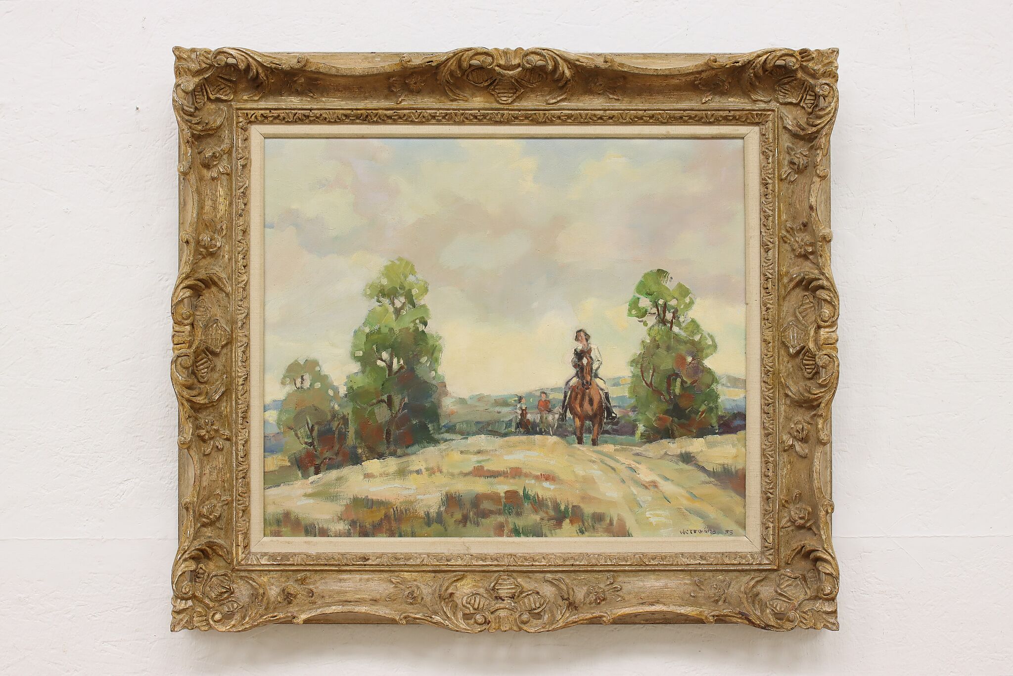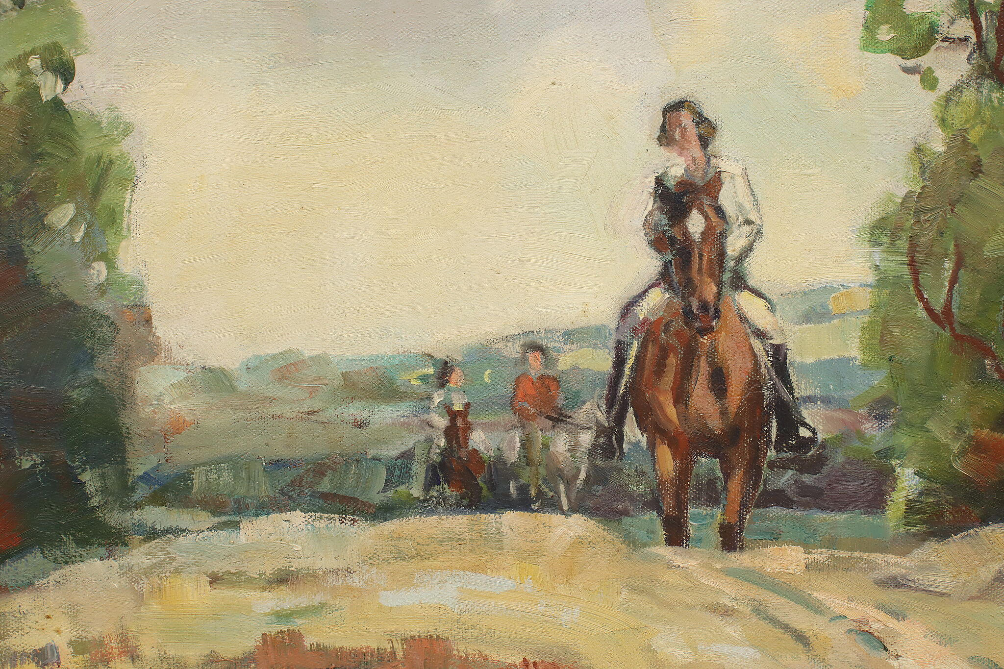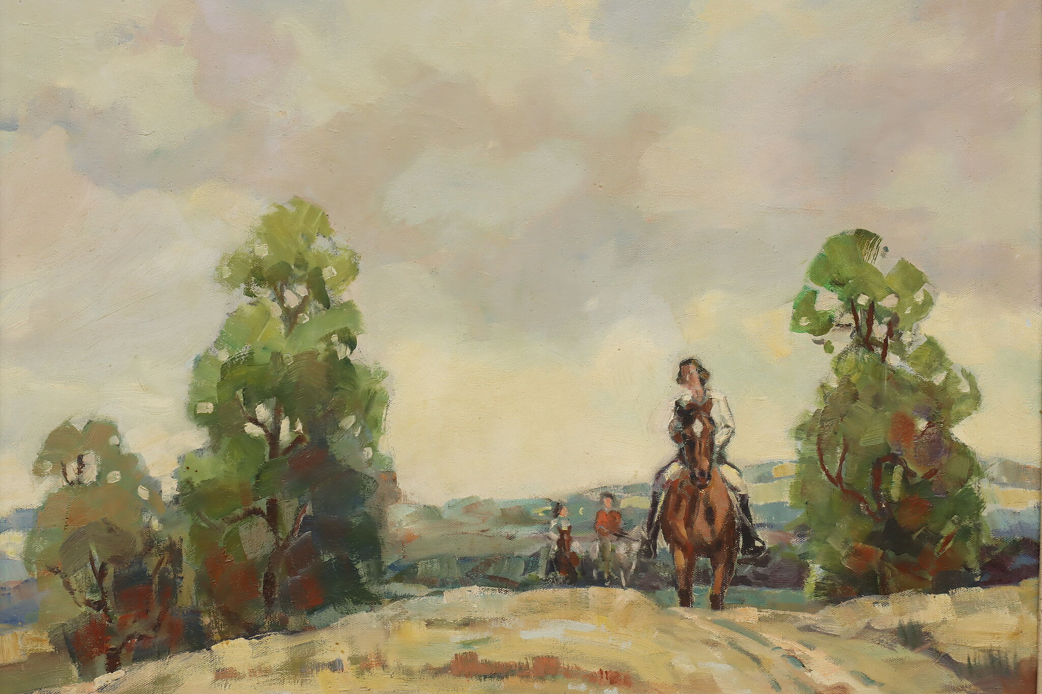 Decorate your western ranch or barn with this lovely impressionistic painting of countryside horse riders.
