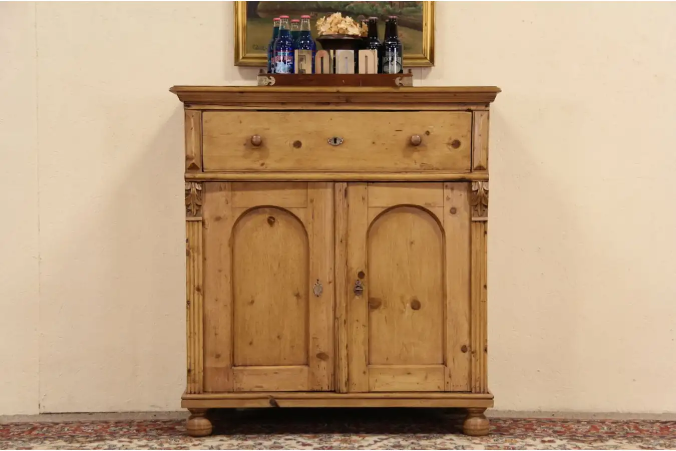 This country pine sideboard or server was hand carved in Austria around 1880.