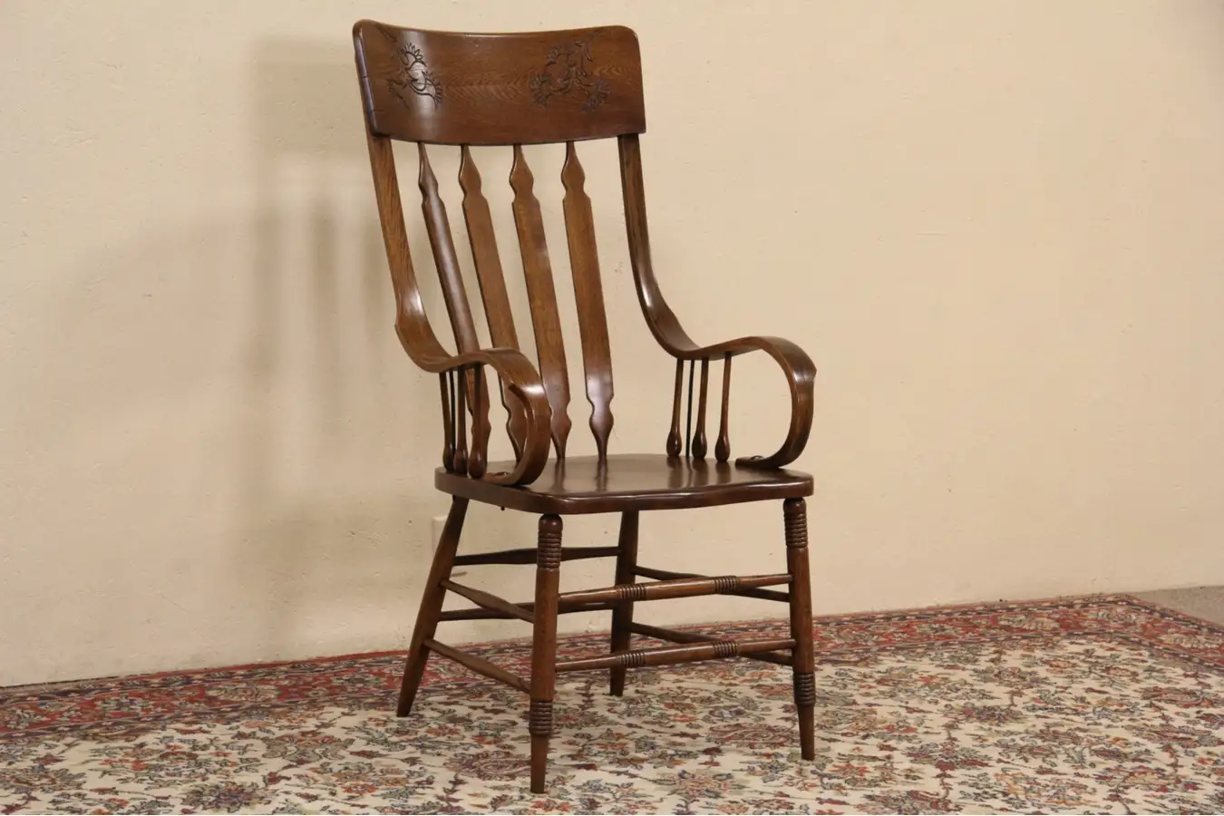 Made for a Wisconsin courthouse in the 1890's, this large armchair is solid oak and ash, functional for dining, reading or at a desk.