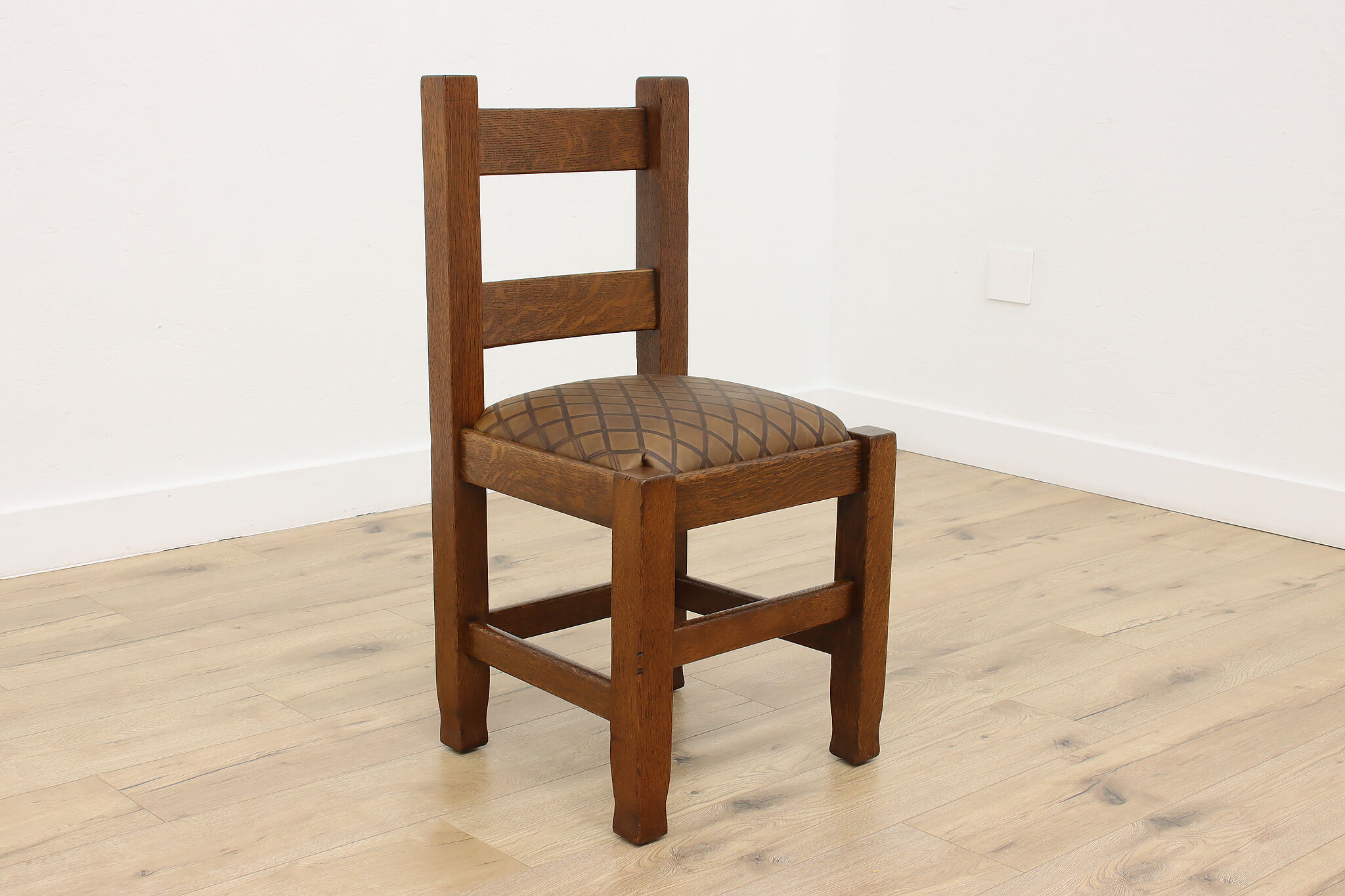 Place this Arts & Crafts or Mission period chair in your office or library to make a bold statement with its strong character and sturdy construction.