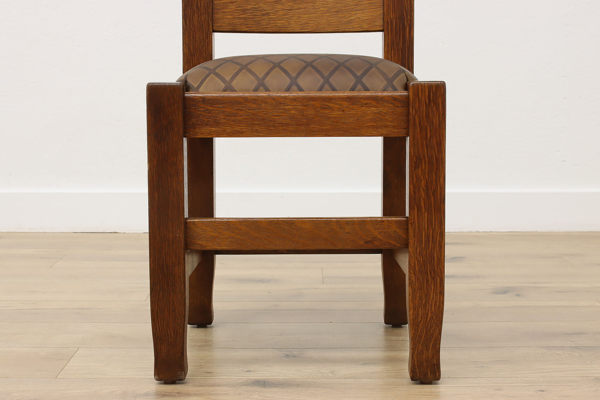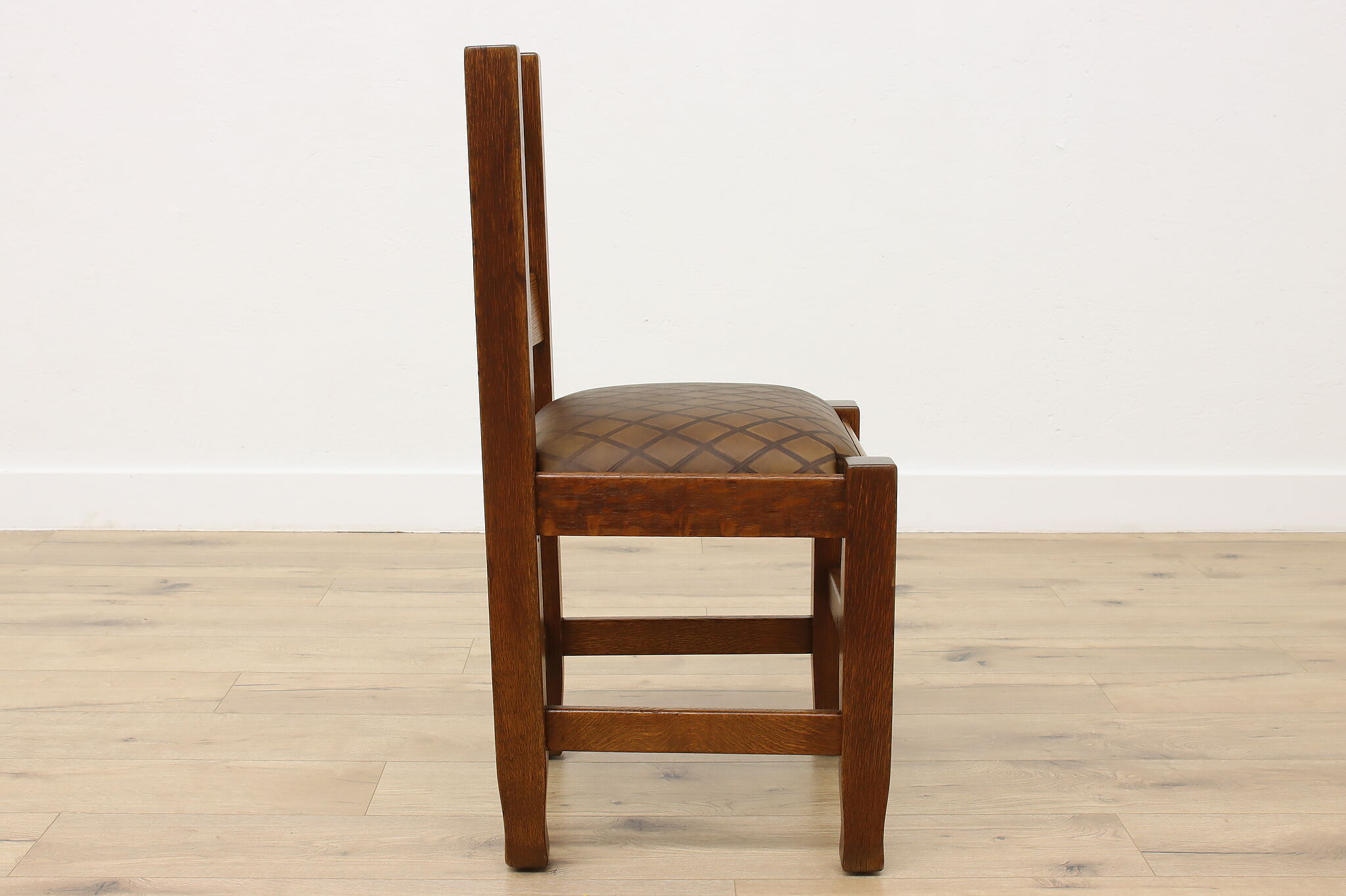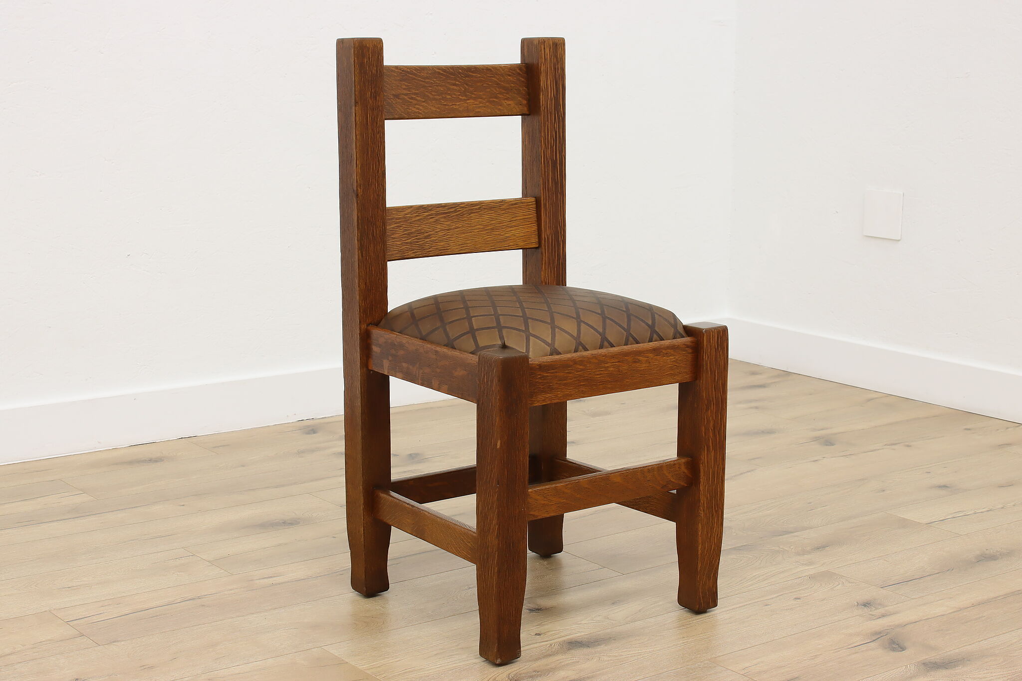 Place this Arts & Crafts or Mission Oak period chair in your office or library to make a bold statement with its strong character and sturdy construction.