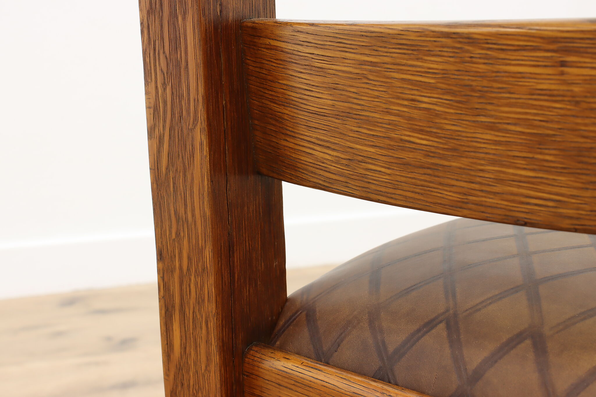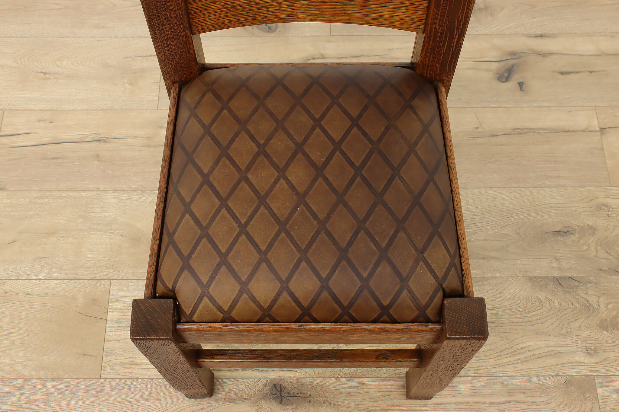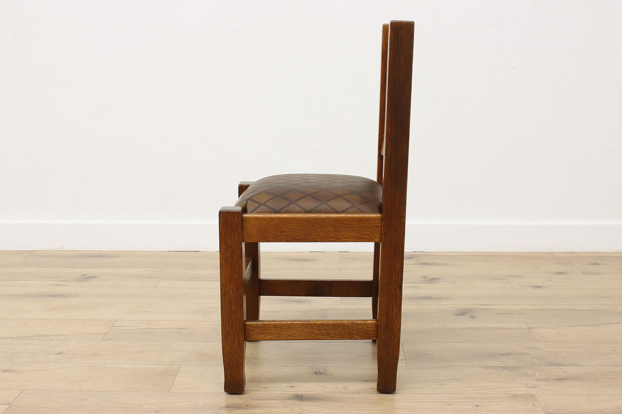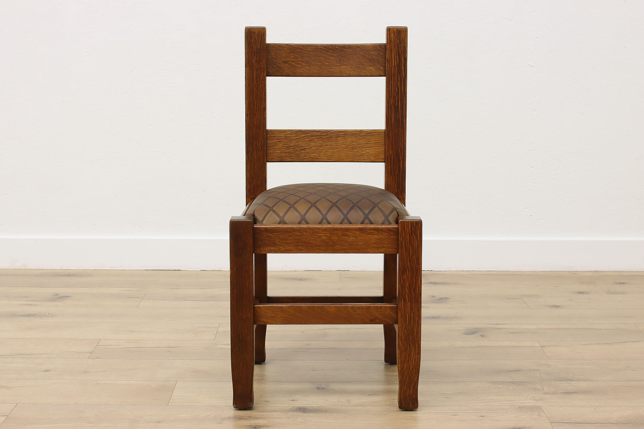 Place this Arts & Crafts or Mission Oak period chair in your office or library to make a bold statement with its strong character and sturdy construction.
