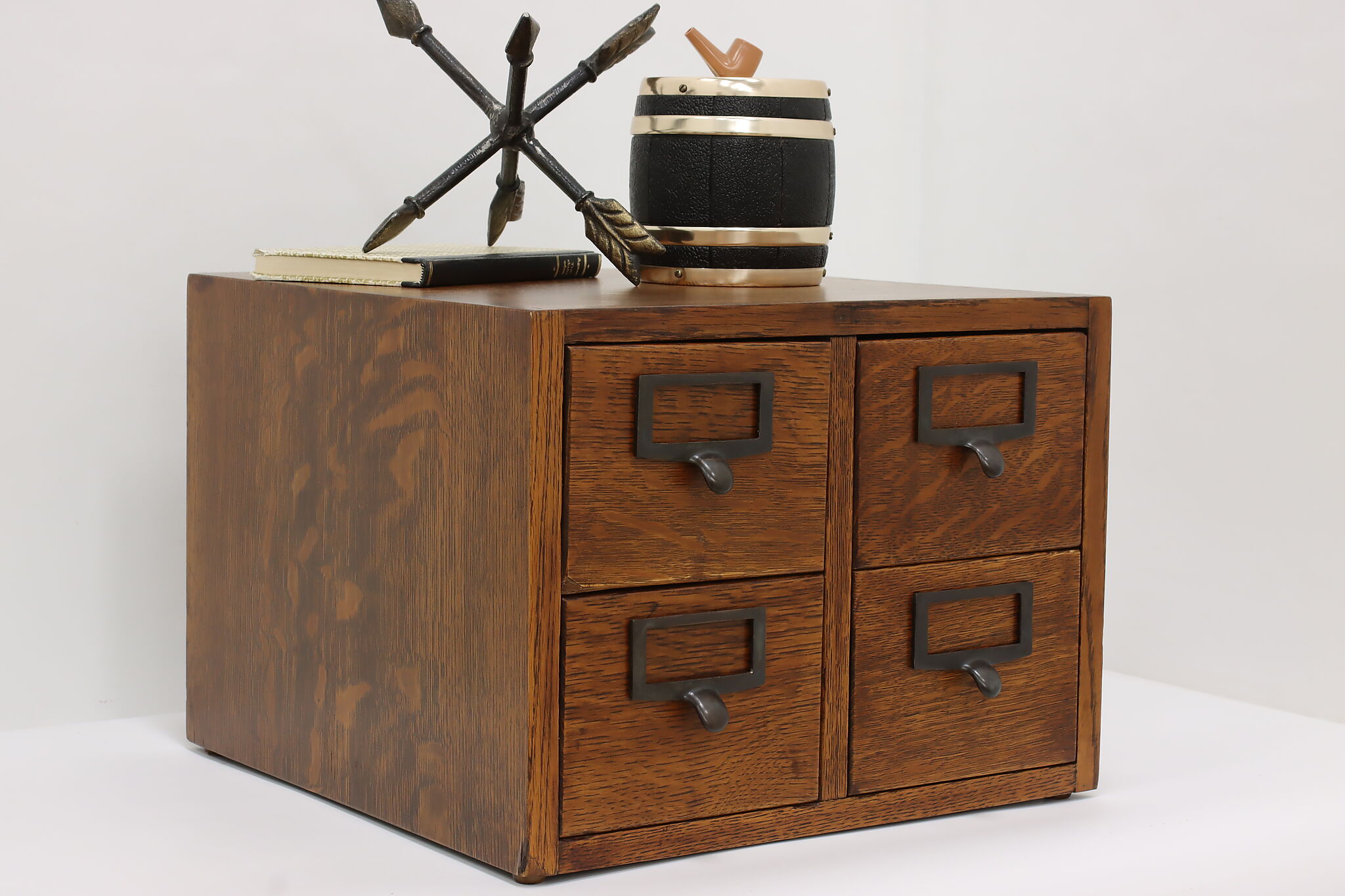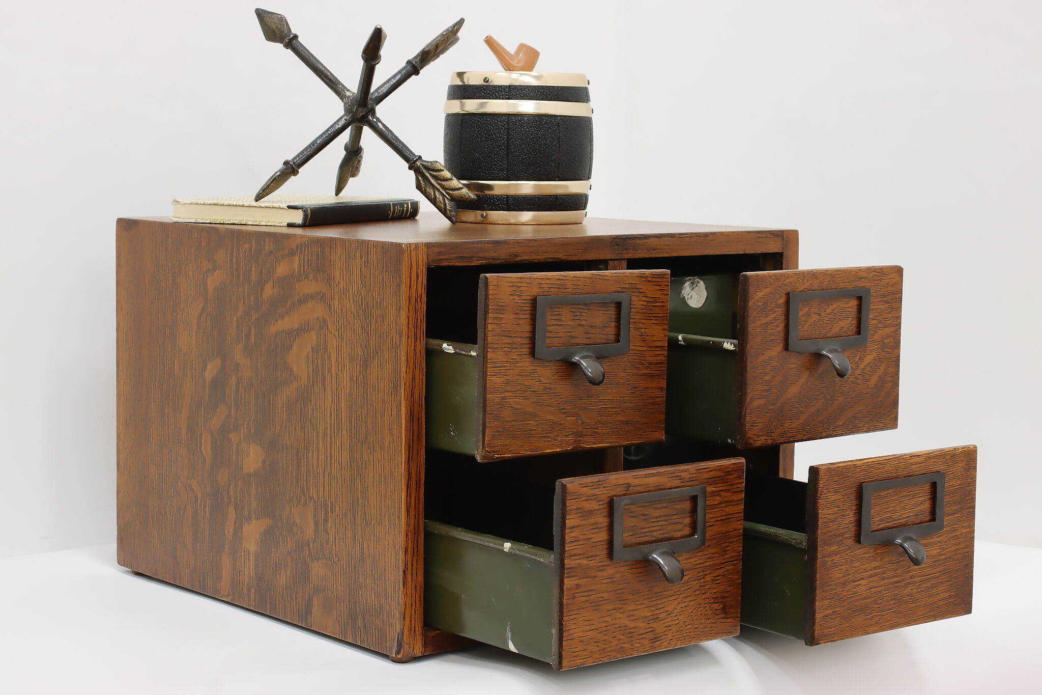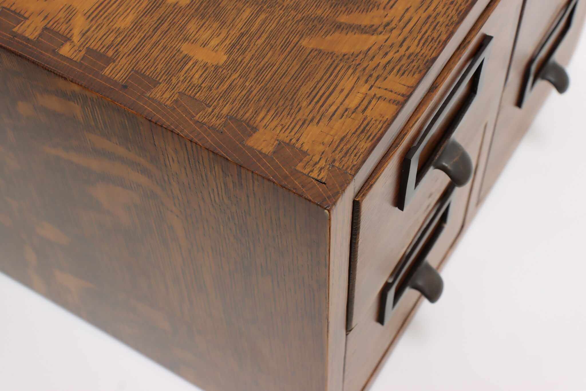Store your grandmother's handwritten recipe cards in this desktop Arts & Crafts or Mission period file cabinet.