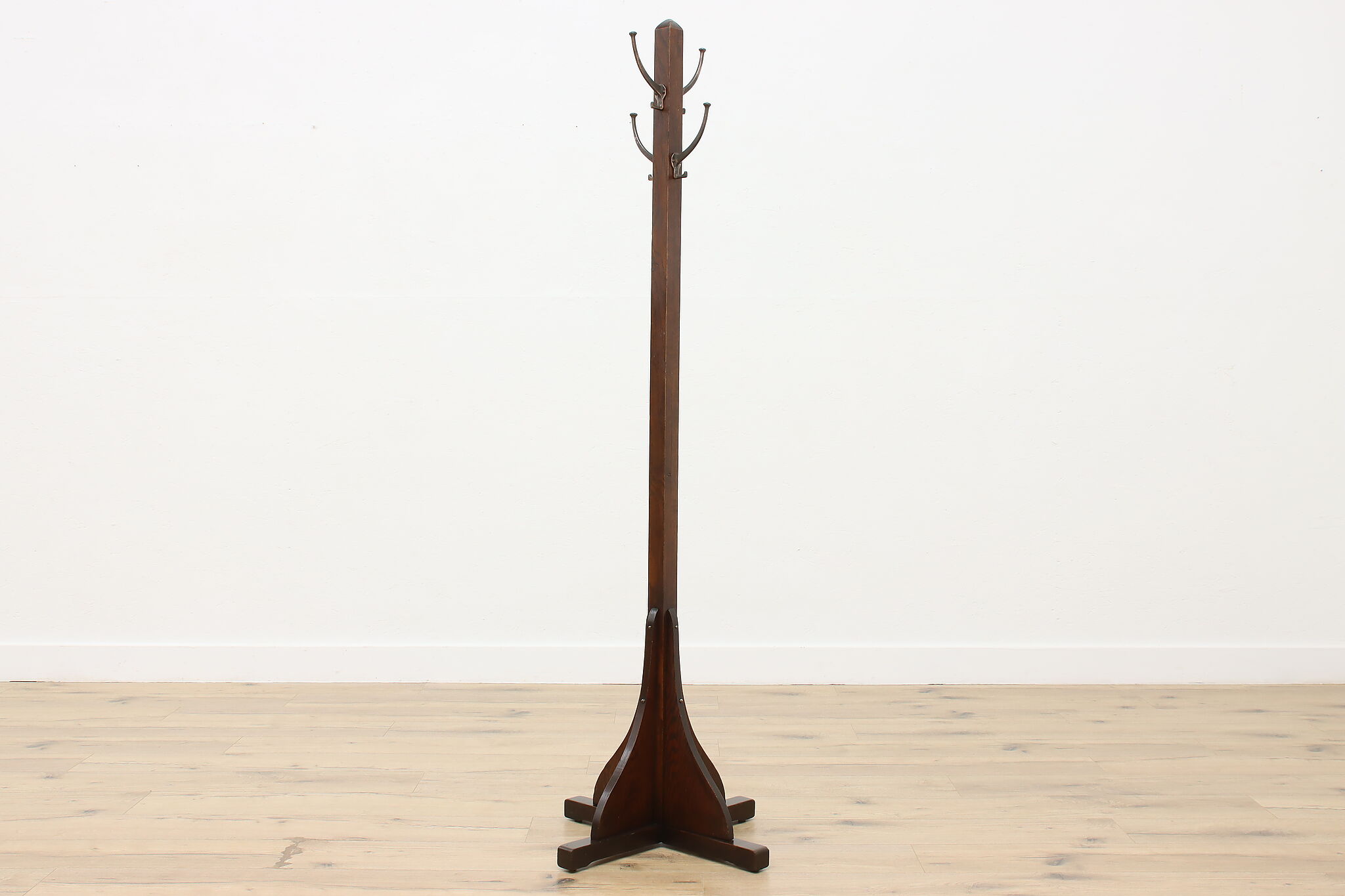 This Craftsman era hat and coat rack or hall tree is wonderfully convenient in a entry, office or dressing area.