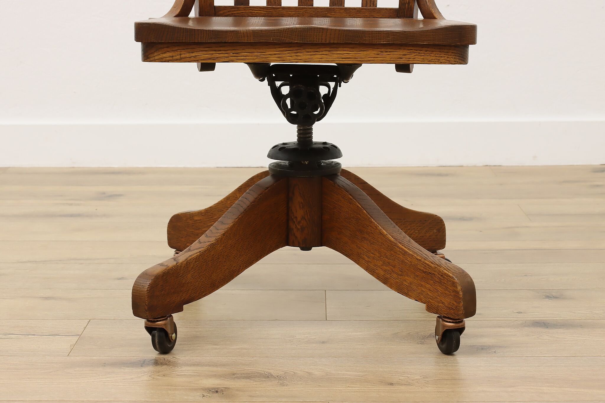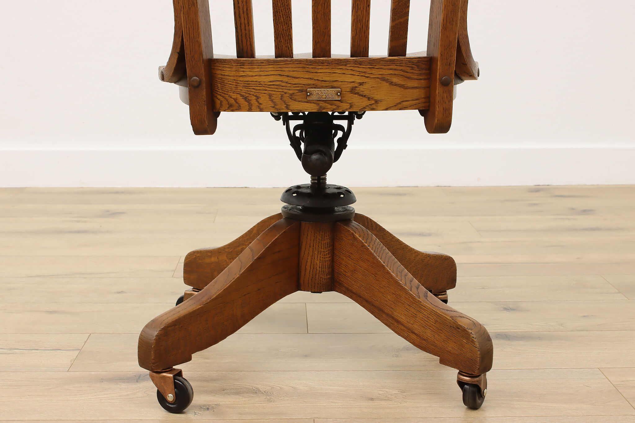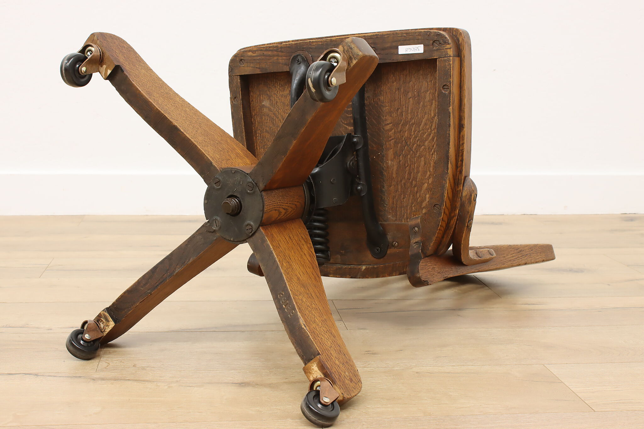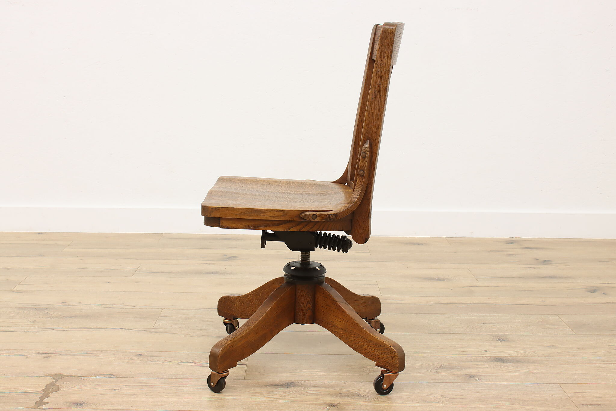 Adjust this Arts & Crafts or Mission period desk chair to the perfect position for your desk.