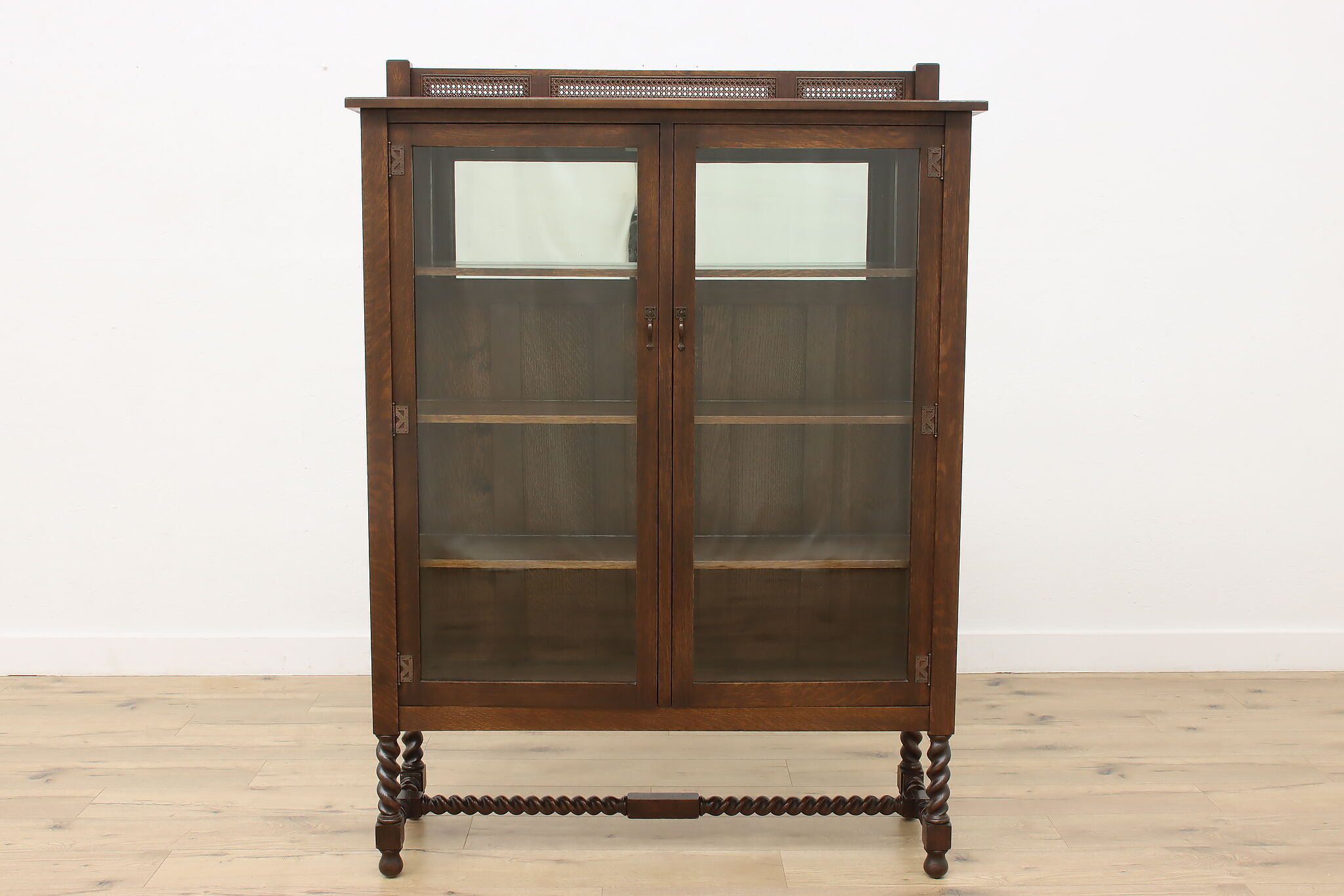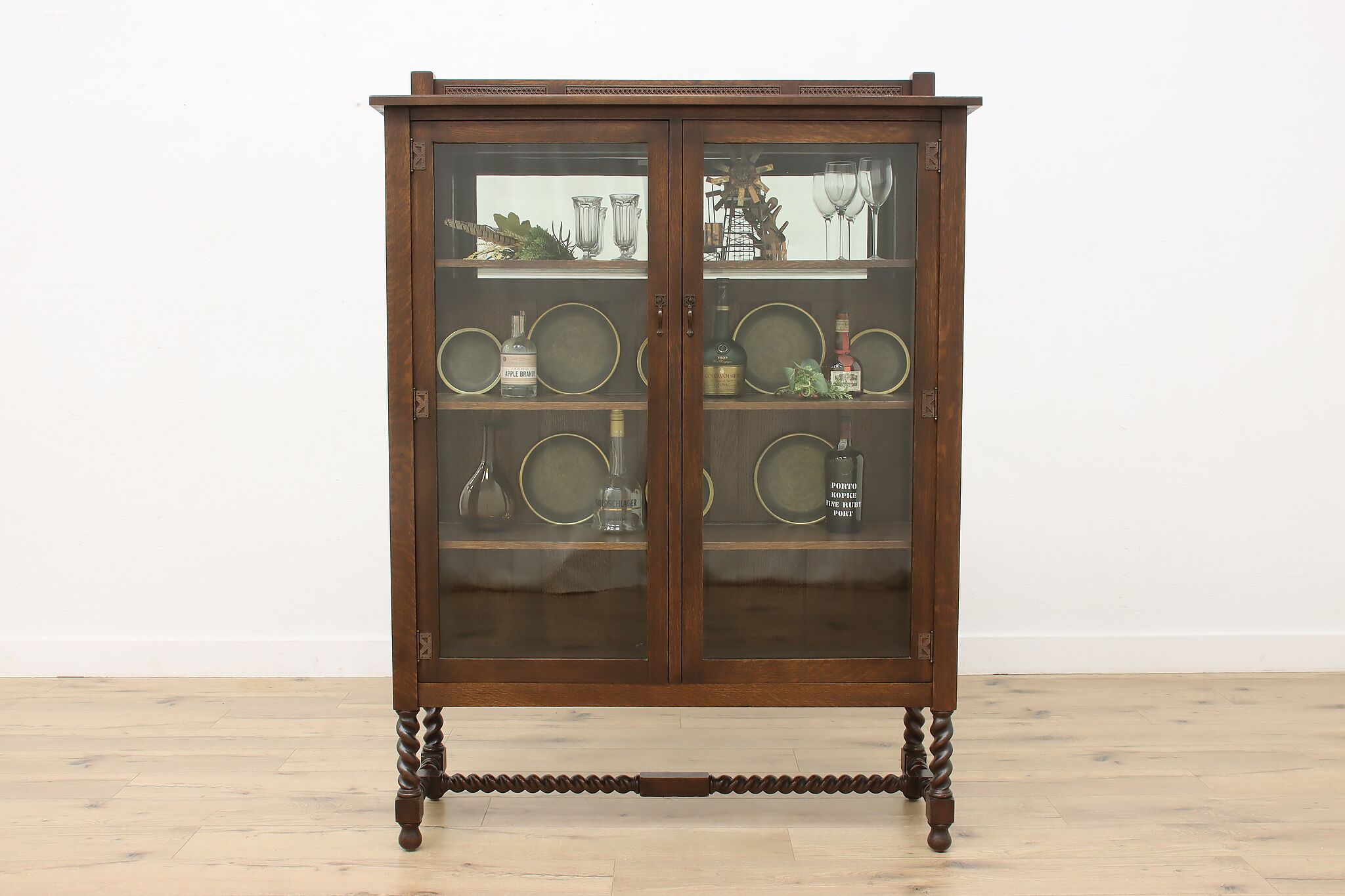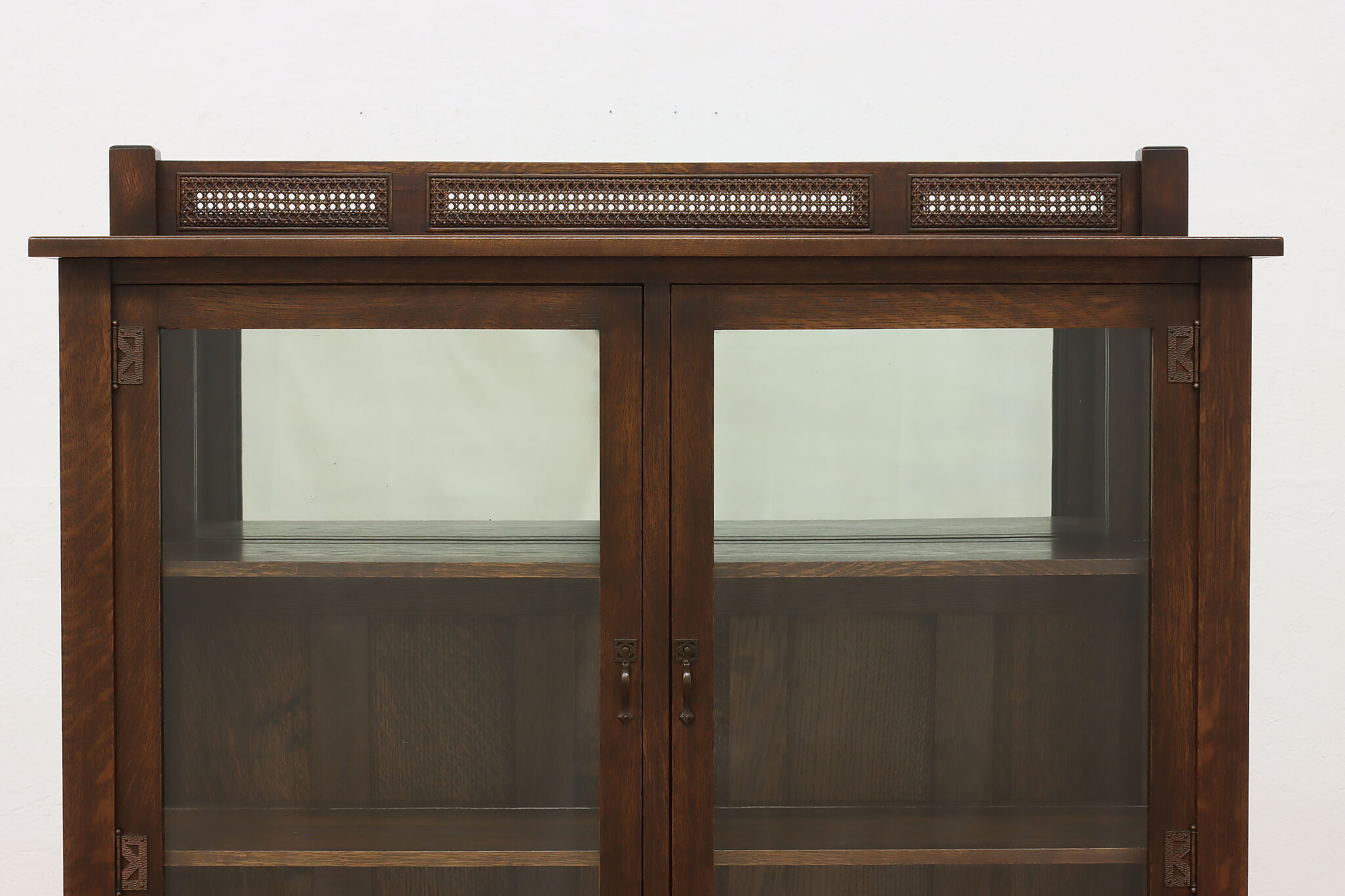 Display your favorite art or fine china in this Arts & Crafts and Tudor design cabinet.