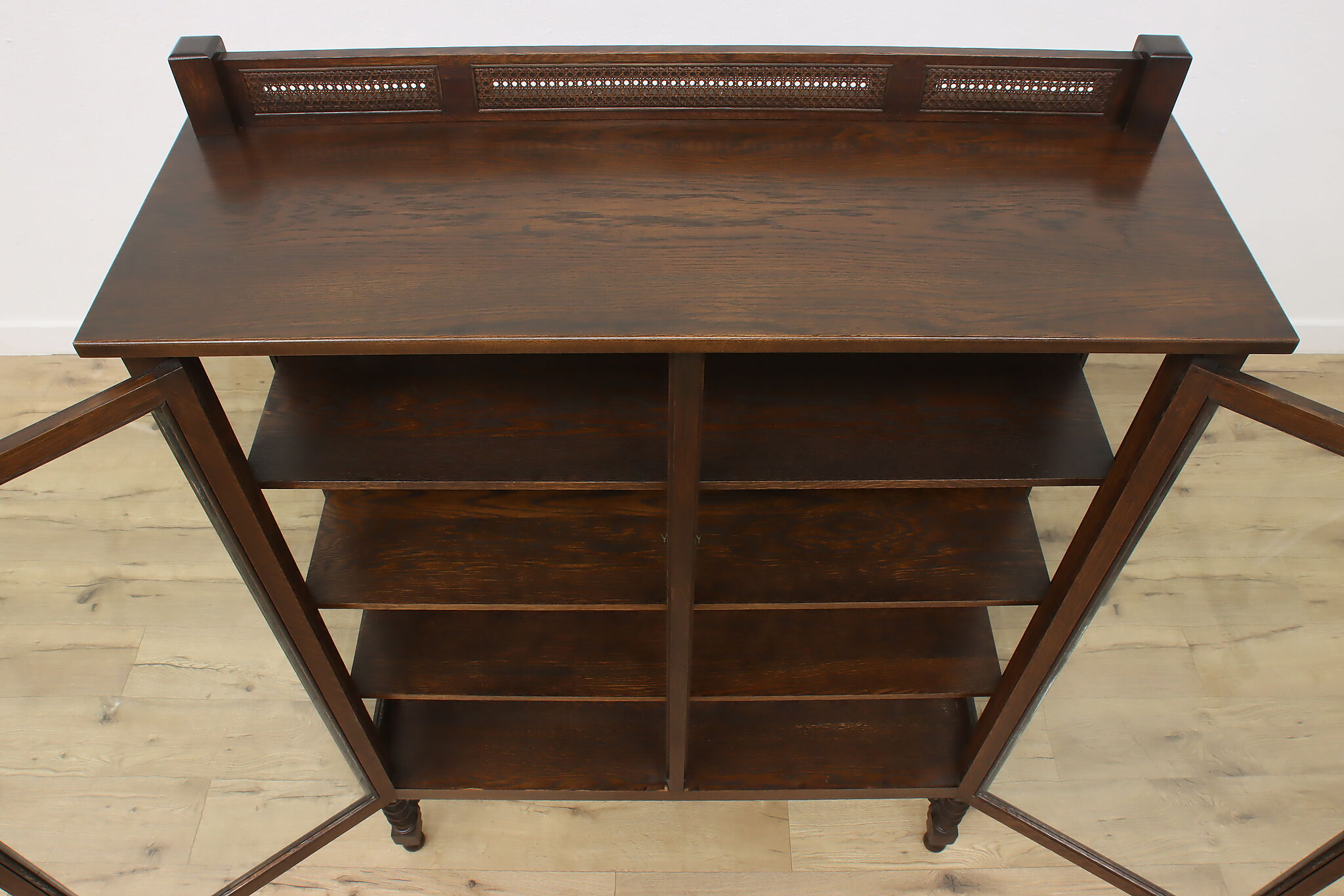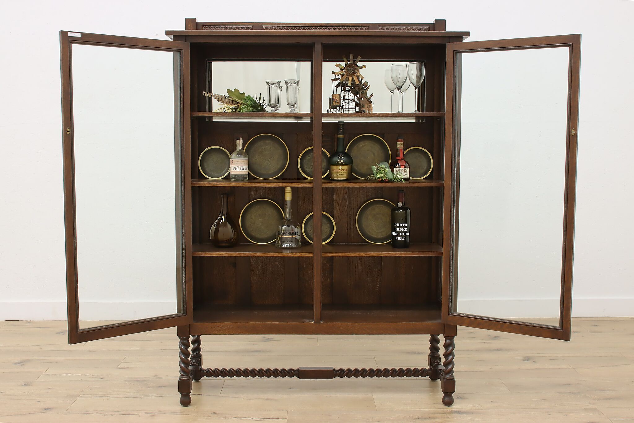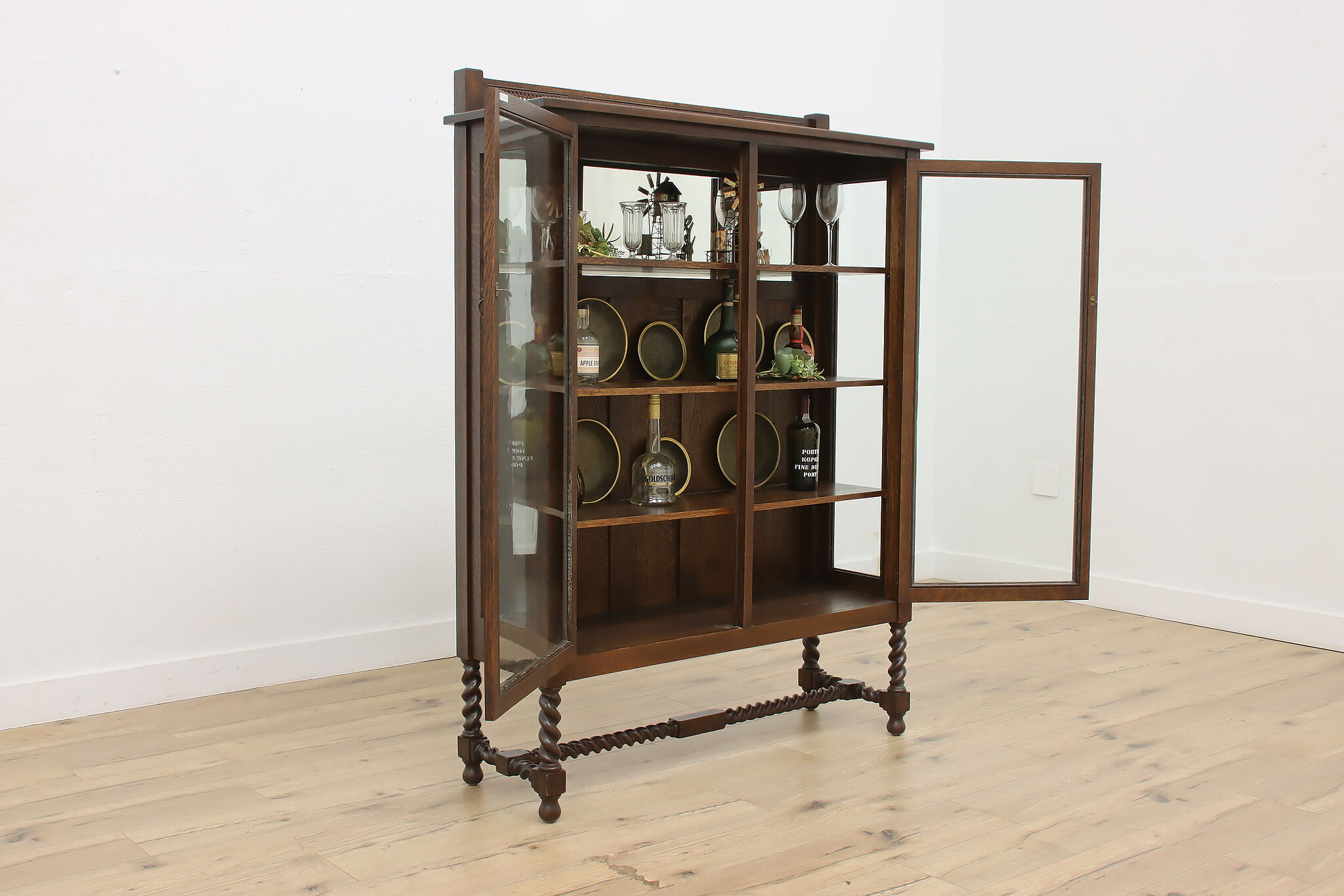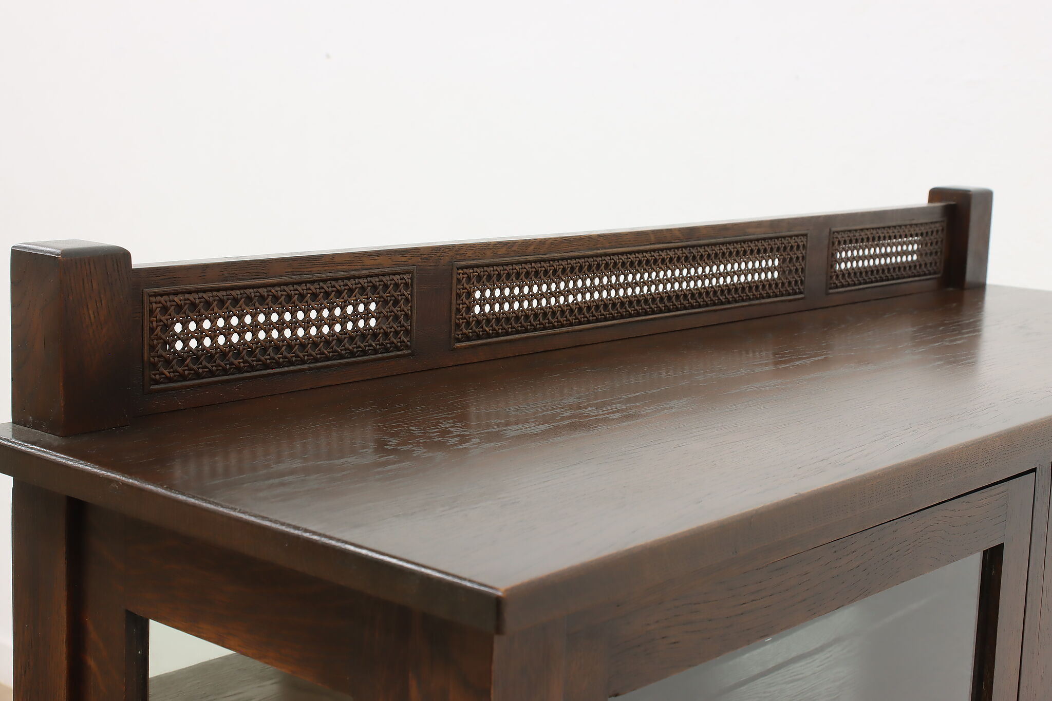 Display your favorite art or fine china in this Arts & Crafts and Tudor design cabinet.