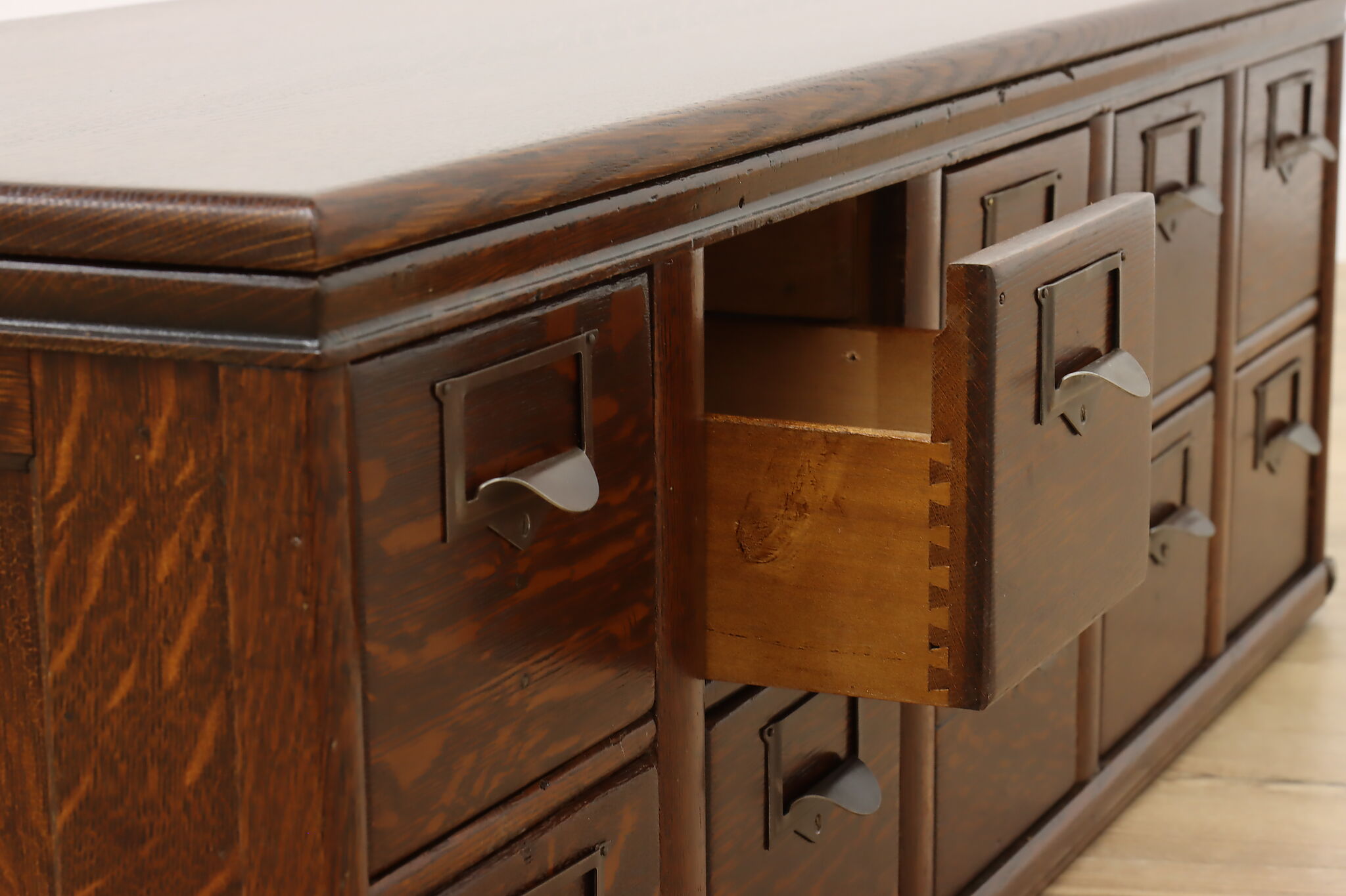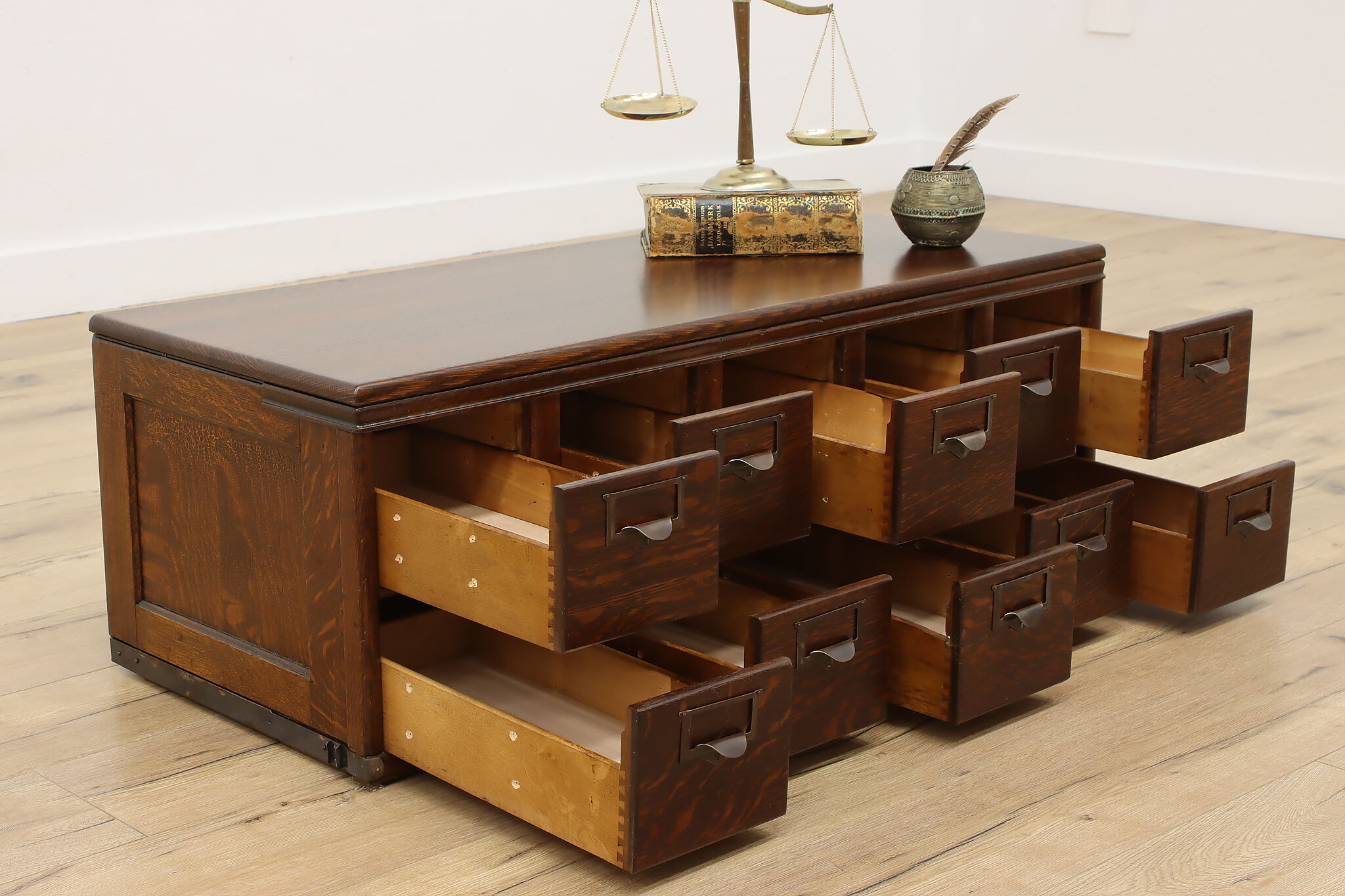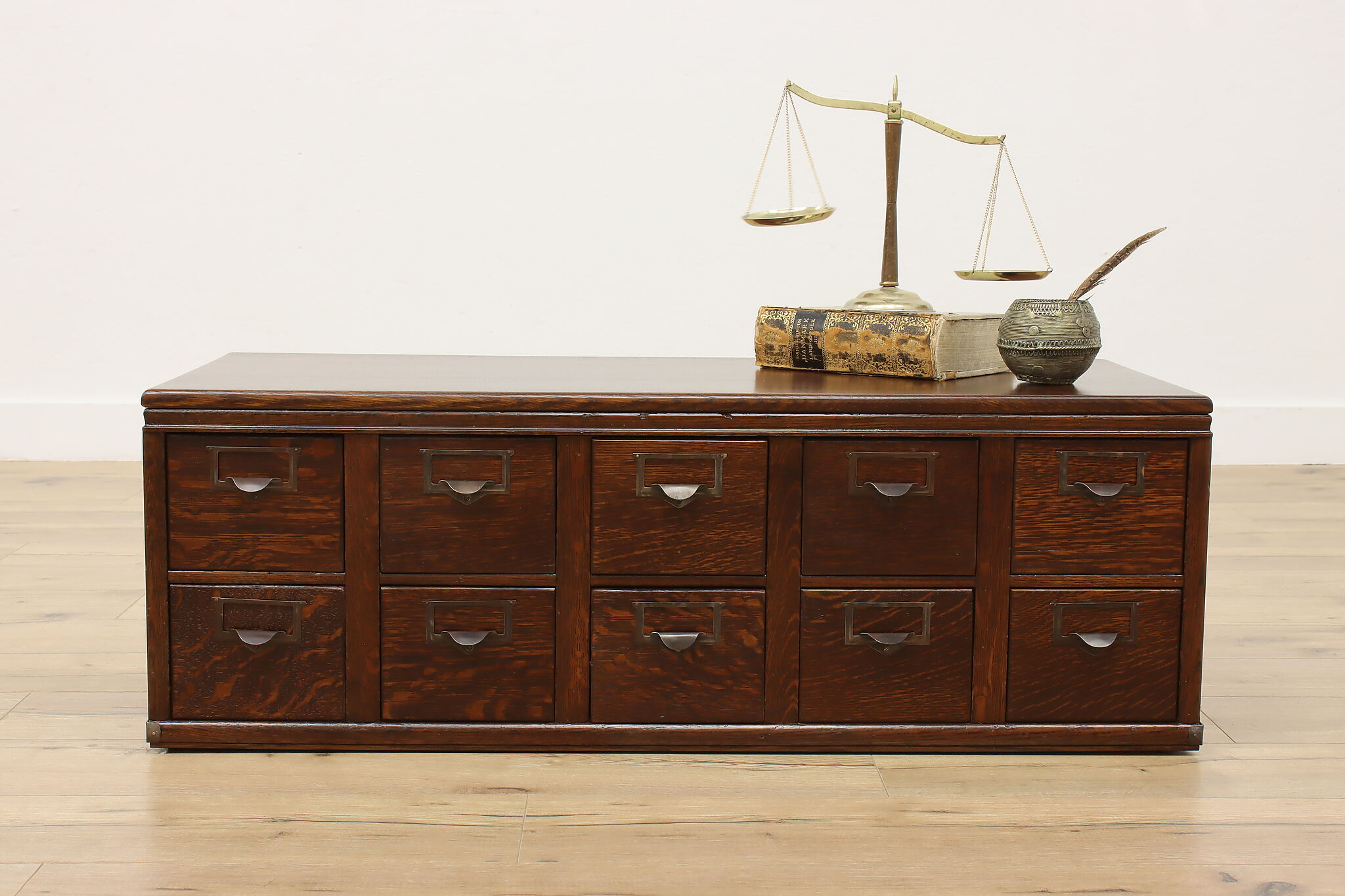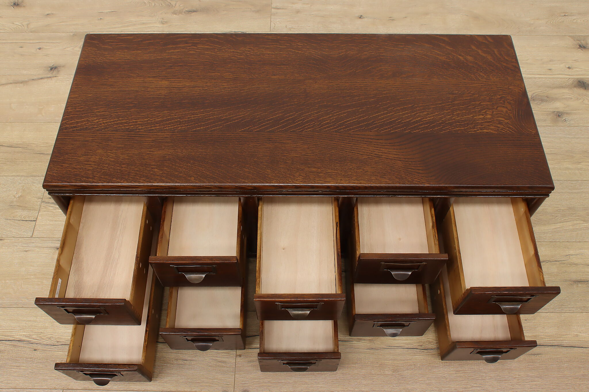 Crafted for an office or library desk top, this ten drawer file cabinet could also be useful as a child's toy chest or low coffee table!