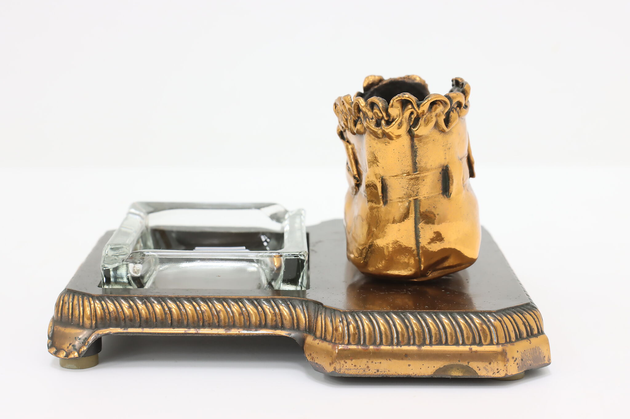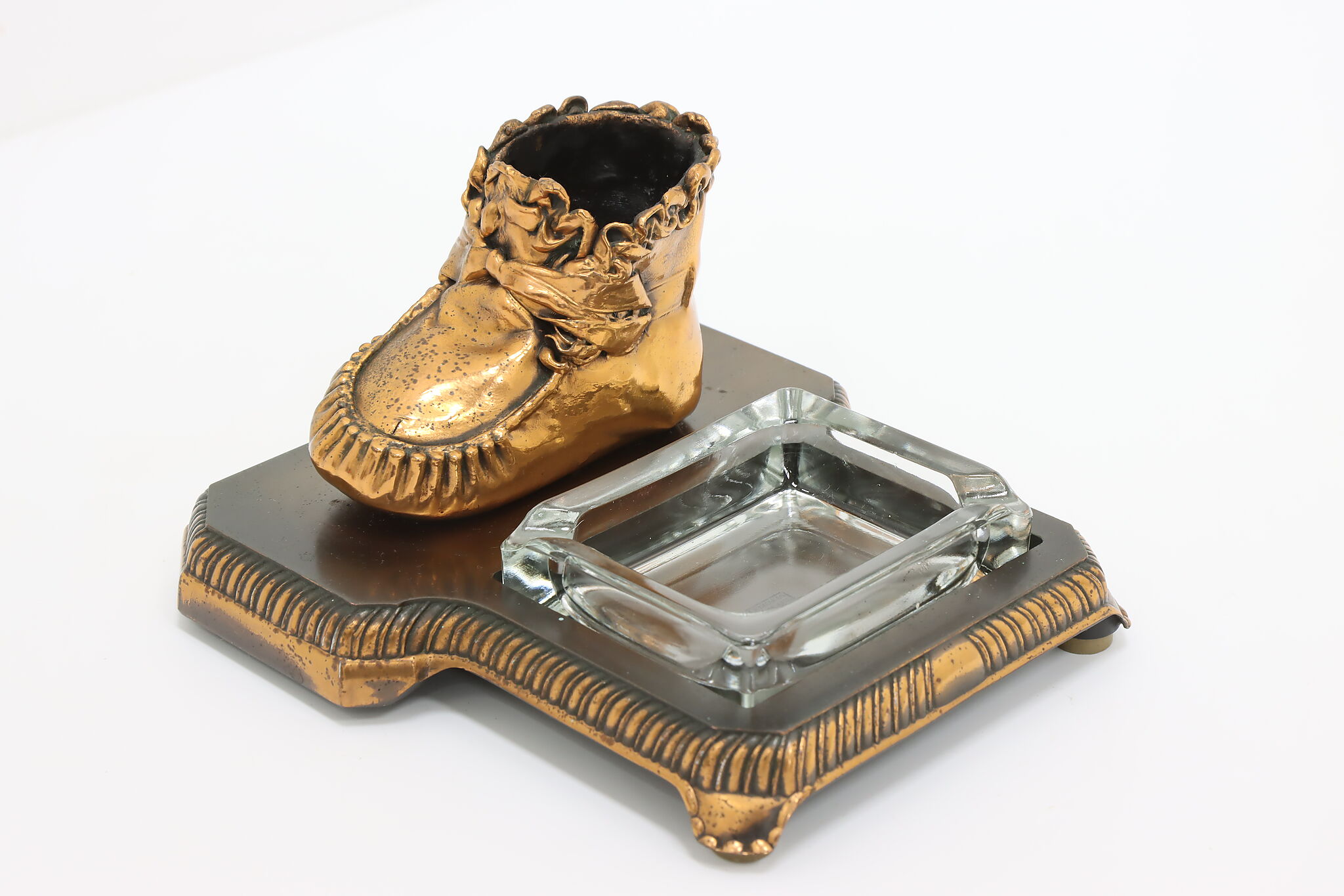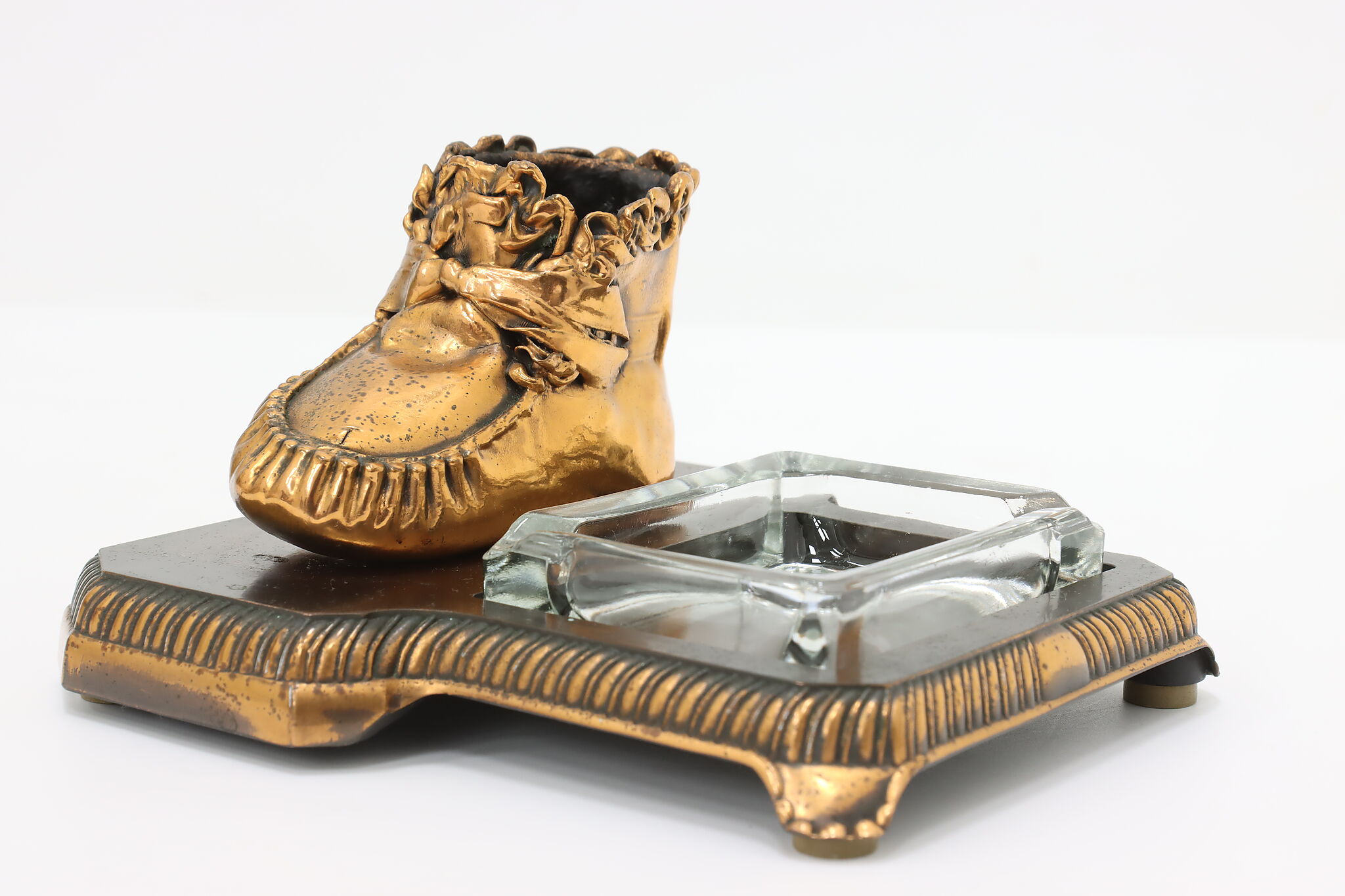 Coppering or bronzing your baby's first shoes is a lovely way to preserve the memories of their first steps! Combined with an ashtray, this is a great office or library gift.